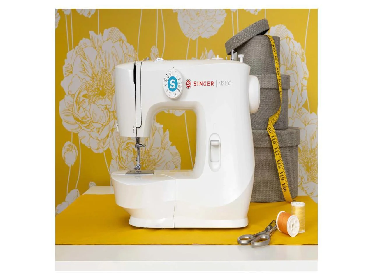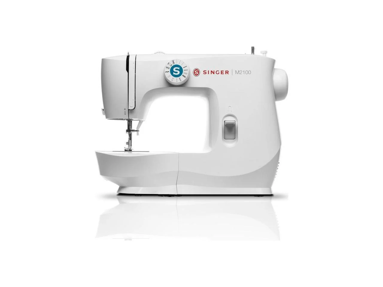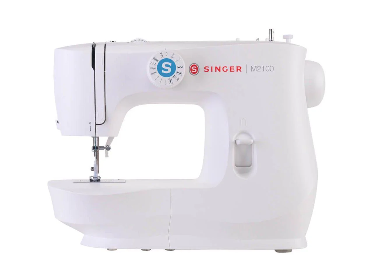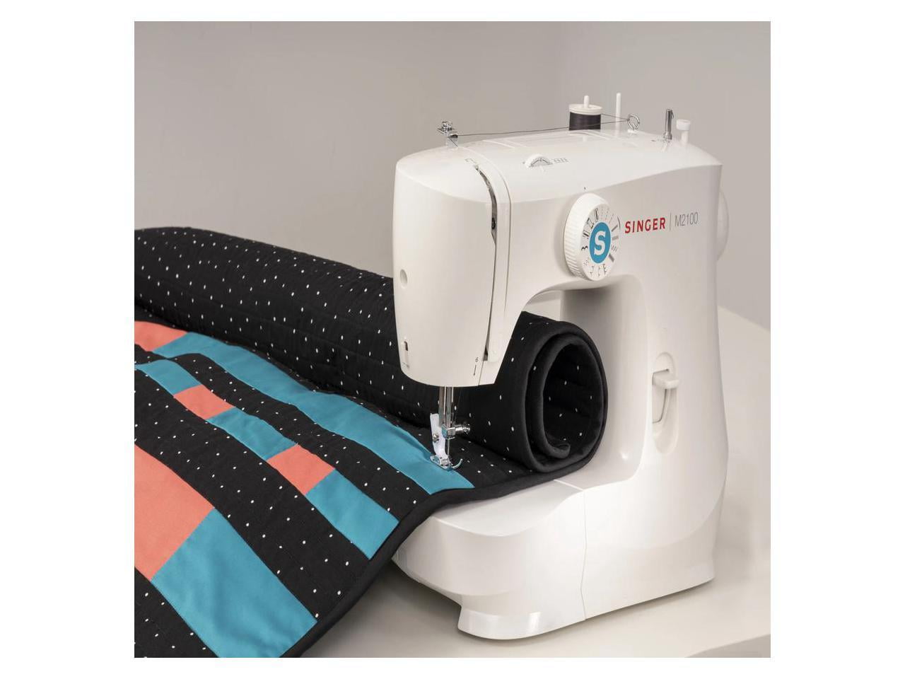 The Singer M2100 mechanical sewing machine is lightweight and portable, making it perfect for sewing in smaller spaces or for taking to sewing class. There are 63 stitch applications, all with preset stitch length and width, eliminating guesswork – perfect for the beginner! Sew fashions, home decor, quilts, crafts and more. Included Accessories Pack of Needles, Bobbins (15 Class Transparent), Needle Plate Screwdriver, Spool Pin Felt, Seam Ripper / Lint Brush, Soft-Sided Dust Cover, All-Purpose Foot, Zipper Foot, Buttonhole Foot, Button Sewing Foot, Darning Plate