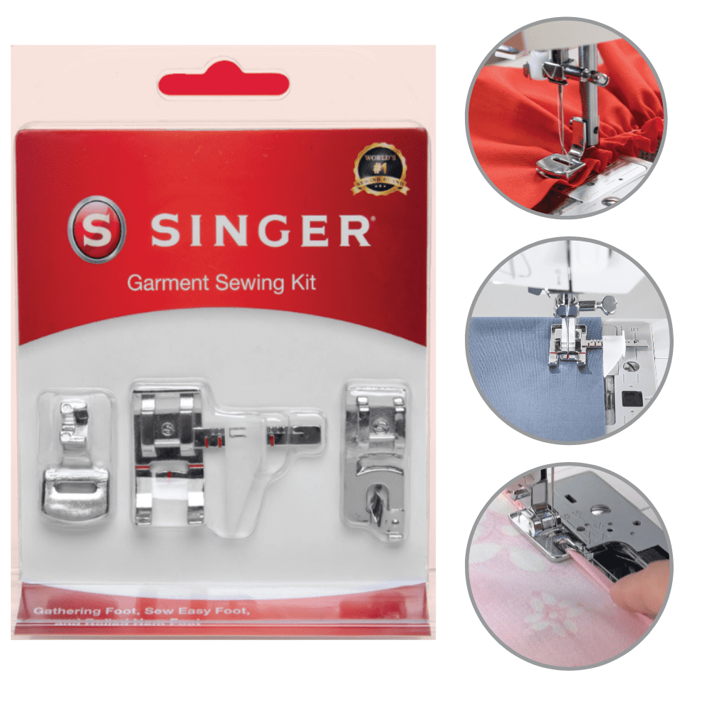 SINGER® GARMENT SEWING PRESSER FOOT KIT-The perfect kit for designers, garment alterations/repair, plus home decor, mending and more! Includes the Gathering Foot for creating flounces or attaching gathered seams on clothing, Rolled Hem Foot for a professional 1/8” edge finish, and Sew Easy™ Foot for precise seam allowances with adjustable guide. 97 STITCH APPLICATIONS-Enjoy a large selection of stitch applications! Includes basic, stretch and decorative stitches for fashion sewing, quilting, home decor, crafting, or gifting. ONE-STEP BUTTONHOLE-Just place your button into the foot’s holder to sew a buttonhole perfectly sized for your button with consistent results every time. EASY STITCH SELECTION-Stitches are clearly displayed on the Stitch Selector Dial. Just turn the dial to select your stitch. ADJUSTABLE STITCH LENGTH-Customize Stitches for Creative Sewing. ADJUSTABLE STITCH WIDTH-Use the Stitch Width Dial to customize stitch width for a variety of sewing techniques and decorative applications. QUICK AND EASY THREADING-Simple-to-follow threading guides for winding the bobbin and threading the upper thread are conveniently marked directly on the machine. NEEDLE THREADER-Effortlessly threads the eye of the needle for you, saving time and eliminating eye strain. FULL METAL FRAME-At any speed, a durable all-metal frame delivers the steady support expected for your sewing machine. FRONT-LOADING BOBBIN-Just place the bobbin into the bobbin holder, draw up the bobbin thread and you’re ready to sew. ADJUSTABLE THREAD TENSION-Depending on your fabric and thread selection, the Thread Tension Dial can be used to fine-tune the look of your stitch as desired. LED LIGHTING-Long lasting LED lighting provides bright illumination and stays cool to the touch. FREE ARM-Removable free arm brings easy access to cuffs, collars, pant hems and more. ACCESSORIES THAT BRING PROJECTS TO LIFE-7 Accessory Feet Included. Garment Sewing Kit includes SINGER® Sew Easy Foot, Gathering Foot, Rolled Hem Foot. You will also receive additional snap-on presser feet including the General Purpose Foot, Buttonhole Foot, Button Sewing Foot, Zipper Foot. Other included accessories to get started quickly: including Bobbins (Class 15 transparent), Darning Plate, Pack of Needles, Auxiliary Spool Pin, Seam Ripper/Lint Brush, Spool Cap and Edge/Quilting Guide. Getting Started Videos for the M3400 are available on the SINGER YouTube channel.