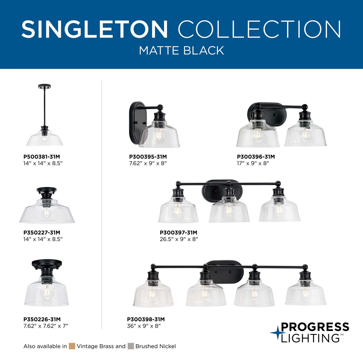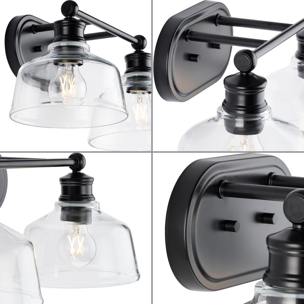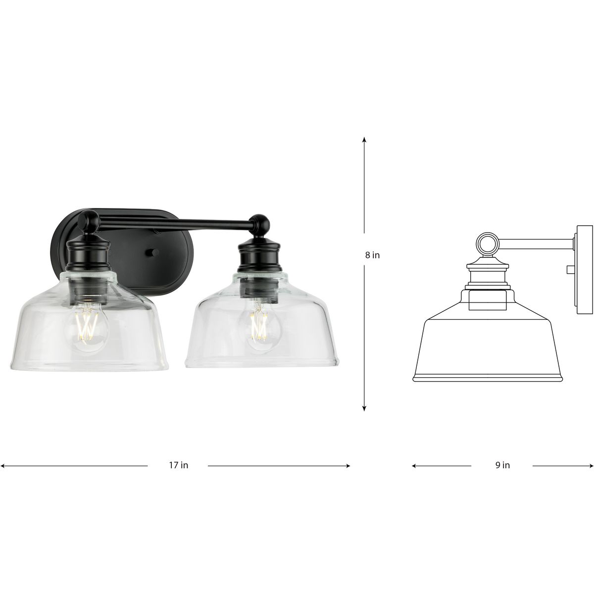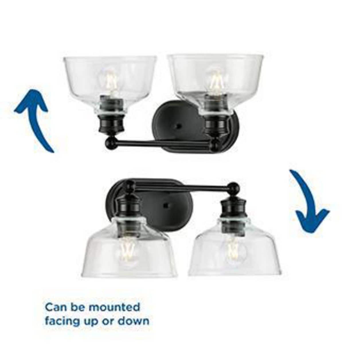 The Singleton Collection 2-light vanity fixture pays homage to industrial styling with oversized warehouse shades fabricated from clear glass. A round backplate and vintage-inspired metal fittings finished in classic matte black create a timeless design. Place above the vanity mirror for optimal task lighting in the bath. This versatile vanity light can be mounted up or down, casting even illumination in any setting.