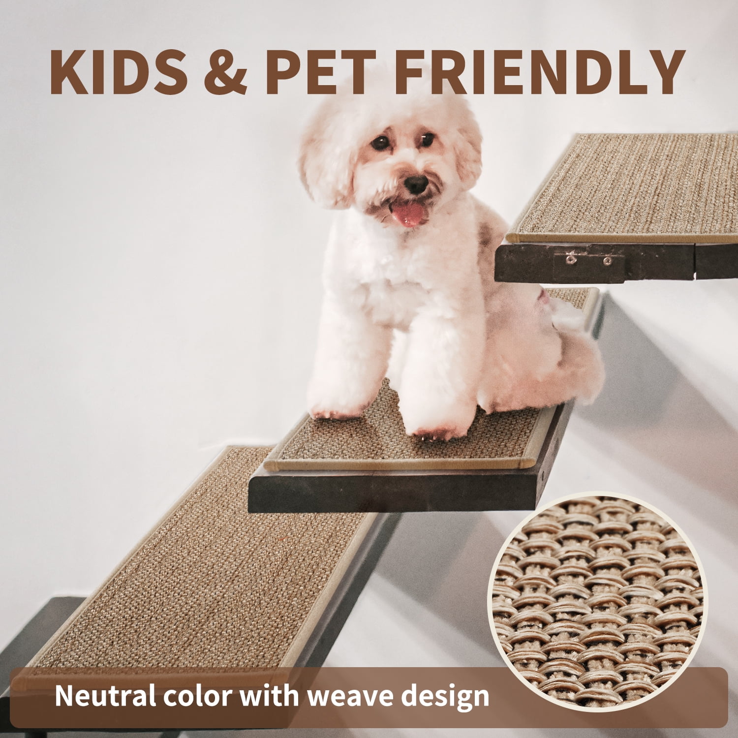 SIXHOME Stair Treads 15 Pack 8″x30″ for Wooden Steps Braid Weave Non-Slip Staircase Indoor Comfort Rubber Backing Washable Runners Kids Dog-Friendly Treads Mats Set Beige
