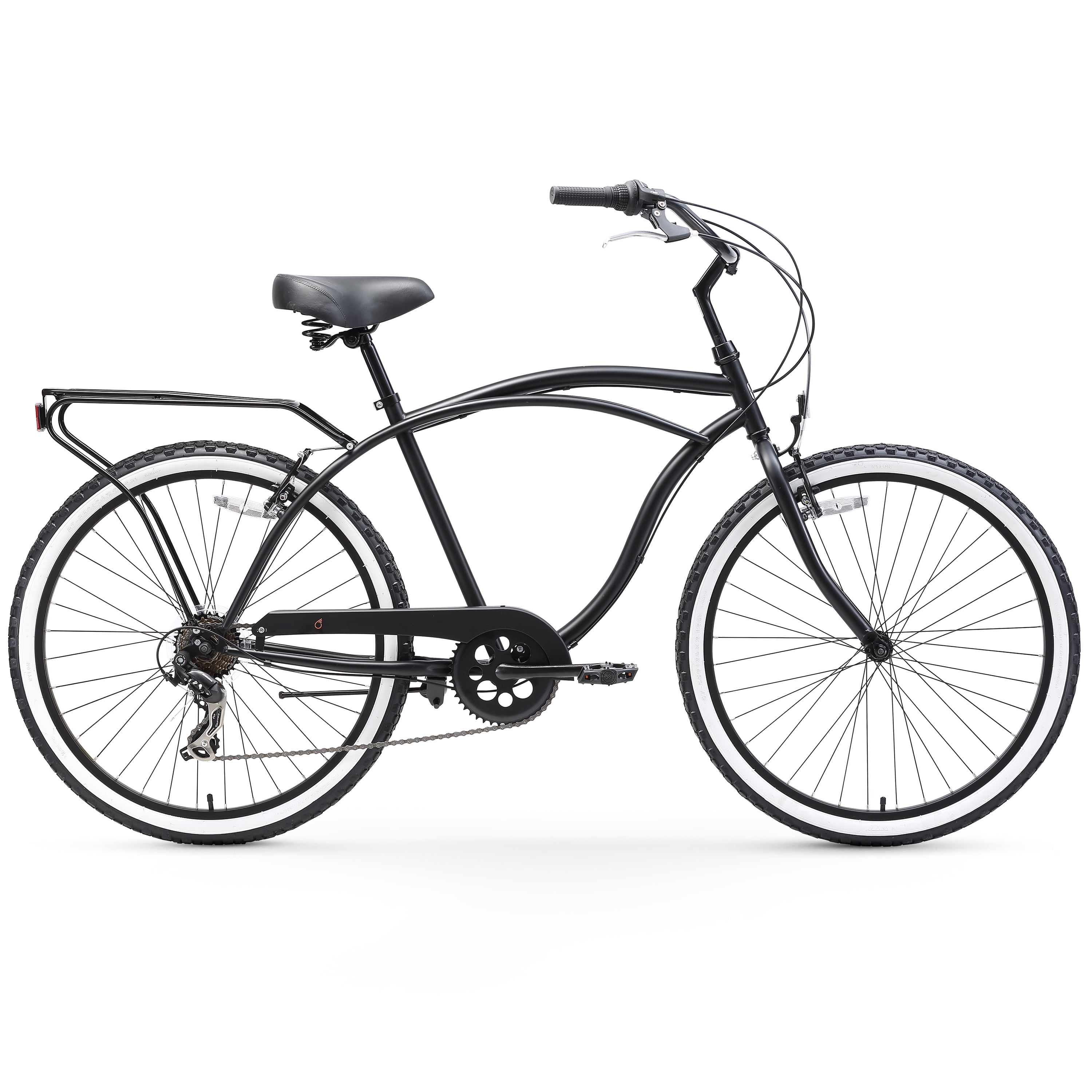 sixthreezero Around the Block Men’s 7-Speed Beach Cruiser Bicycle with Rear Rack, 26 In. Wheels, Matte Black