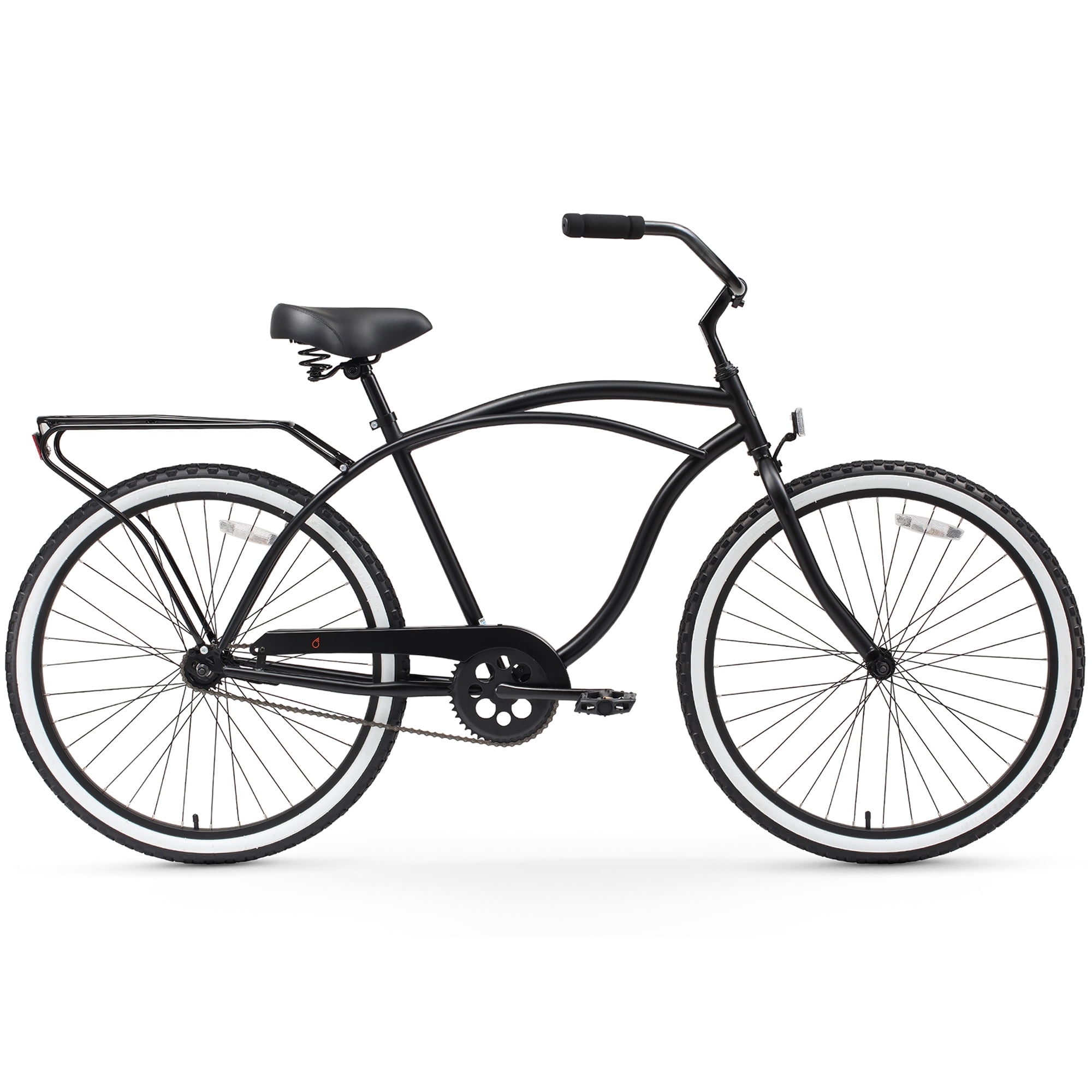 sixthreezero Around the Block Men’s Single Speed Beach Cruiser Bicycle with Rear Rack, 26″ Wheels, Matte Black
