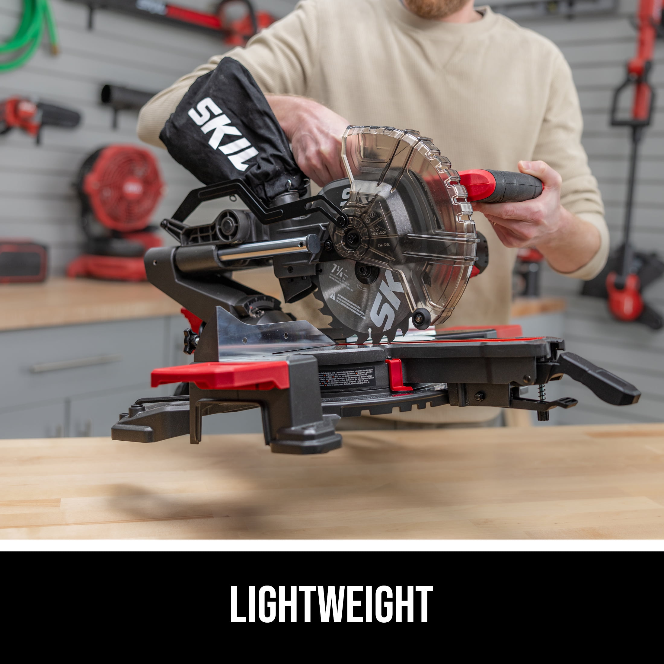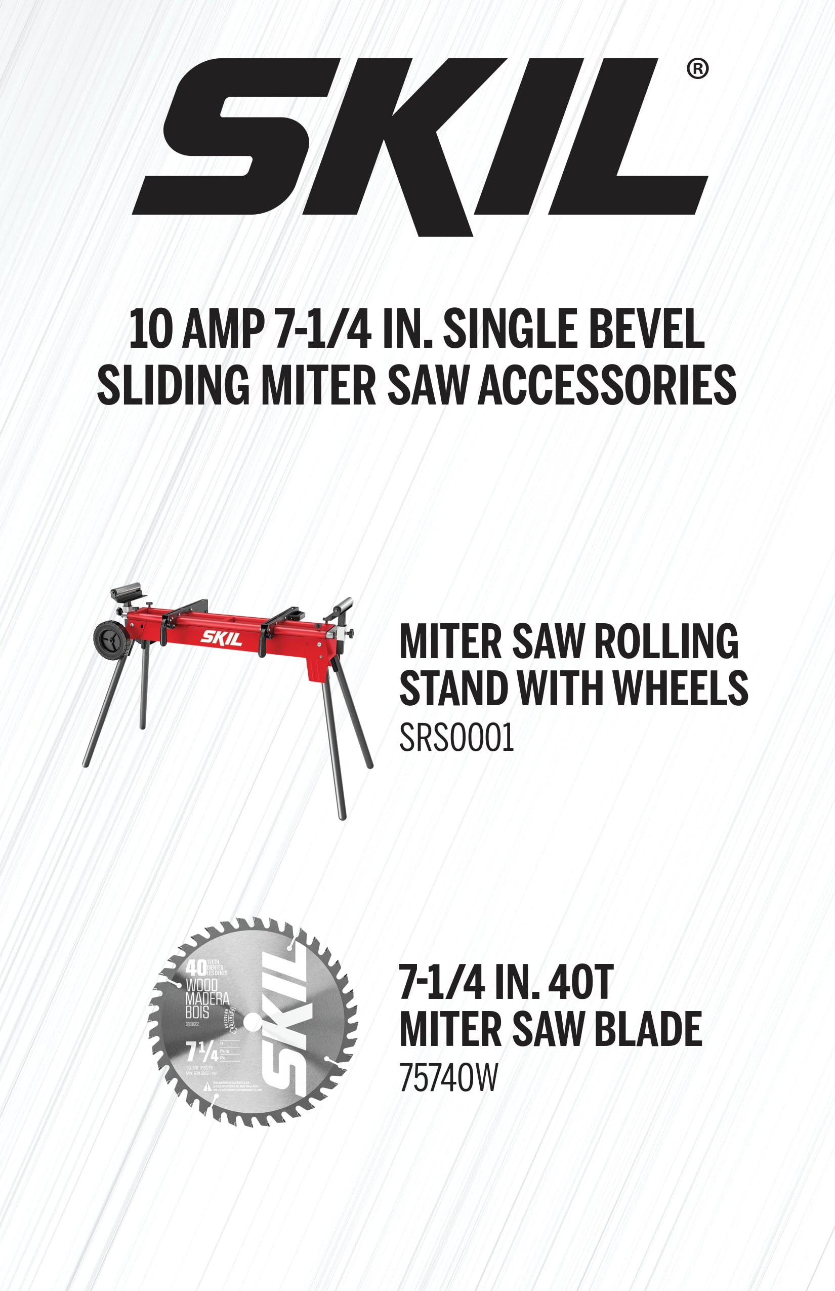 SKIL 7-1/4 In. Miter Saw LED Shadow Line – Delivers precise cuts with greater accuracy than lasers Quick Miter Lock – Delivers quick and accurate miter angles Compact Rail System – Minimizes the saw’s footprint for flush cutting against walls Lightweight – For easy transport and storage Single Bevel – Perform cuts from 0 degrees to 45 degrees left Rated Voltage: 120 V Blade Diameter: 7 – 1/4 in. Blade Arbor Hole Diameter: 5/8 in. No Load Speed: 5200 RPM Max. Miter Angle: L: 0-47°/R:0-50° Max. Bevel Angle: L: 0-45° Cutting Capacity at 45° right & left Miter /0° Bevel: 2 in. x 6 in. Cutting Capacity at 45° Miter / 45° Left Bevel: 2 in. x 6 in. Cutting Capacity at 0° Miter / 45° Left Bevel: 2 in. x 10 in. Cutting Capacity at 0° Miter / 0° Bevel: 2 in. x 10 in. Cord length: 6 ft. Includes: 1pc miter saw, 1pc dust bag, 1pc double-ended allen wrench, 1pc 24T carbide bkade, 1pc work clamp Model number: MS6316-00
