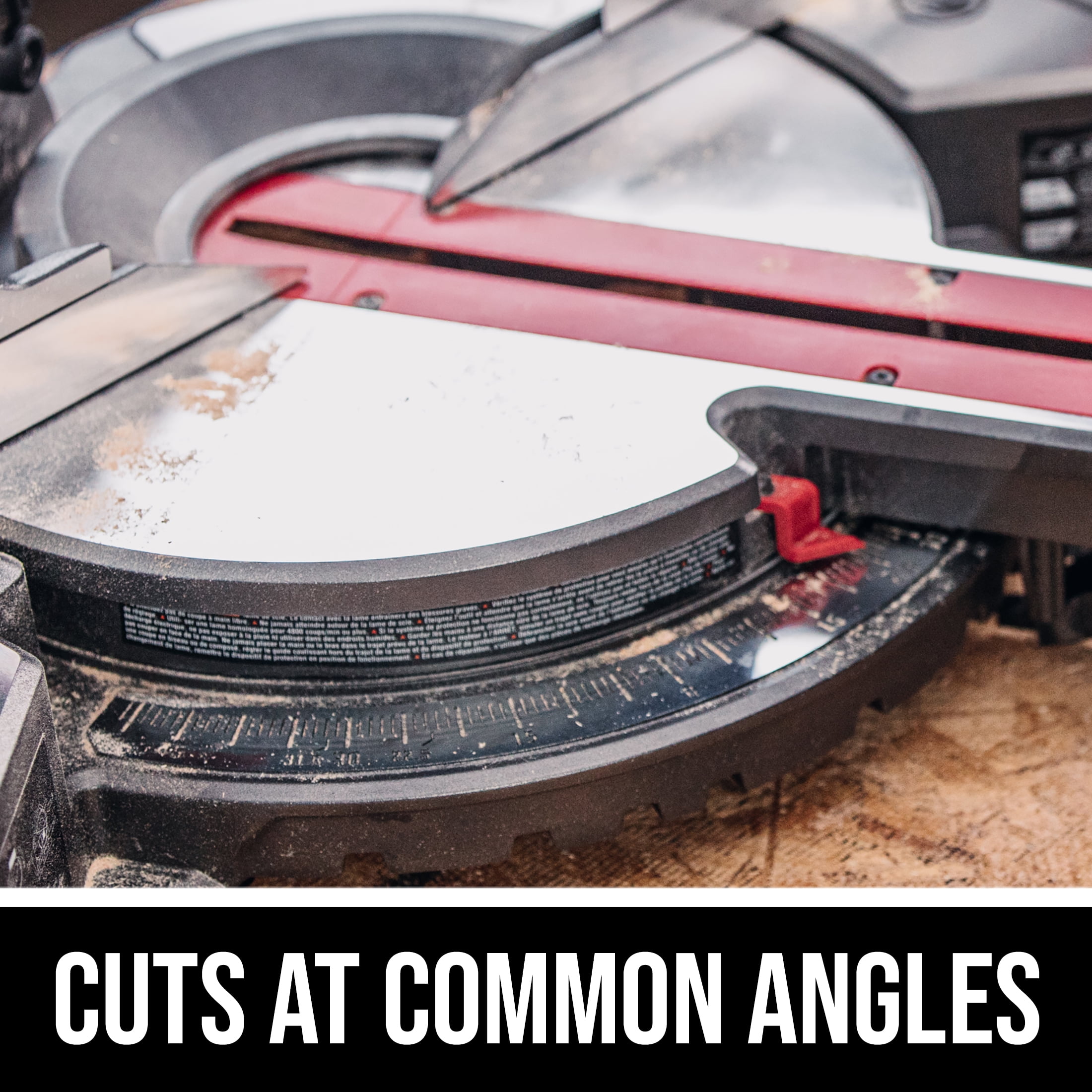 POWERFUL 15 AMP MOTOR – Delivers 4,800 RPM for quick, detailed cuts DUAL BEVEL: Perform cuts in four positive stop positions at 48 & 45 degrees left, 0, and 45 degrees right LED SHADOW LINE – Provides high precision cuts with greater accuracy than lasers 2×12 CUTTING CAPACITY: Cross cuts lumber up to 2×12 at 90 degrees, and 2×8 lumber at 45 degrees CUTS AT COMMON ANGLES – Cuts up to 50 degrees left and right with 11 positive stops at most used angles SLIDE RAIL SYSTEM – Linear bearings allow for smooth and accurate operation to cut HORIZONTAL GRIP HANDLE: A center located safety trigger allows for left or right-handed use