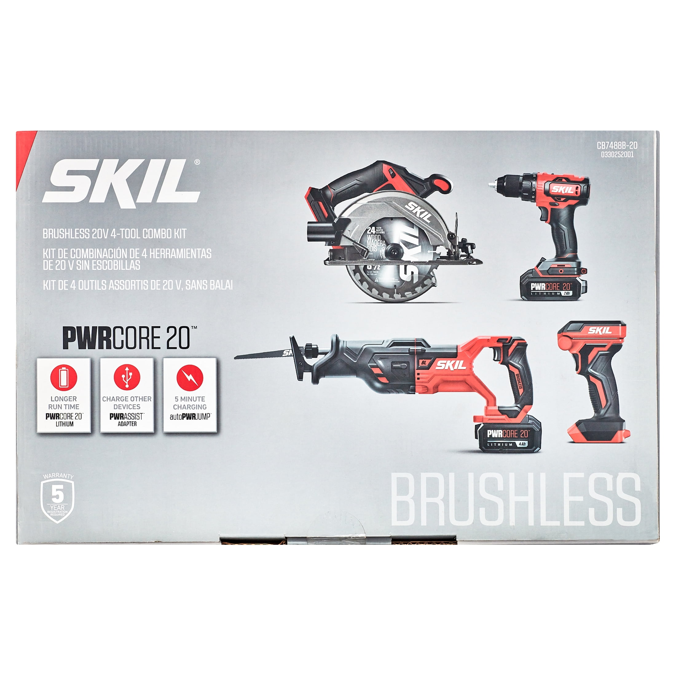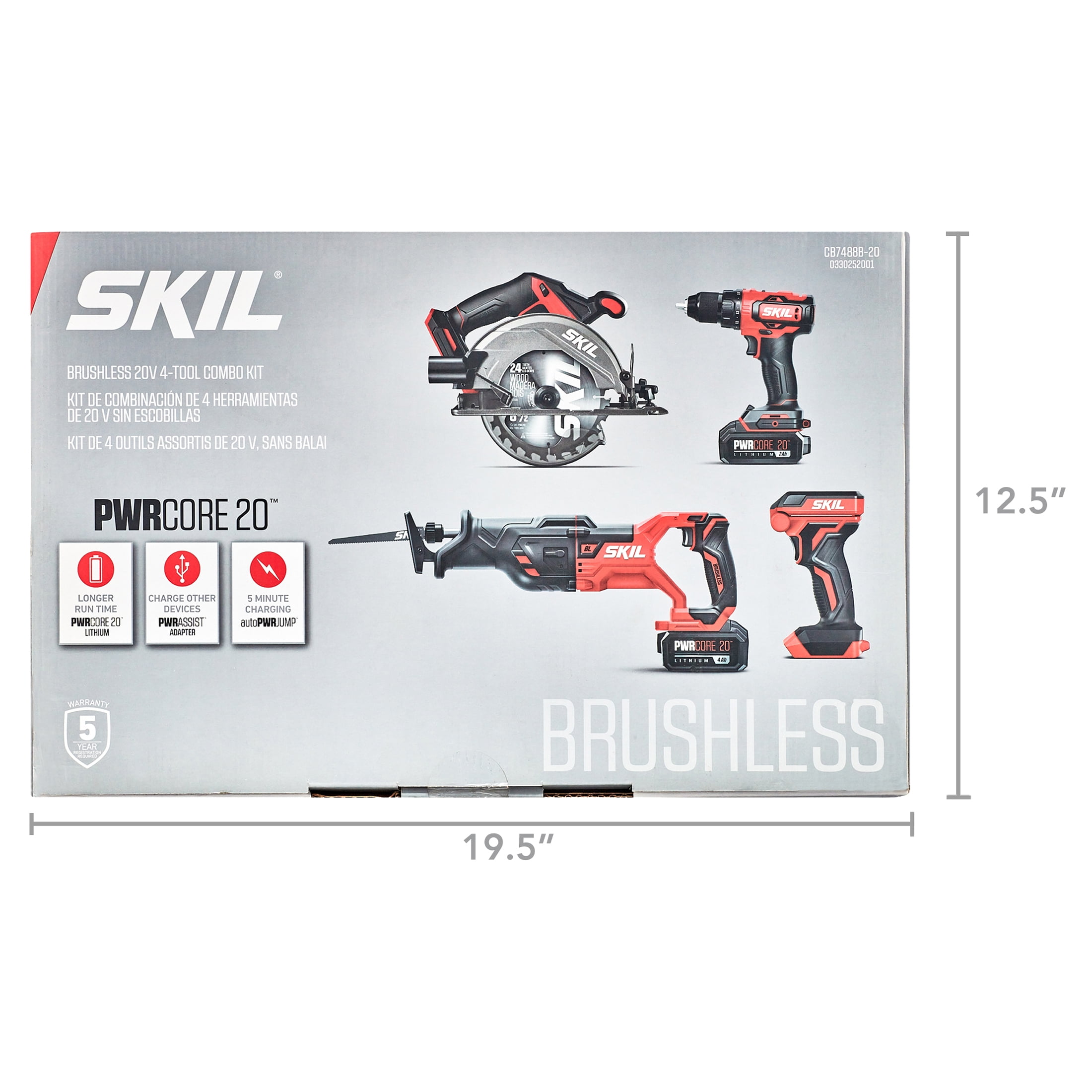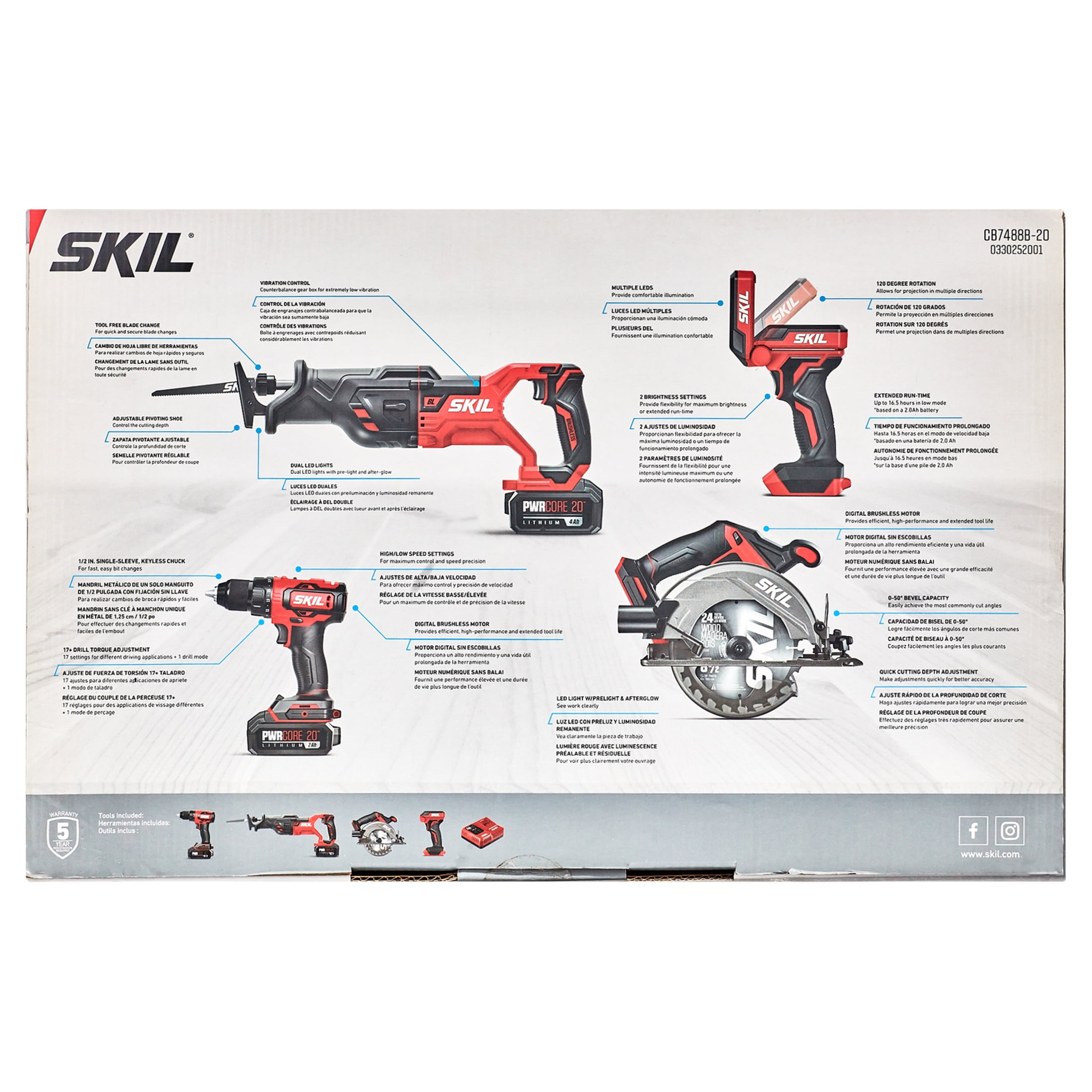 SKIL 20V PWR Core Cordless Drill Combo Kit, Drill Driver, Circular Saw, Reciprocating Saw, LED light