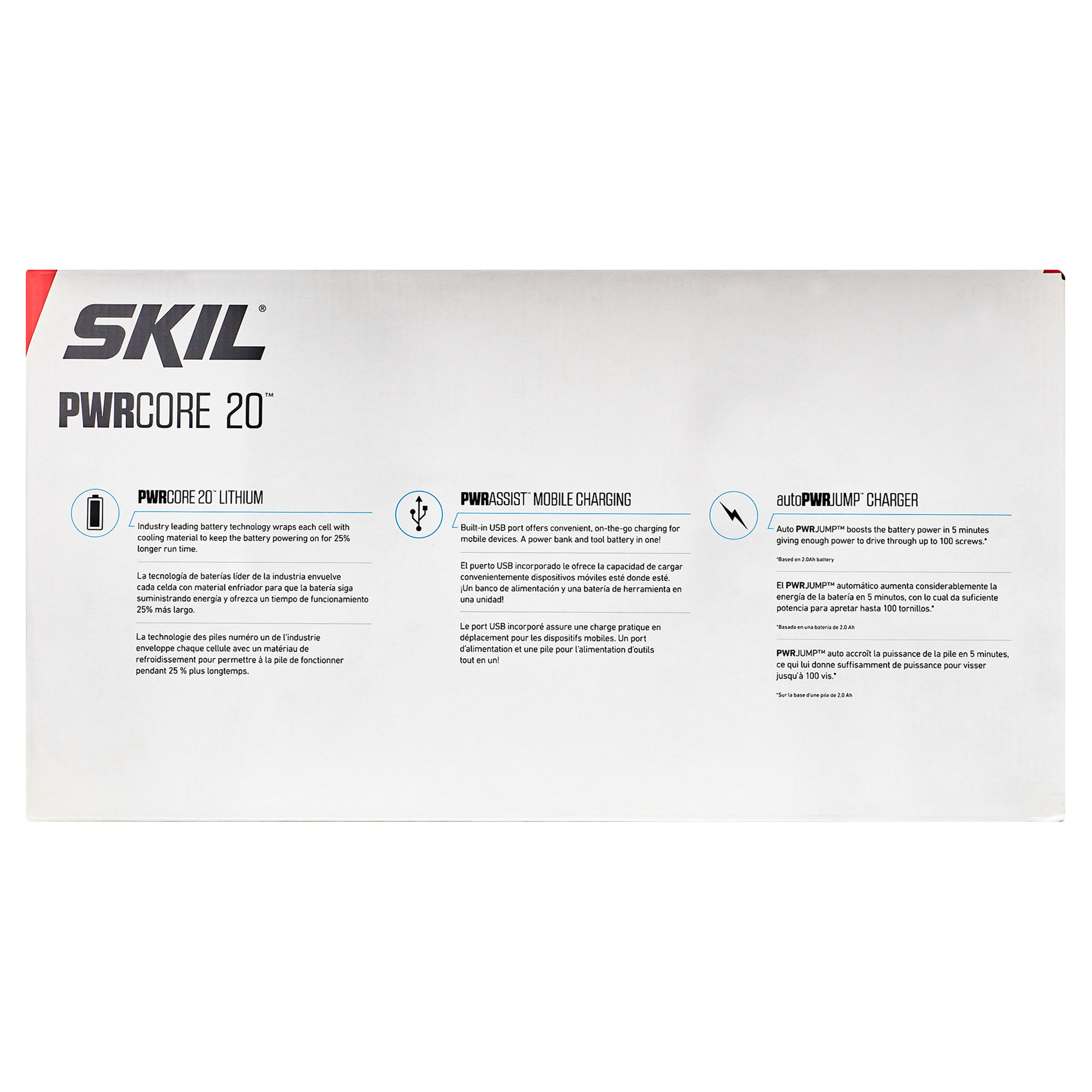 SKIL PWR Core 20™ 4-Tool Combo Kit includes: 20V ½” cordless drill driver, 20V 6-1/2” cordless circular saw, 20V 1-1/8” cordless reciprocating saw, and a 20V LED Area Light. These versatile power tools can help with a variety of tasks around the house, like installing shelves, loosening tough bolts, assembling new furniture, illuminating dark workspaces, cutting through tough materials during a teardown and more. Plus, with two PWR Core 20™ Lithium Batteries and a 20V, PWR JUMP™ Charger included, you can start your project right away.