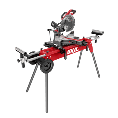 DURABLE CONSTRUCTION WITH UNIVERSAL COMPATIBILITY – Designed for SKIL miter saws including MS6306-00/MS6316-00; fits most other miter saw brands QUICK-RELEASE MOUNTING BRACKETS – To easily mount and remove your miter saw from the stand HEAVY-DUTY 8-INCH WHEELS – For easy transport QUICK & EASY SETUP – The folding legs, quick-release mounting brackets, and support arms slide into the stand for simple setup, storage, and transport