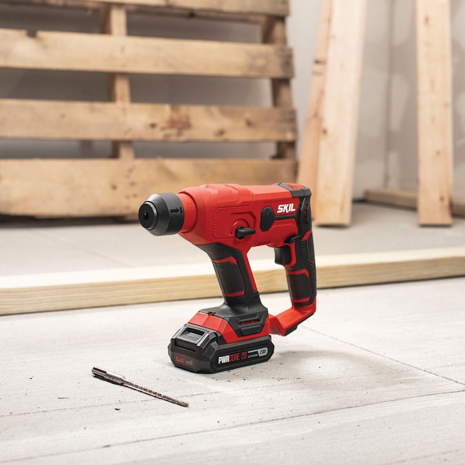 The SKIL 20-Volt Rotary Hammer gives you the function of a hammer drill, drill, and screwdriver all in one easy-to-use tool. With its efficient and powerful hammering function, it can quickly hammer through tough materials like brick and stucco. It’s also one of the op hammer drills for concrete. The kit includes a PWRCore™ 20-volt 2.0Ah lithium battery and charger.