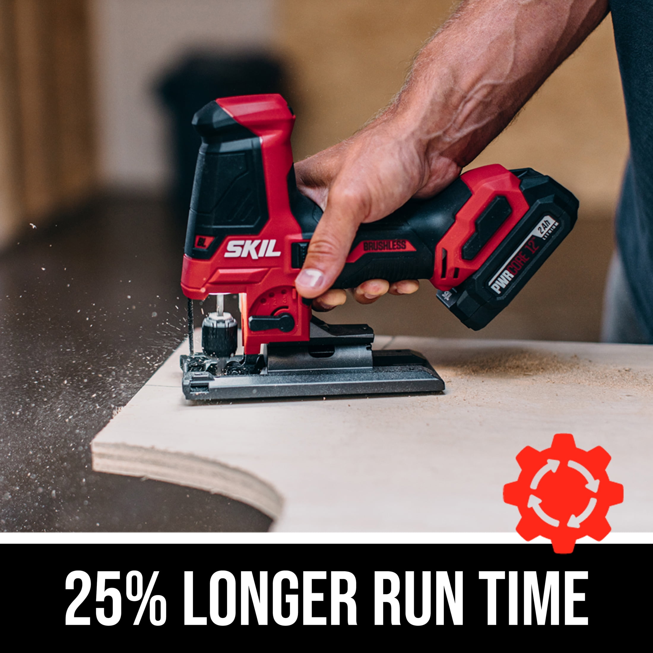 PWR CORE 12™ BRUSHLESS 12V JIGSAW KIT – Includes cordless 12V Jigsaw, 2.0Ah Lithium Battery, PWRAssist™ Mobile Charger and PWR JUMP™ Charger LONGER RUN TIME & BATTERY LIFE – Industry leading PWRCore 12 lithium battery technology wraps each cell with cooling material to keep the battery powering on for 25% longer run time and 2X battery life COMPACT SIZE —The digital brushless motor provides compact, lightweight power.
