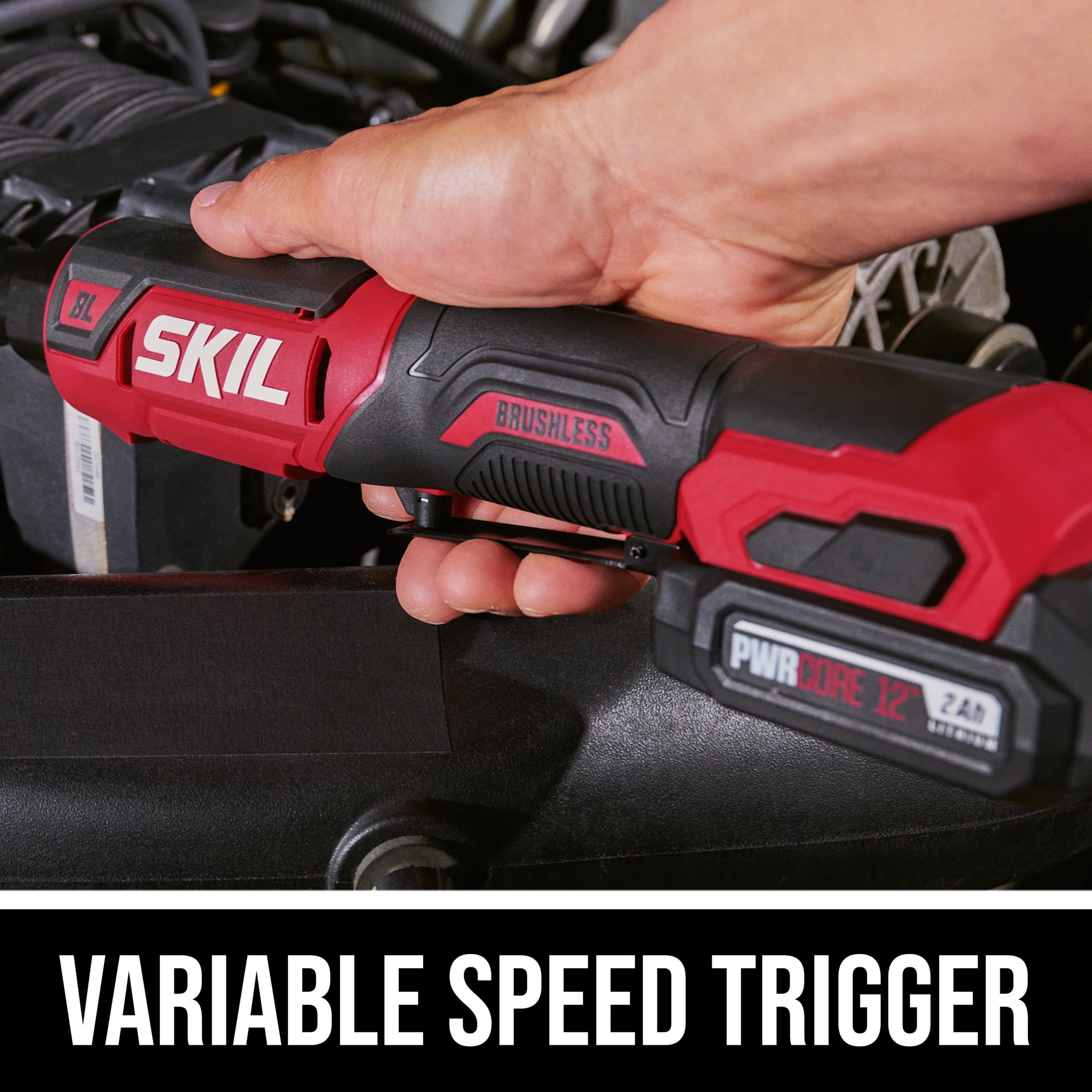 LONGER RUN TIME & BATTERY LIFE — Industry leading PWR CORE 12 lithium-ion battery technology wraps each cell with cooling material to keep the battery powering on for 25% longer run time and 2X battery life. 5-MINUTE CHARGING – PWR JUMP charges the battery in just 5 minutes, or 100% battery in 30 minutes (based on 2.0Ah battery). POWER ON THE GO – Plug in to the battery’s USB port whenever, wherever with PWR ASSIST Mobile Charging. COMPACT SIZE – The digital brushless motor provides compact, lightweight power POWERFUL TORQUE – SKIL PWR CORE 12 brushless ratchet wrench offers max torque of up to 55ft-lbs to easily remove or install nuts, bolts, and other fasteners VARIABLE SPEED TRIGGER – Purpose-built variable speed trigger provides precise speed from 0-220 RPM, delivering optimal control under the hood
