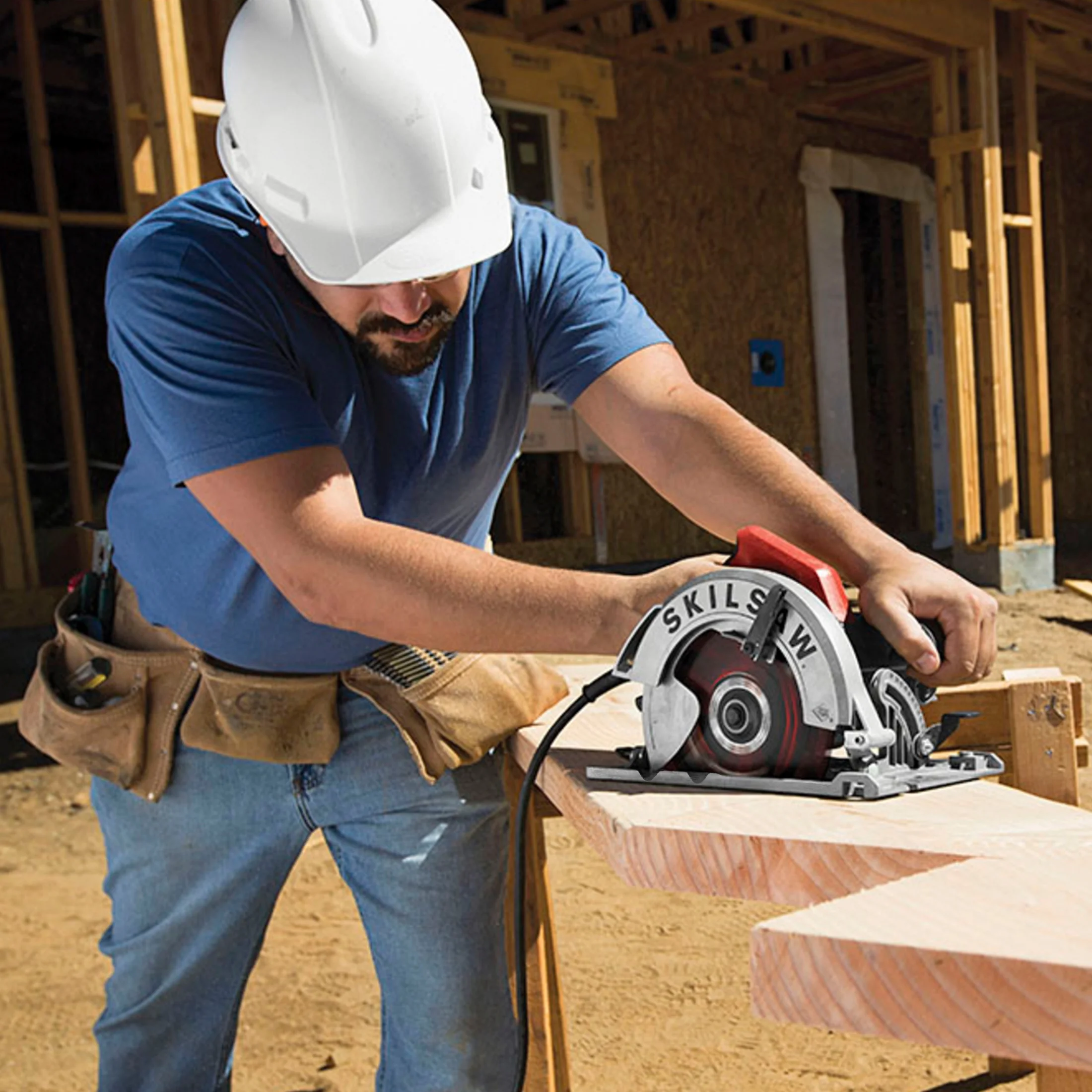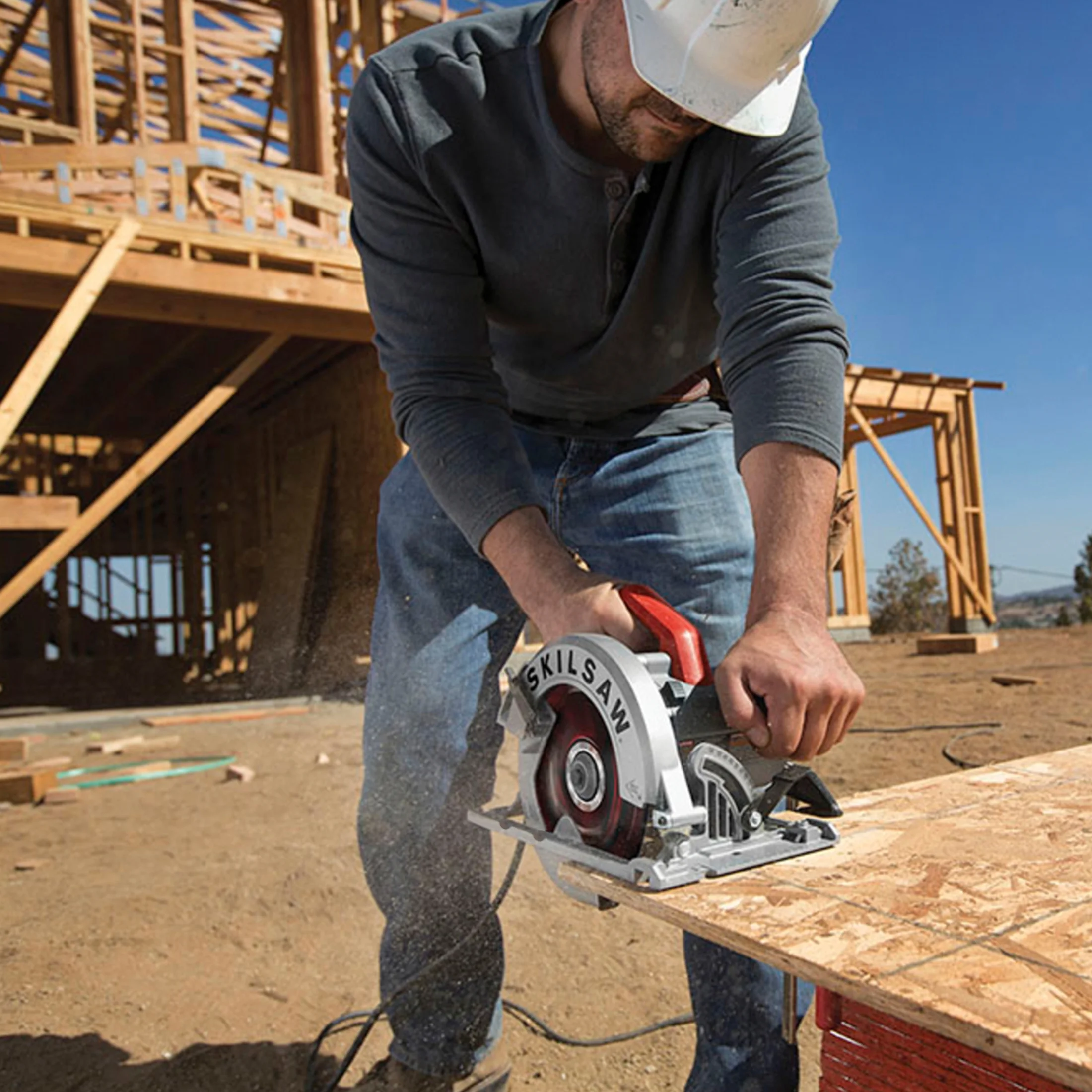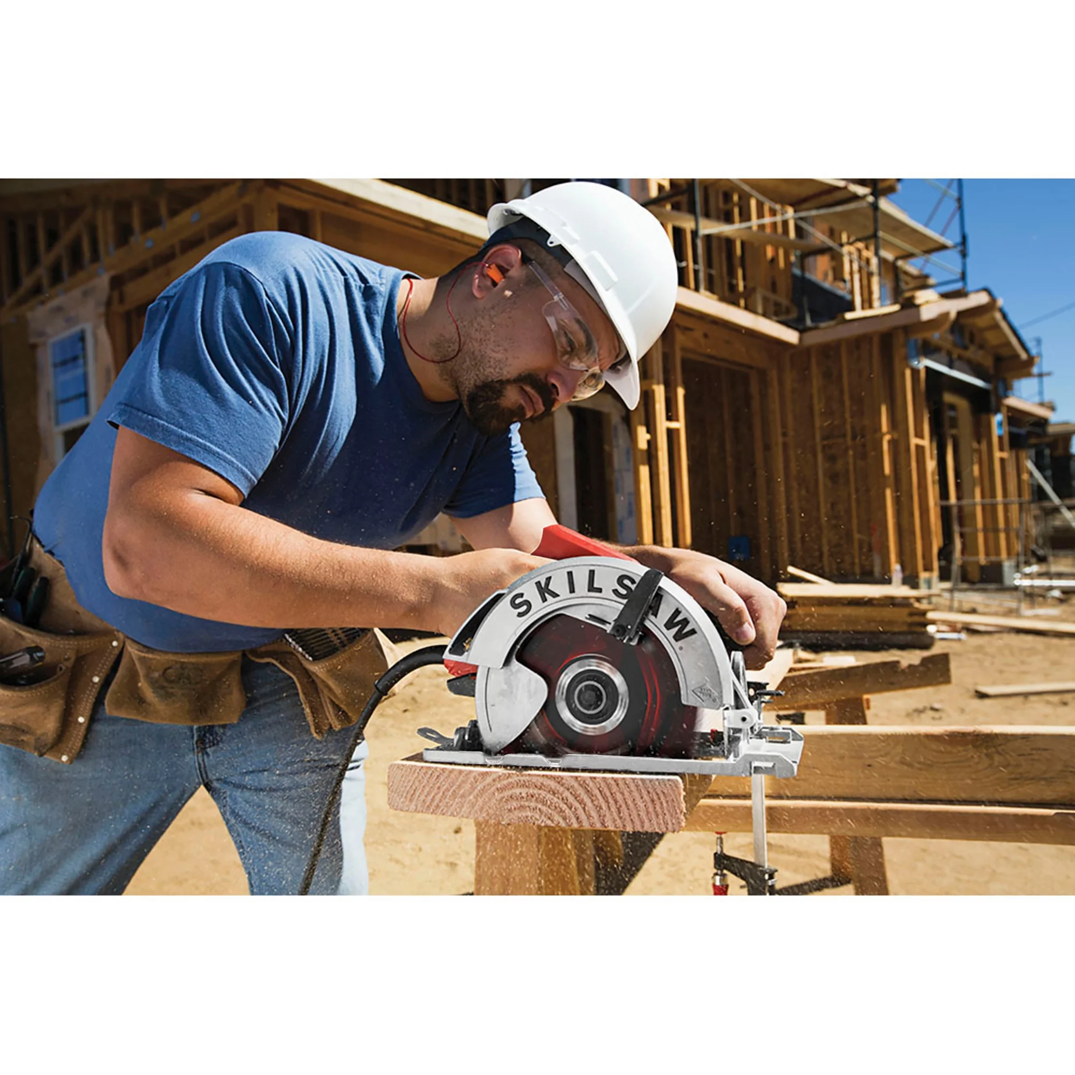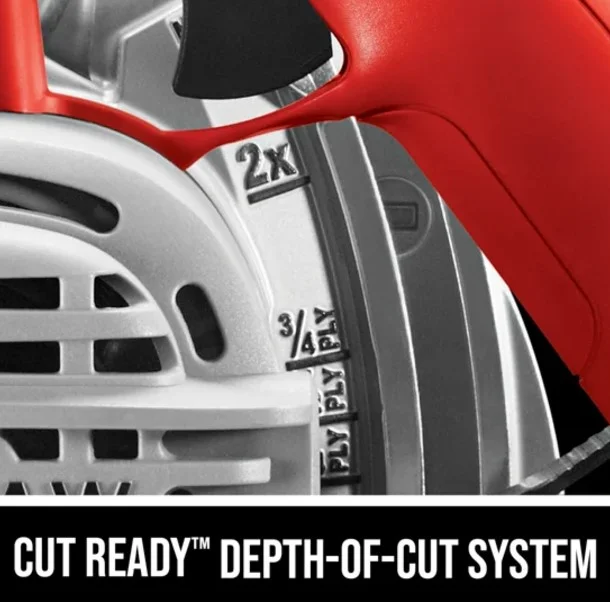 SKILSAW 15 Amp 7-1/4 in. Circular Saw, SPT67WE-01: Lightweight motor housing; Best-in-class torque improves productivity and speed of cut; Dual-field motor is especially designed for saws by providing increased cooling to extend tool life; Comes with 7-1/4 in. 24-tooth SKILSAW blade and multi-functional wrench ; Dust blower clears the line of cut for increased accuracy ; Accessible brushes; Handle with true grip. It has powerful capacity. 2-7/16 in.(62 mm)Max cut at 90°;1-7/8in.(47mm)Max cut at 45°;1-11/16in.(43mm)Max cut at 51°