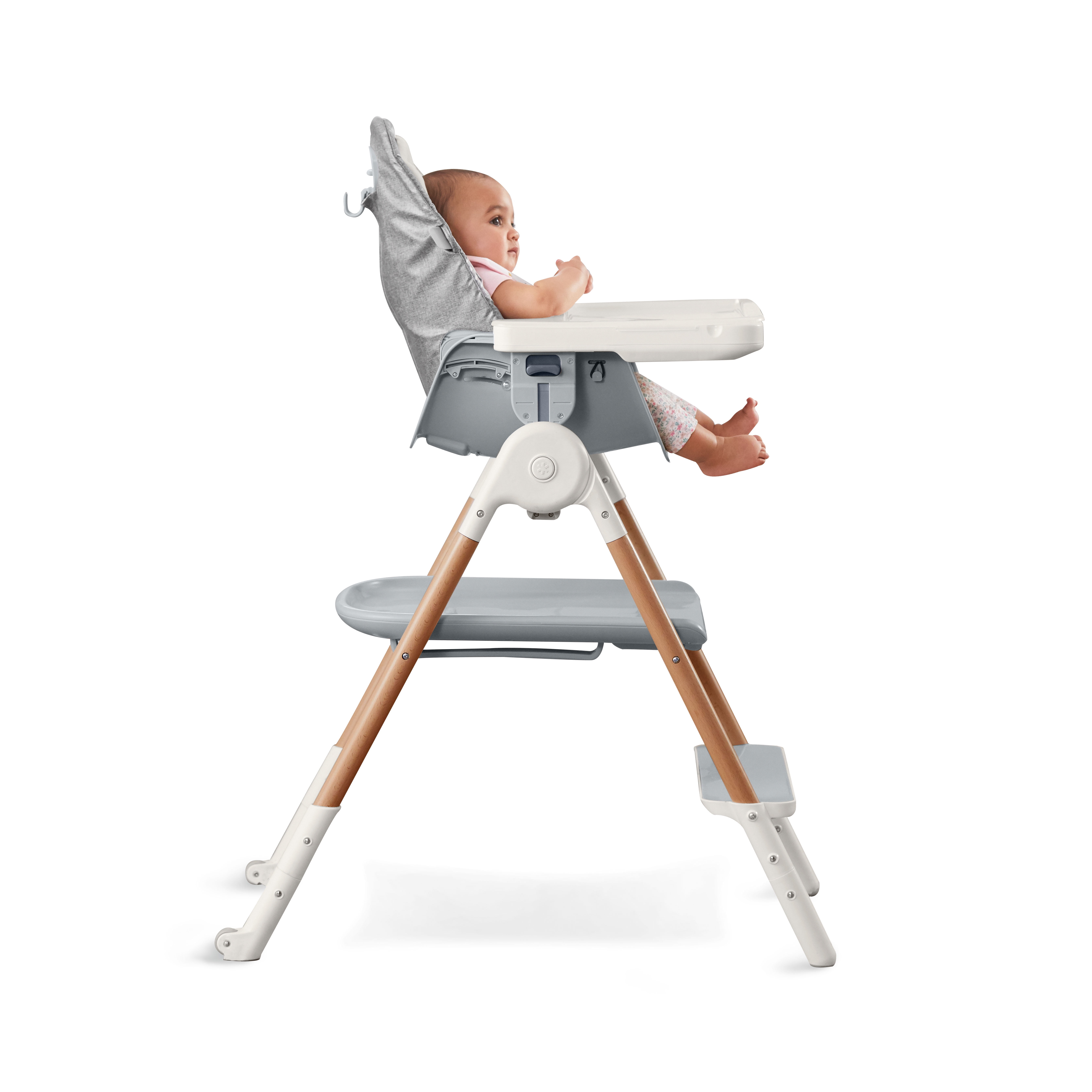 Versatile 2-in-1 Design: Skip Hop’s Sit-To-Step High Chair transitions from a highchair to a toddler kitchen helper, adapting to your child’s developmental stages and offering grow-with-me functionality. Grows with your child: Perfect for babies from 6 months to 3 years (up to 33 lbs/15 kg) and toddlers from 3+ years (up to 200 lbs/91 kg) Height Adjustable and Reclining Seat: The seat reclines in three angled positions, ideal for infant feeding. The height adjustment feature makes it easy to pull the chair right up to the table, integrating your baby into family meals. Easy to Clean and Maintain: Features a wipe-clean seat cover that is removable and machine washable. The secure 5-point harness can be removed for cleaning, and the tray includes a removable dishwasher-safe insert, making cleanup a breeze. Stylish and Functional Design: Accented with beautiful beechwood, this highchair is not only practical but also stylish. It includes a built-in storage space, a back hook for holding bibs, and inset wheels that tilt for easy mobility. Space-Saving and Foldable: Designed with modern living in mind, this high chair easily folds for storage when not in use, making it a convenient solution for modern homes. Includes infant seat insert and soft head support. Dimensions (inches): High Chair: 32L x 20.25D x 44H; Kitchen Helper: 32L x 20.25D x 34H; (cm): High Chair: 81L x 51.4D x 112H; Kitchen Helper: 81L x 51.4D x 86H.