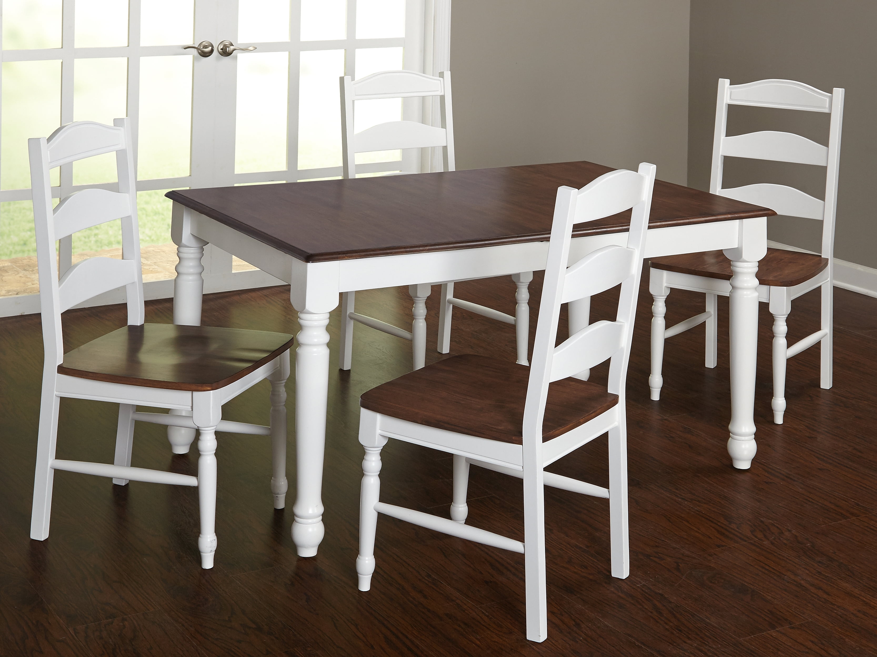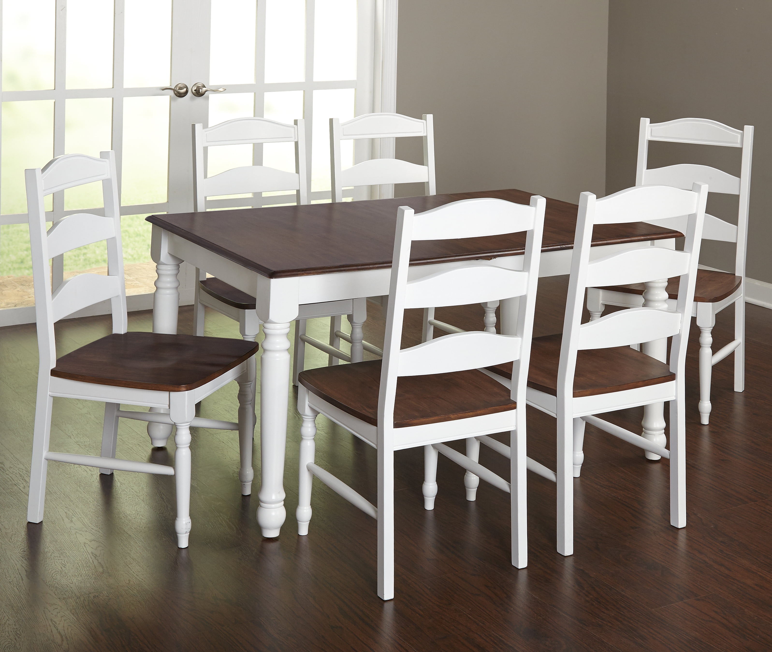Enhance your country, traditional, or shabby chic home with this rectangular dining table boasting a warm walnut finish. Seat up to six people comfortably, and enjoy the peace of mind of knowing that this solid rubberwood table is designed to last. A bright white finish on the graceful, turned legs provides a striking accent. Made of durable rubberwood for superior quality Turned legs feature a white finish for a country-style appearance Warm walnut finish on table top is ideal for traditional homes Matching Skipton dining chairs sold separately Kitchen table seats up to six people Rectangular table measures 29.75 inches high x 60 inches wide x 36 inches deep Requires assembly Ships in one (1) carton Assembly Required