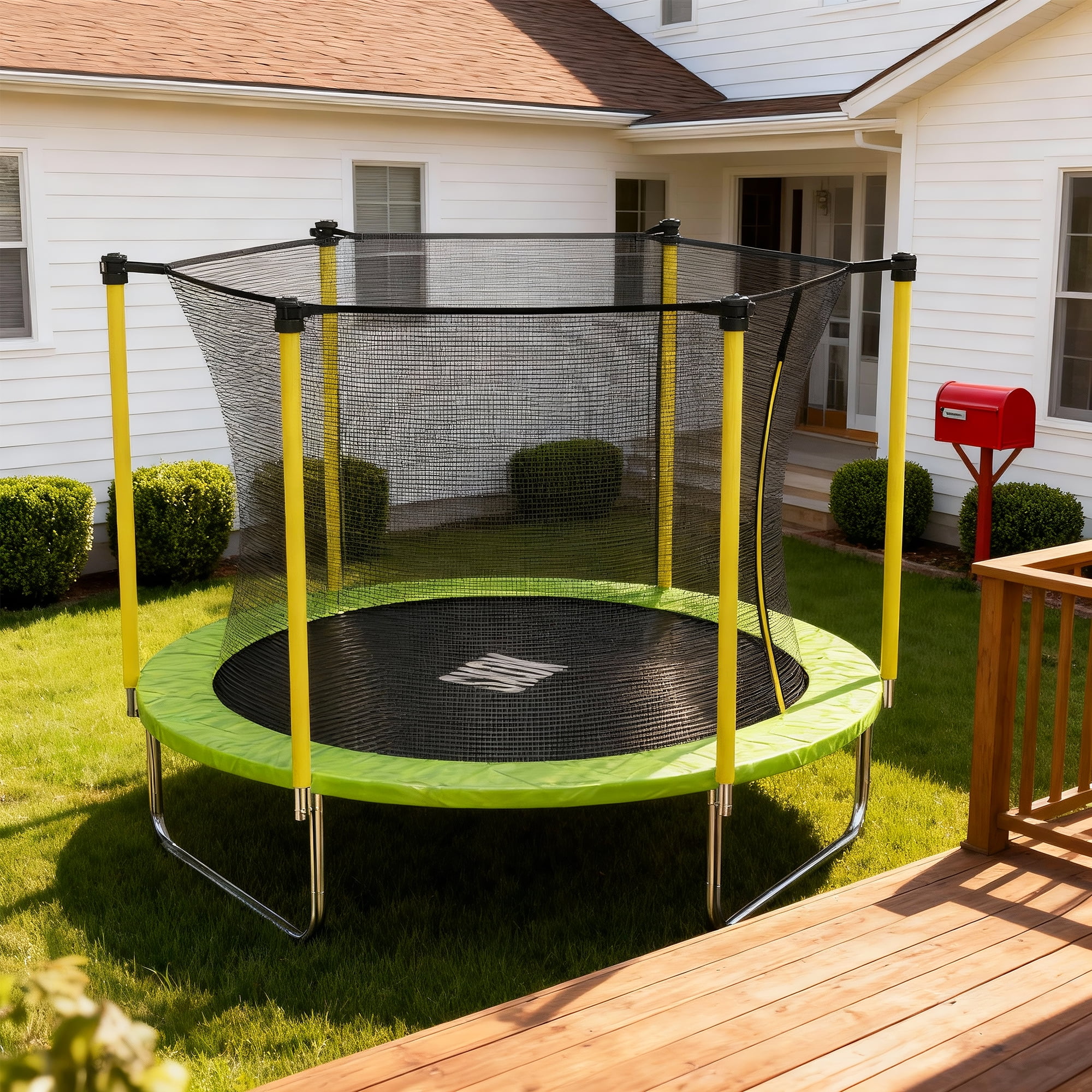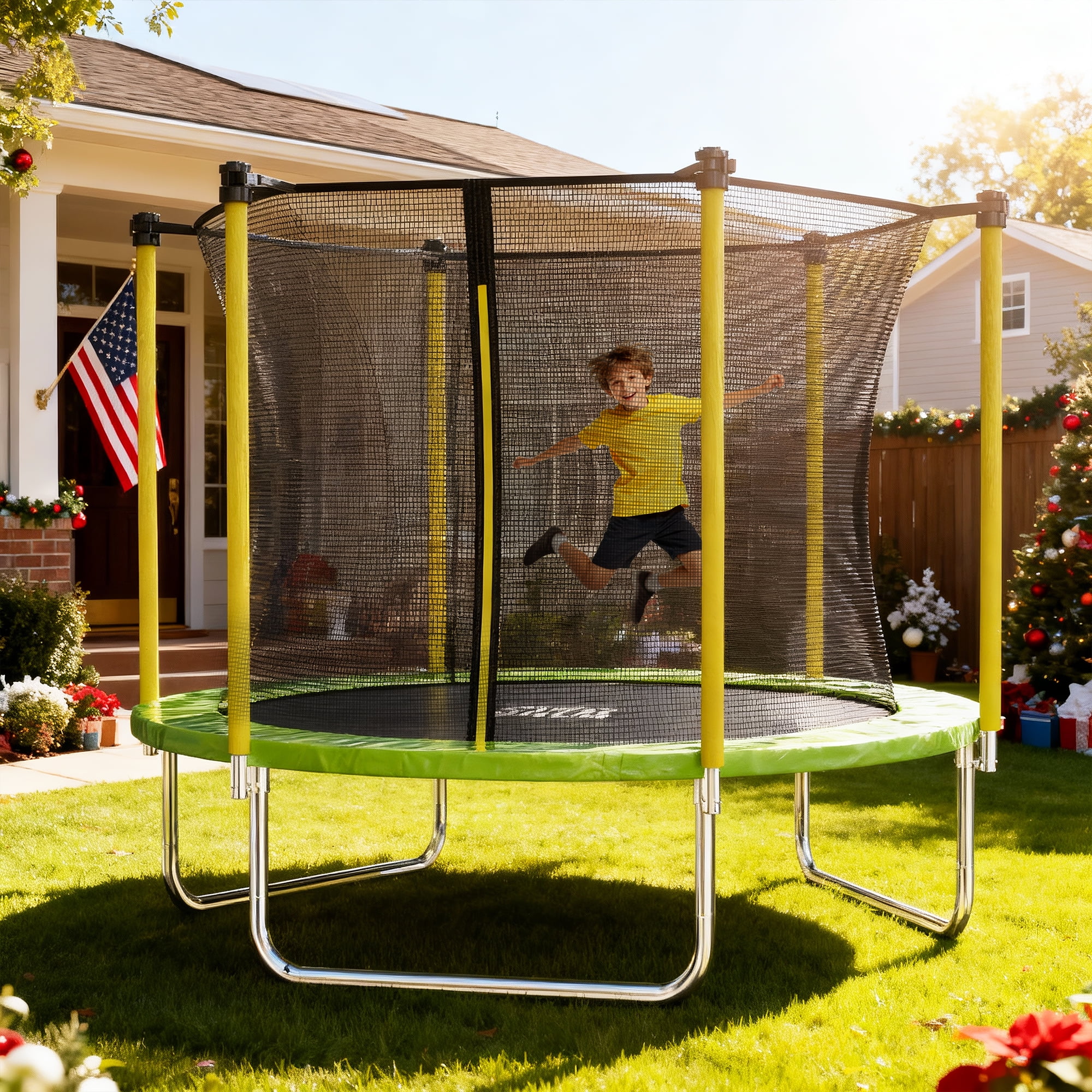 This traditional round trampoline is a great fit for growing children because it gives them plenty of jumping space while still providing a great bounce. SKOK trampoline is made of high quality galvanized steel tubes to provide durability and stability. This trampoline can keep your kids entertained for hours and help your child improve their jumping skills while boosting their body’s metabolism and improving their immunity. This trampoline also features a no-gap enclosure system that interlocks the jump mat and enclosure net at each spring, eliminating dangerous gaps. SKOK Trampoline the Best Gift for Kids. Features: -360° Enclosure net and no gap design provide a safe sports environment. -4 U-shaped support legs are evenly distributed for more stable construction . -The steel pipes are all galvanized to achieve good anti-corrosion and anti-rust effects. -The trampoline is made of anti-ultraviolet and waterproof materials, no fear of ultraviolet rays and rainy days. -Max Weight Capacity: 800LBS