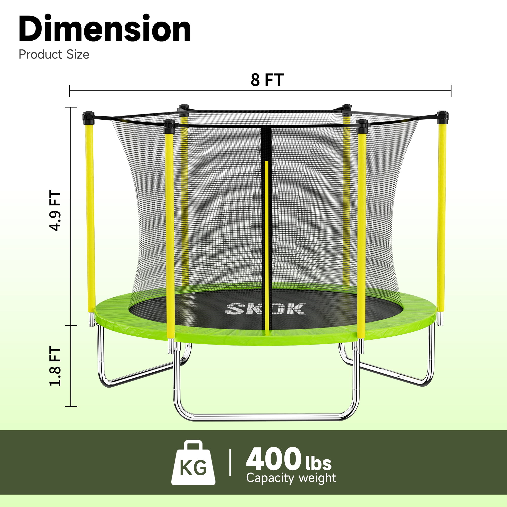 SKOK 8FT Large Cage Trampoline with Safety Enclosure Netting for Kids and Adults, 400LBS Capacity