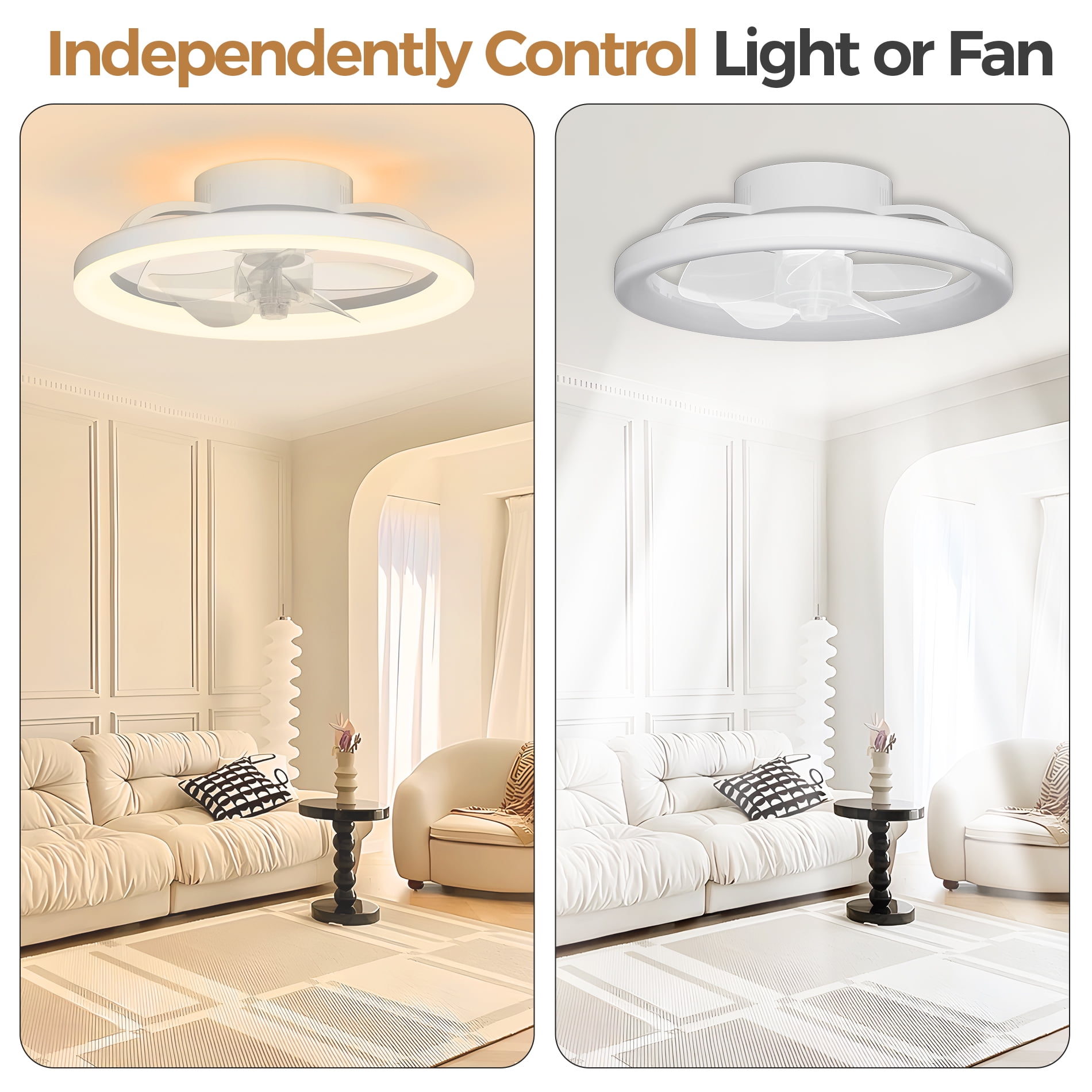 Skvevn 16″ Ceiling Fan for Bedroom, 3 Colors Lighting, 6 Wind Speeds, Remote & APP Control, Modern Dimmable LED Ceiling Fan