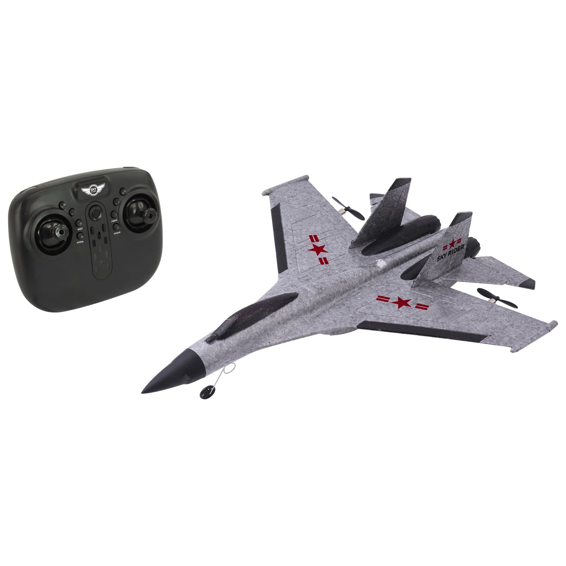 Sky Rider X-92 Jetfighter Aerial Drone Replica remote-controlled fighter jet for an authentic flying experience Built-in high precision 6-axis gyroscope for self-stabilization and easy operation Three adjustable speeds: low, medium, and high for versatile flying 2.4 GHz remote control with 3-channel control for improved stability and usability Control distance of up to 656 ft. (200 meters) for extended range Calibration trim control for precise adjustments Emergency stop feature for added safety Motor crash protection circuit to safeguard the drone Removable, rechargeable Li-Poly battery for convenience Recommended for ages 14 and above Operating time of up to 10 minutes for extended play Charge time of 120 minutes for quick readiness Includes remote control (requires 4 AA batteries, not included), USB cable, 3 propellers, 4 landing gear wheels, 6 screws, and screwdriver