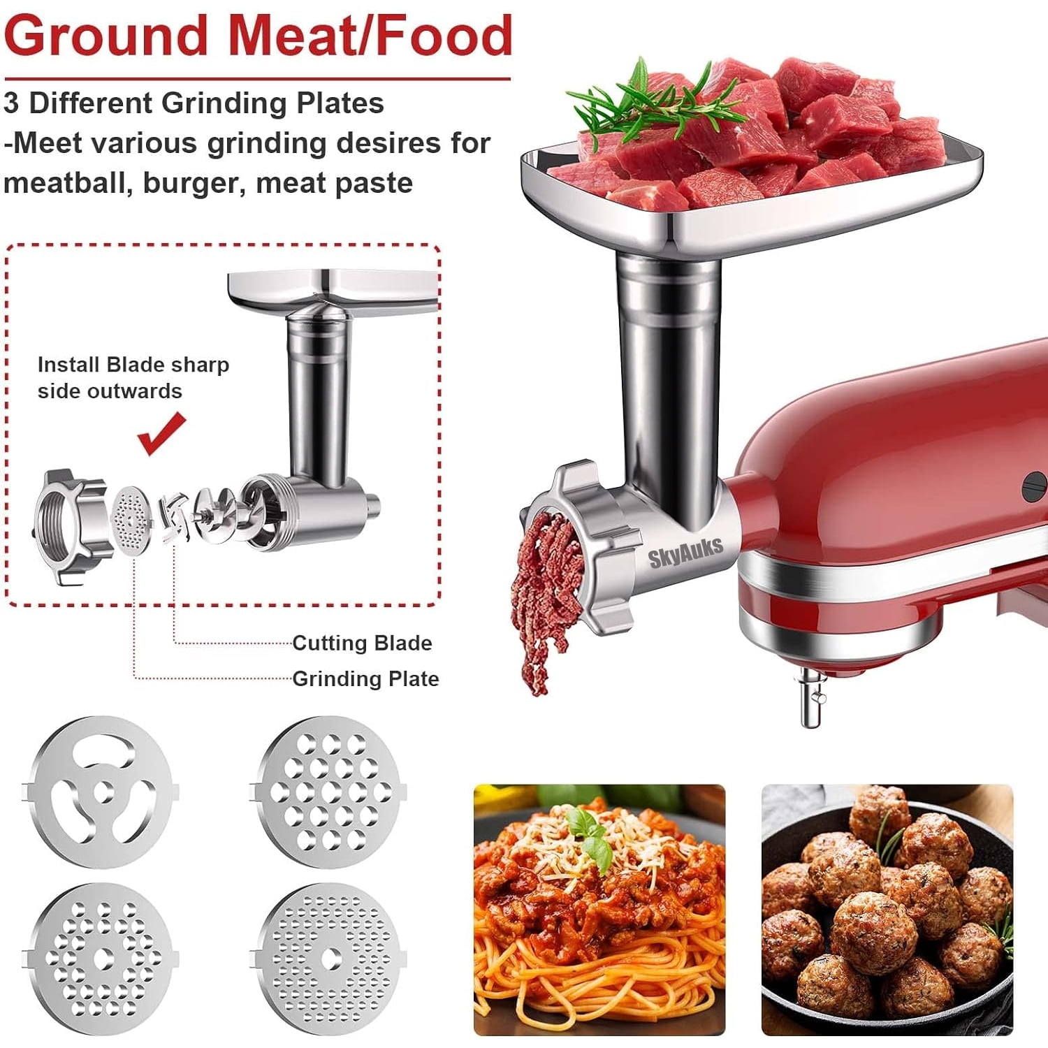 SkyAuks Aluminum Meat Grinder & Slicer Shredder Attachments for KitchenAid Mixer, Sausage Stuffer Tubes