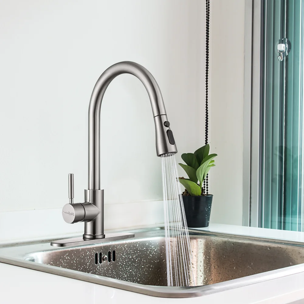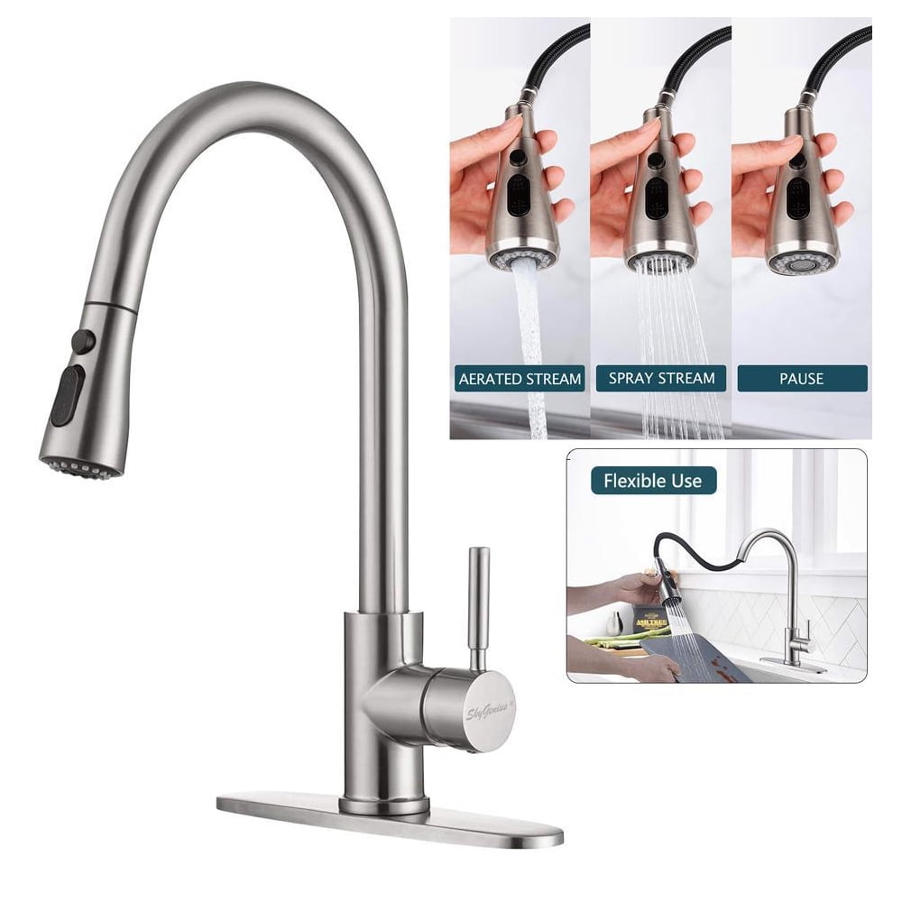 SkyGenius Single Handle Kitchen Sink Faucet with Pull Down Sprayer Brushed Nickel with Deck Plate