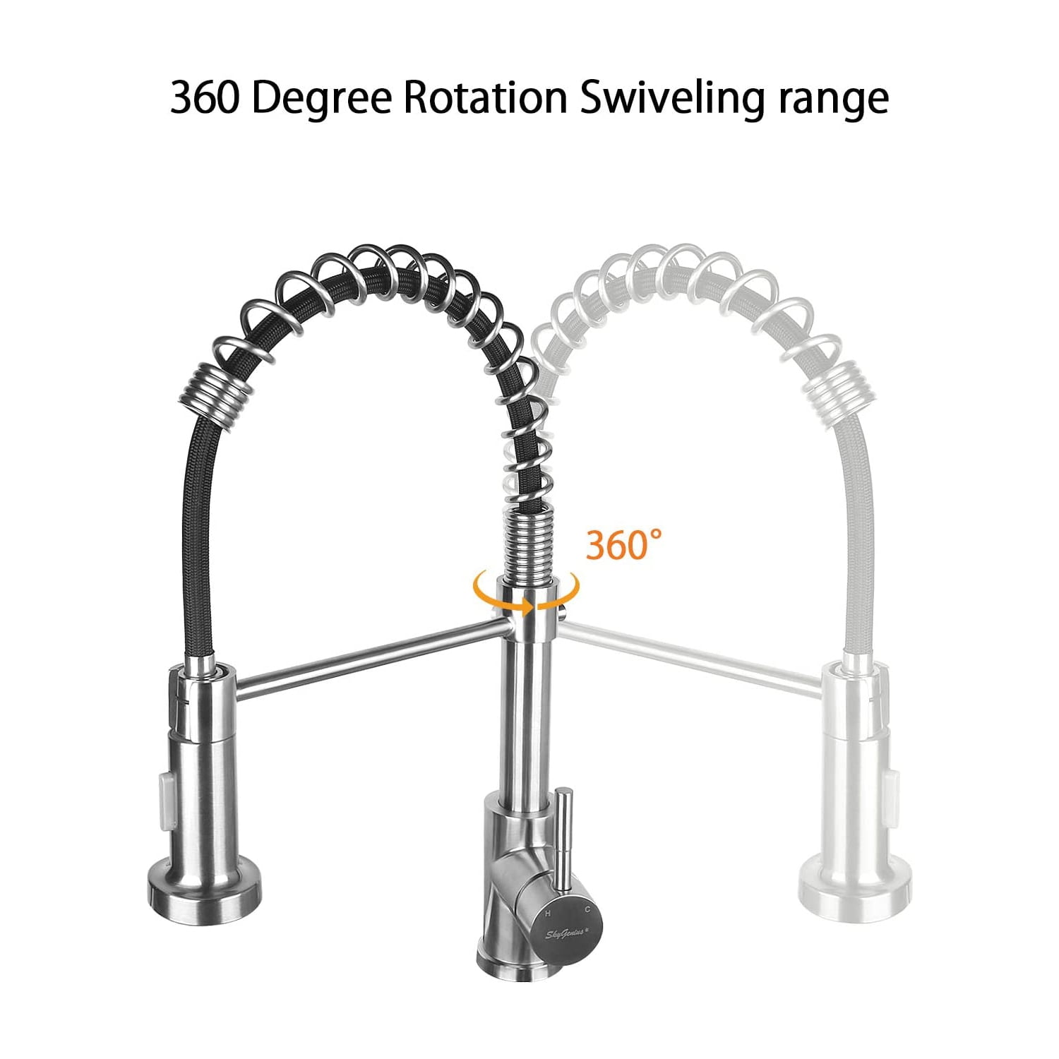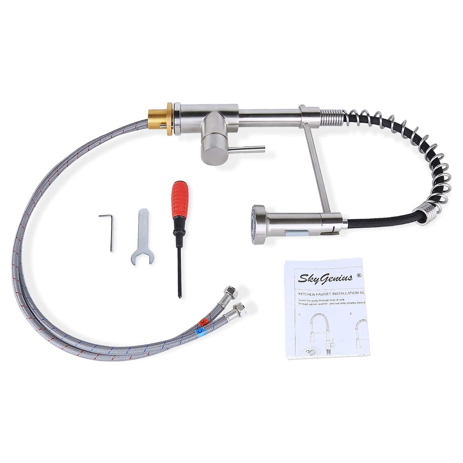 SkyGenius Single Handle Pull Down Kitchen Faucet Spring Sprayer Brushed Nickel Sink Faucet