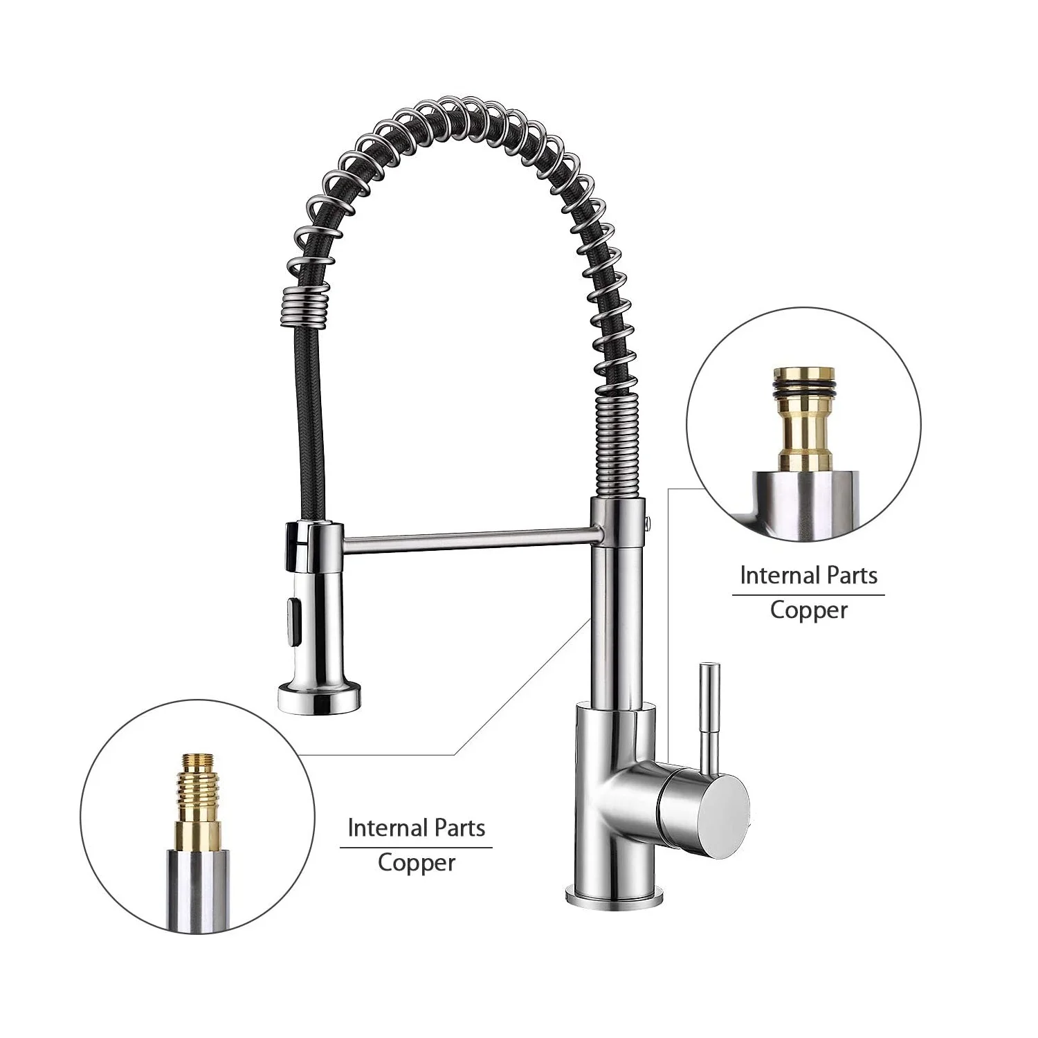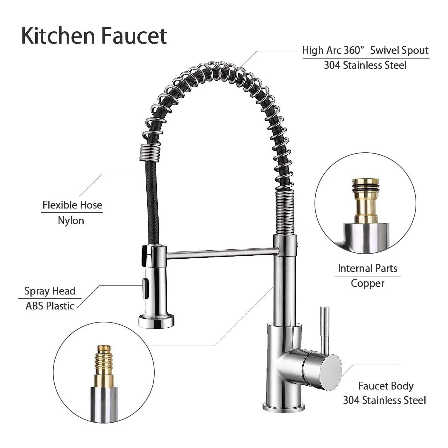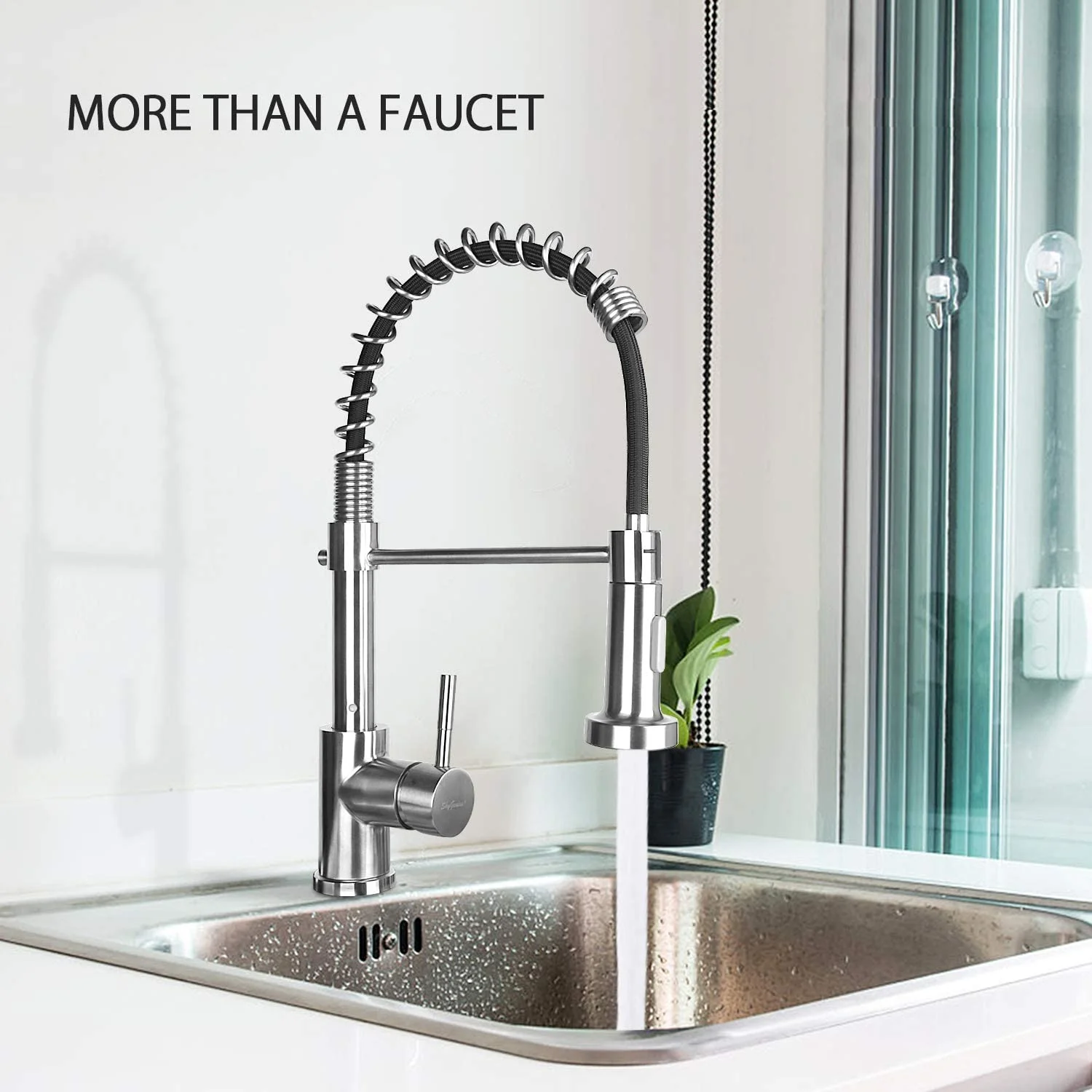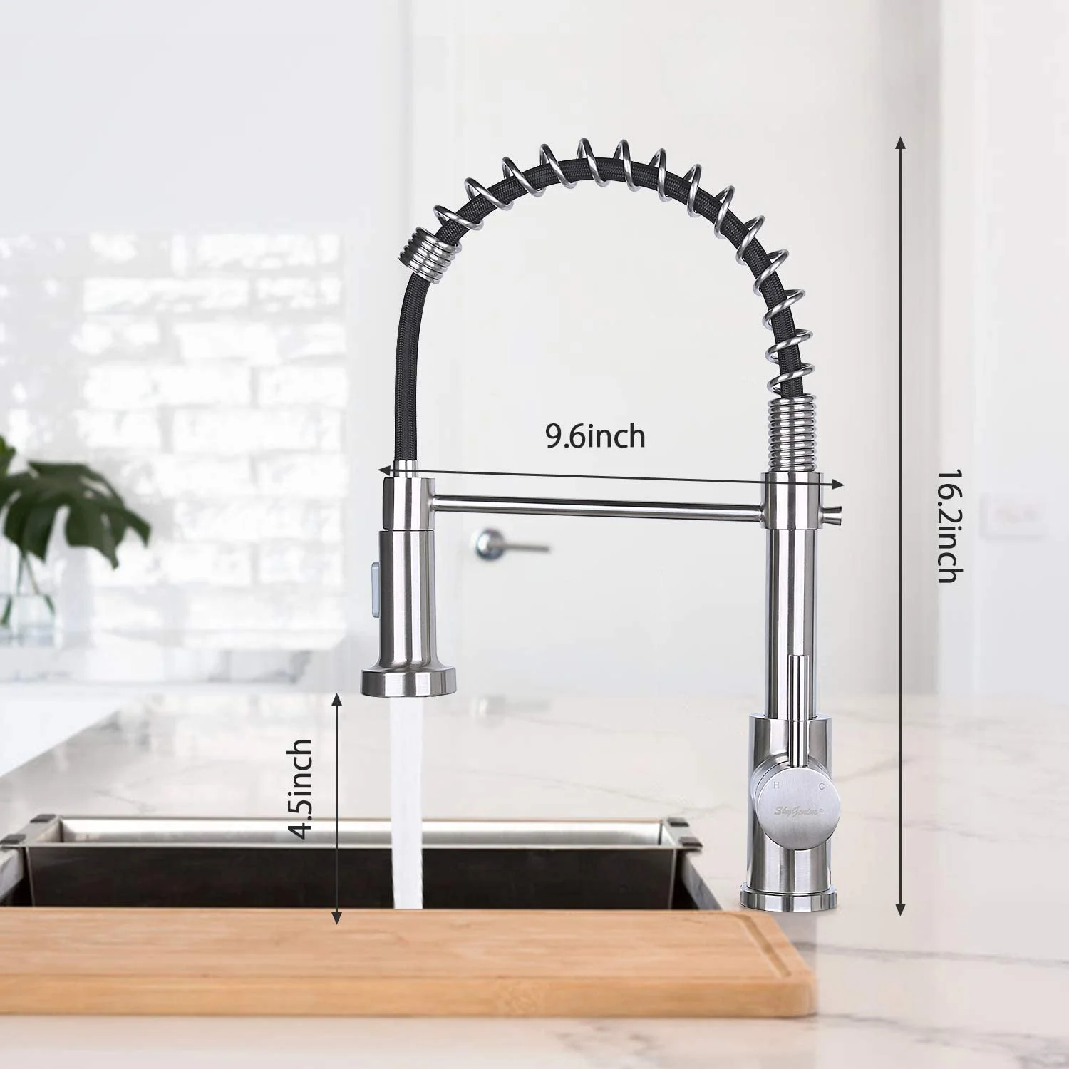 SkyGenius Single Handle Pull Down Spring Sprayer Kitchen Faucet in Brushed Nickel