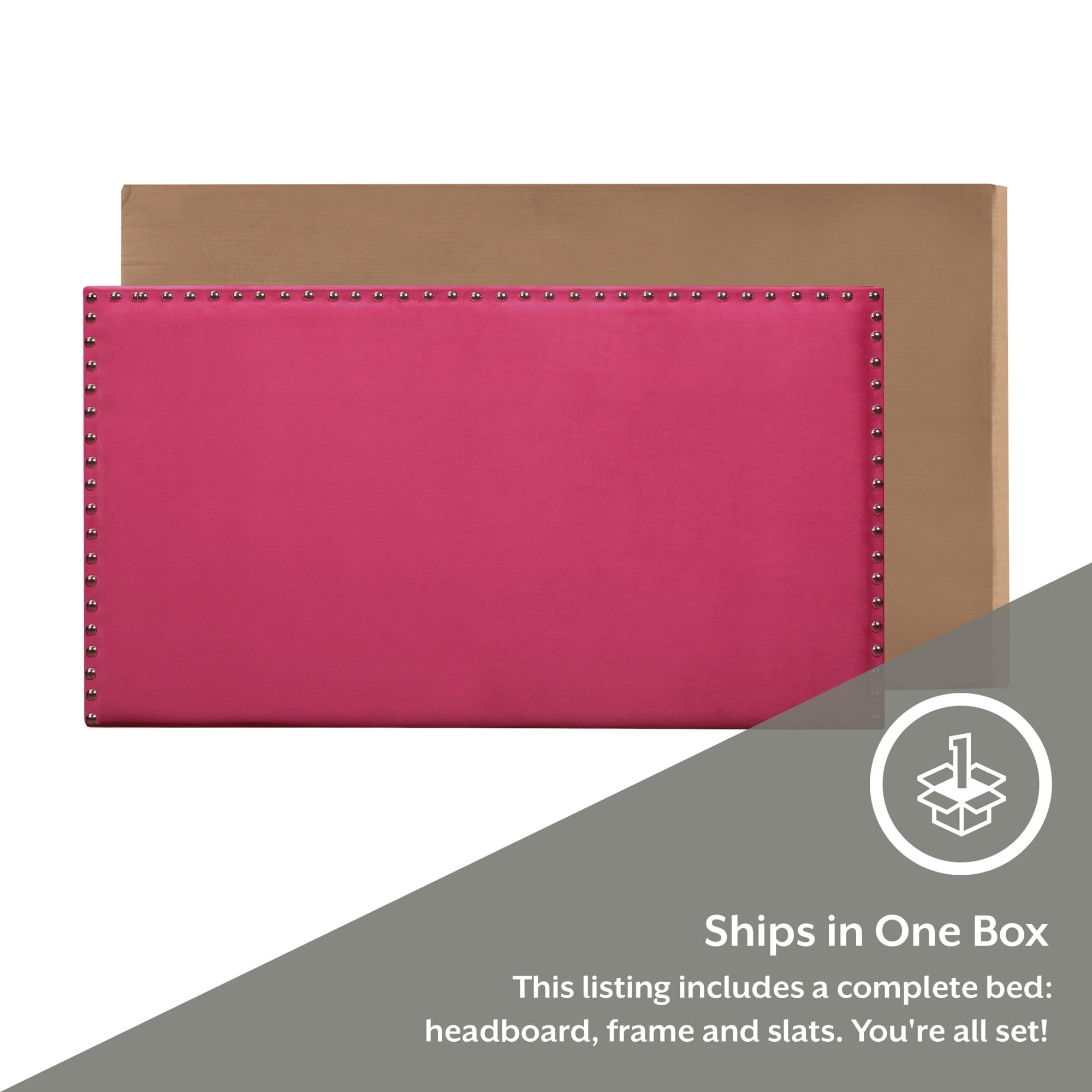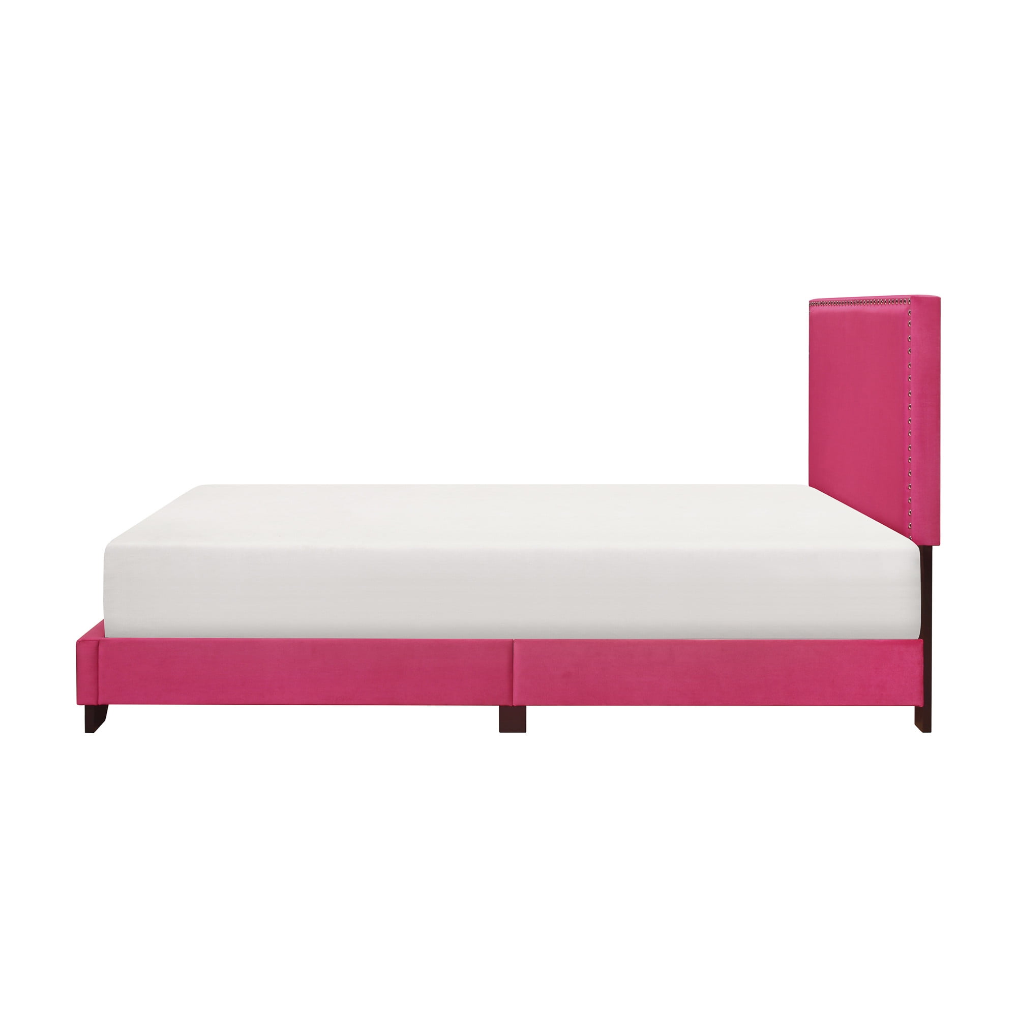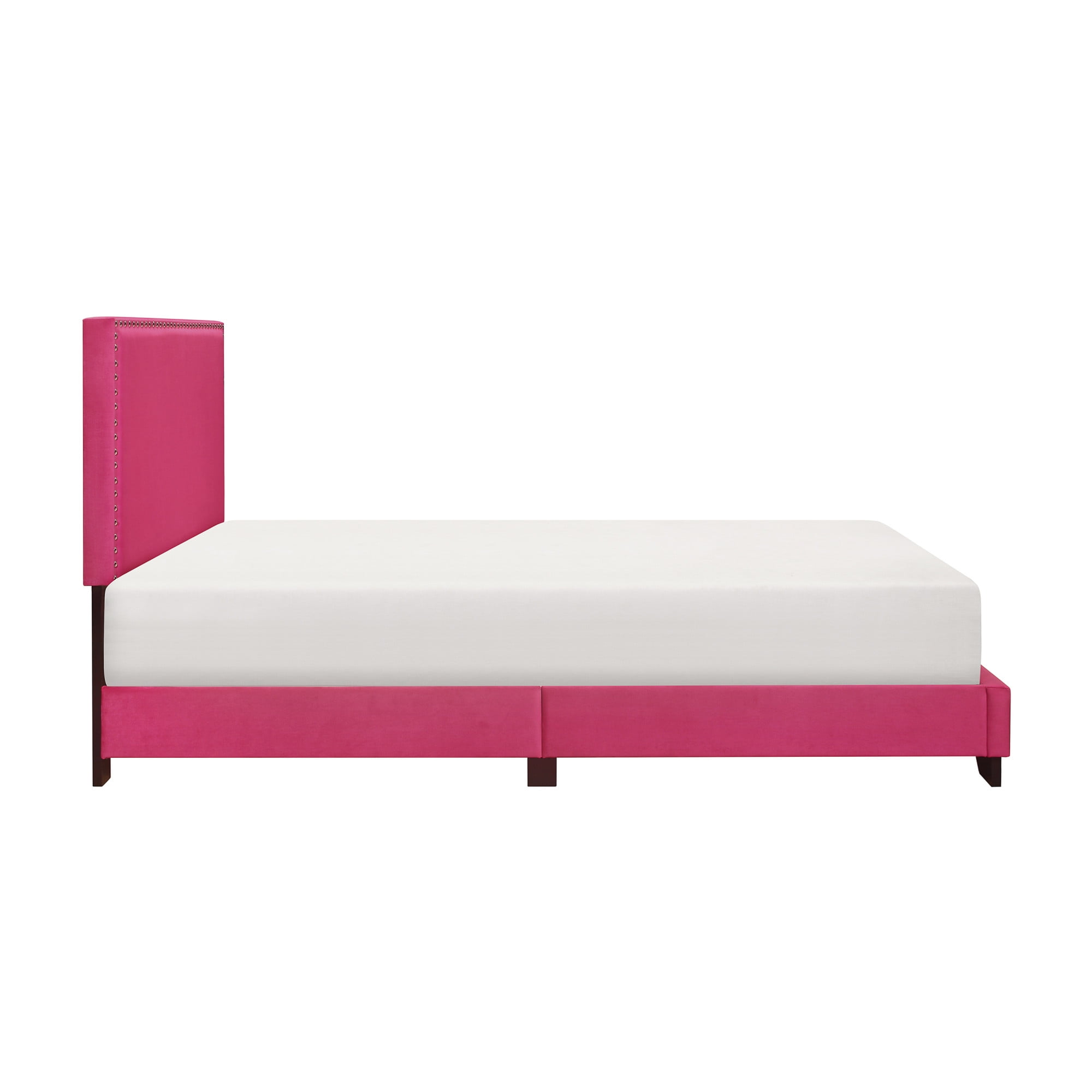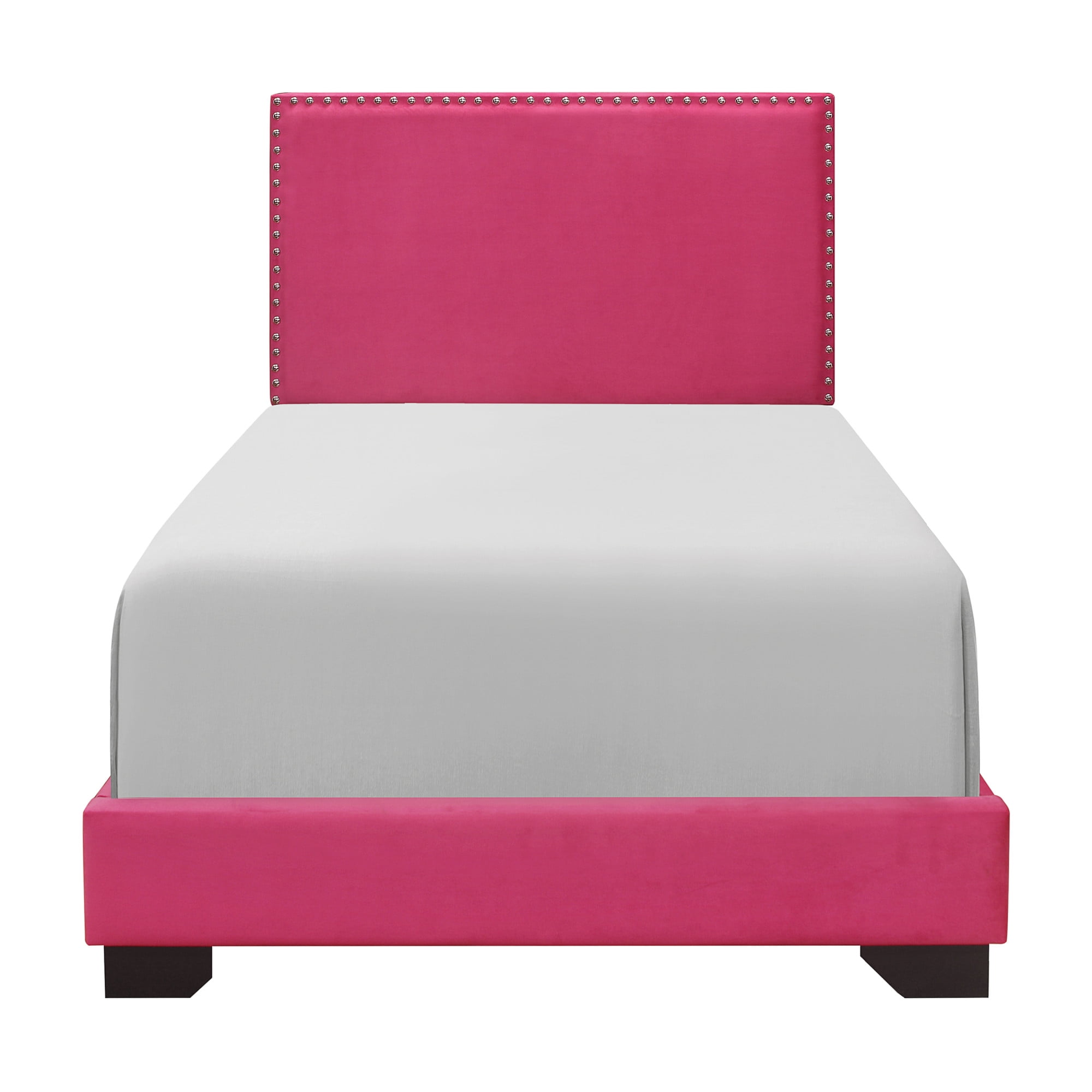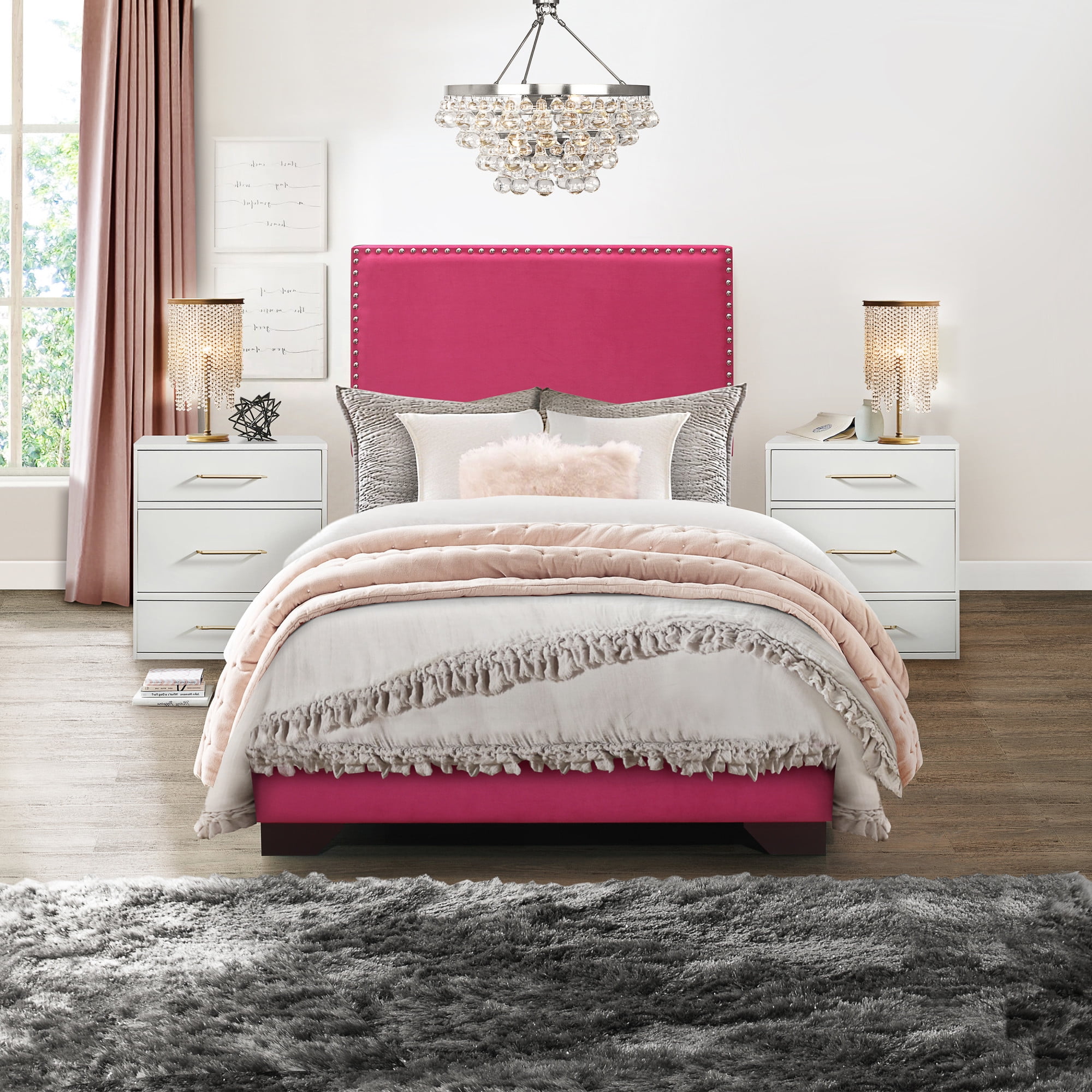Skylar Nailhead Trim Upholstered Twin Platform Bed, Pink