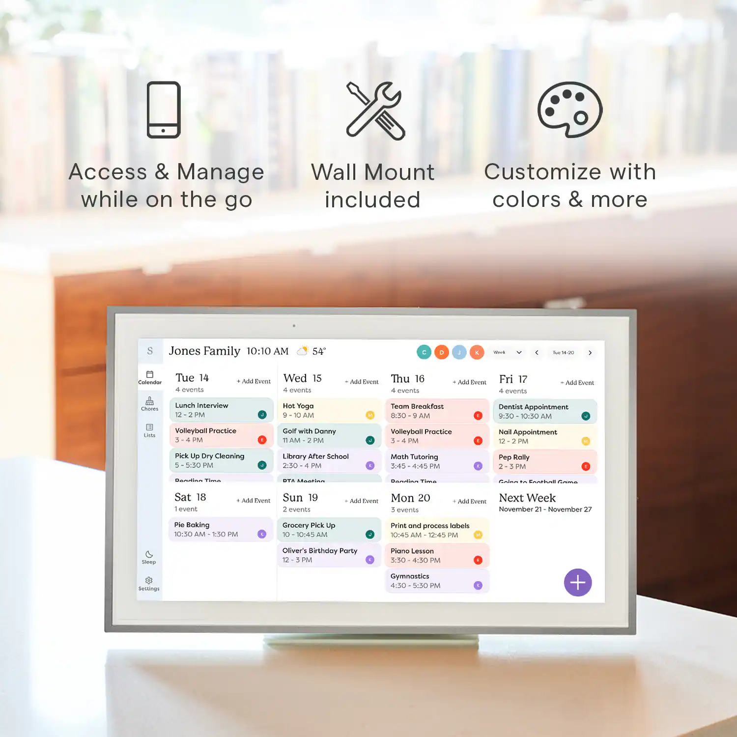 Calendar and planner touchscreen display that will get the whole family organized and running smoothly. It’s never been easier to keep the whole family informed by assigning each member their own color and chores.
