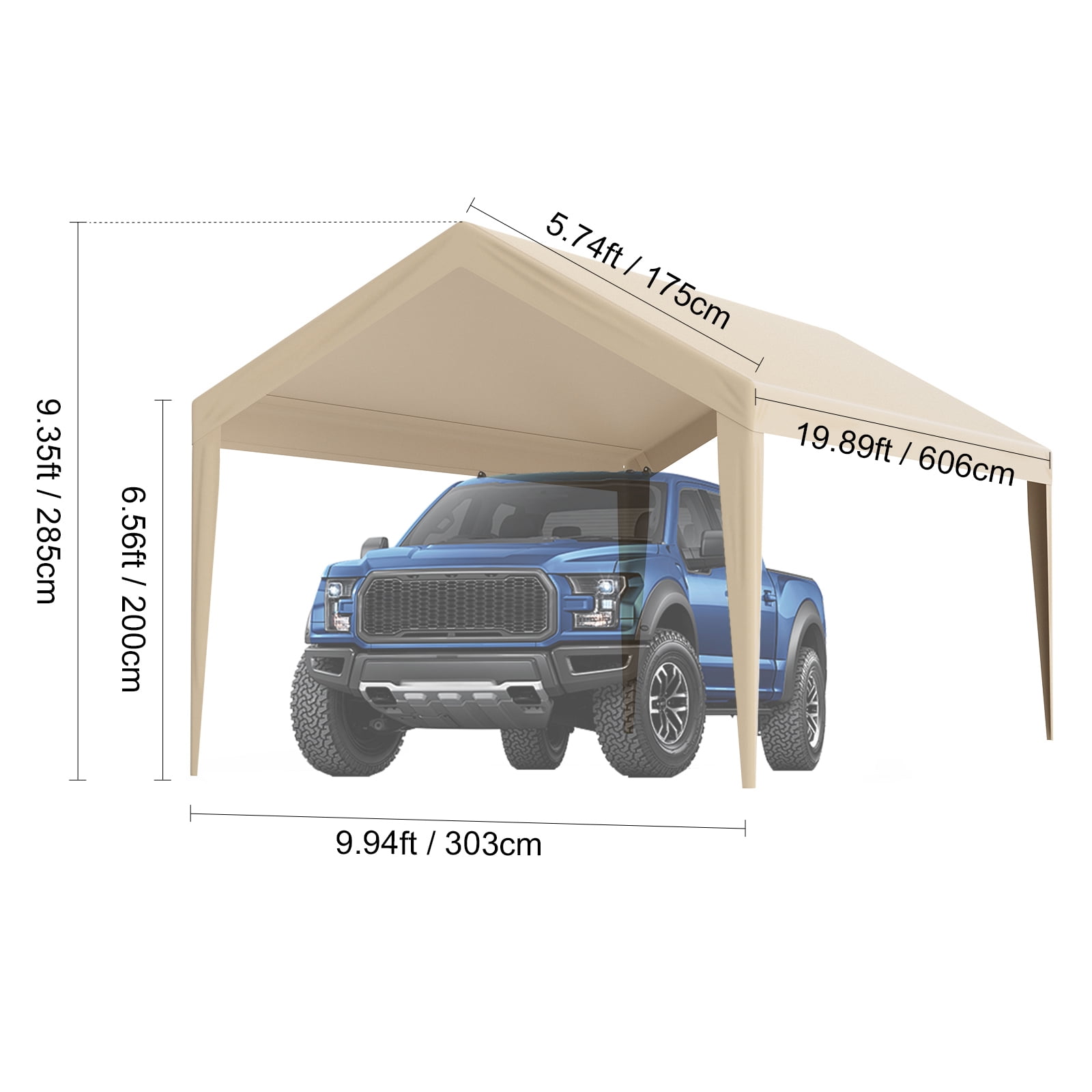 KFFKFF 10 x 20 Feet Car Shelter Tent Cover Carport Replacement Canopy Beige