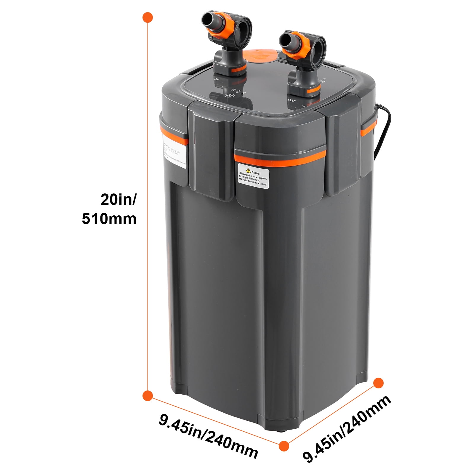 Product Description SKYSHALO Aquarium Filter, Easily Purify Water Quality This aquarium filter utilizes a powerful motor to generate consistent pumping power and pressure, providing a healthy and clean tank for your pet fish. Built-in Pure Copper Brushless Motor This aquarium filter features a pure copper brushless motor that operates silently. There is no air inside the filter, resulting in low power consumption and high flow rates without any noise. The sound level is less than 50 decibels, ensuring a quiet and comfortable condition. Thoughful Details This aquarium filter boasts user-friendly design features, including a UV protection lamp with automatic timer settings, a flow adjustment valve for customizable water flow, and a dual quick-release head design for easy cleaning and maintenance. Multiple Sealing Design The aquarium filter is equipped with multiple sealing mechanisms to prevent leaks. It features quick-release joint design, thickened and securely fastened waterproof rubber rings, sealed inlet, and a locking clasp design. Versatile Application Primarily designed to maintain clear water, adequate oxygen levels, and suitable for various settings, including home aquariums, backyard fish ponds, aquarium exhibition tanks, and tanks in flower and bird markets. Upgrade UV Lamp Timer This aquarium filter comes with a UV lamp that can be set to automatically turn on and off at specific times, making it convenient to maintain a balanced and healthy water quality in your fish tank. Adjustable Exhaust Valve Design The aquarium filter features an adjustable exhaust valve design that allows you to use it without the need to add water. Simply pull up the exhaust valve to activate it, making the operation incredibly convenient. Specifications Model: AQ-911F-UV 20W Pump Power: 20W Timed UV Function: Yes Noise Level: 70.87”/1.8m Number of Filtration Layers: 5 Recommended Tank Capacity: 200 gallons / 757.1L Color: Gray Main Material: ABS Product Weight: 13.45 lbs / 6.1 kg Product Dimensions: 9.45×9.45×17.32 inches / 240x240x440mm Package Content 1 x Aquarium Filter 2 x Inlet/Outlet Components 2 x PVC Hoses 47.24”/1.2m 1 x Inlet Hose 1 x Inlet Adjustment Switch 1 x New Oil Film Remover 1 x Oil Film Remover Adjustment Switch 1 x Float Head 1 x Extension Tube 1 x Telescopic Tube 1 x Basket 1 1 x Outlet Hose 1 x Outlet Adjustment Switch 1 x Elbow Tube 1 x Air Flow Regulator 1 x Air Tube 1 x Outlet Nozzle 1 x Basket 2 1 x Plug 5 Suction Cups 2 x Rainfall Pipes 1 x UV Lamp Glass Tube 1 x User Manual