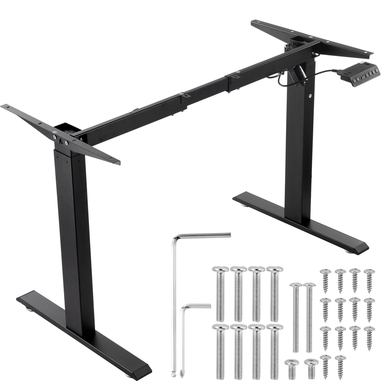 Product Description Enhance your workday with our desk framework Stand longer, work smarter: Our desk frames support your success1! Quiet but robust with 3-position memory, flexible mounting and versatile design. The height and width are adjustable to ensure the safety and comfort of your personal working location. High quality construction, stable and quiet With a premium motor design, this standing desk not only ensures longevity, but also runs very quietly. Its smooth movement ensures safety and reliability, emitting low noise and achieving quiet and comfortable working conditions. 3-bit memory function With the 3-gear height adjustment function, you can easily switch between sitting and standing modes to increase your productivity. Its spacious workspace design provides enough space for your work essentials, ensuring a comfortable office experience. Installation guide This standing desk comes with a full range of accessories and easy-to-understand installation instructions. When dealing with uneven surfaces, the pads can be adjusted to ensure balance. Multifunctional design The desk is less than 50 decibels at height adjustment, smooth and fast operation, and has an anti-collision design for added safety. Its stepless height adjustment can meet different user requirements, while the reinforced bottom rod ensures stability and prevents shaking. Diverse usage scenarios This standing desk allows you to DIY your own workspace anytime, anywhere, whether by the sofa, bedside, or in a dedicated office area, effortlessly creating a comfortable working environment for you. Adjustable height and width With a variety of height and width adjustment options, you can customize your desk according to your personal preferences and create the best workspace for you. Specifications Model: ZW-11 Height Lifting Range: 27.56-46.06 inch / 70-117 cm Length Extension Range: 35.43-53.15 inch / 90-135 cm Load: ≥ 176 lbs / 80 kg Adjustable Lifting Speed:≥0.79 in /s (2.0 cm/s) Noise: <50(dB) Desktop Size Compatibility: 39.37 – 63 inch / 100-160 cm Main Material: Q235A Cold Rolled Carbon Steel Position Memory Function: 3 Position Settings Unit Conversion: Yes Child Lock: Yes Net Weight: 14.92 kg / 32.9 lbs Product Dimensions (Minimum): 90 x 58 x 70 cm / 35.43 x 22.83 x 27.56 inches Package Content Standing Desk Frame x 1 M6x35 Screws x 8 M6x13 Screws x 14 M4x40 Screws x 2 ST4x16 Screws x 2 M6 Ball Head Hex Key x 1 M6 Cross-Use Hex Key x 1 113 Hexagonal Rod x 1 User Manual x 1