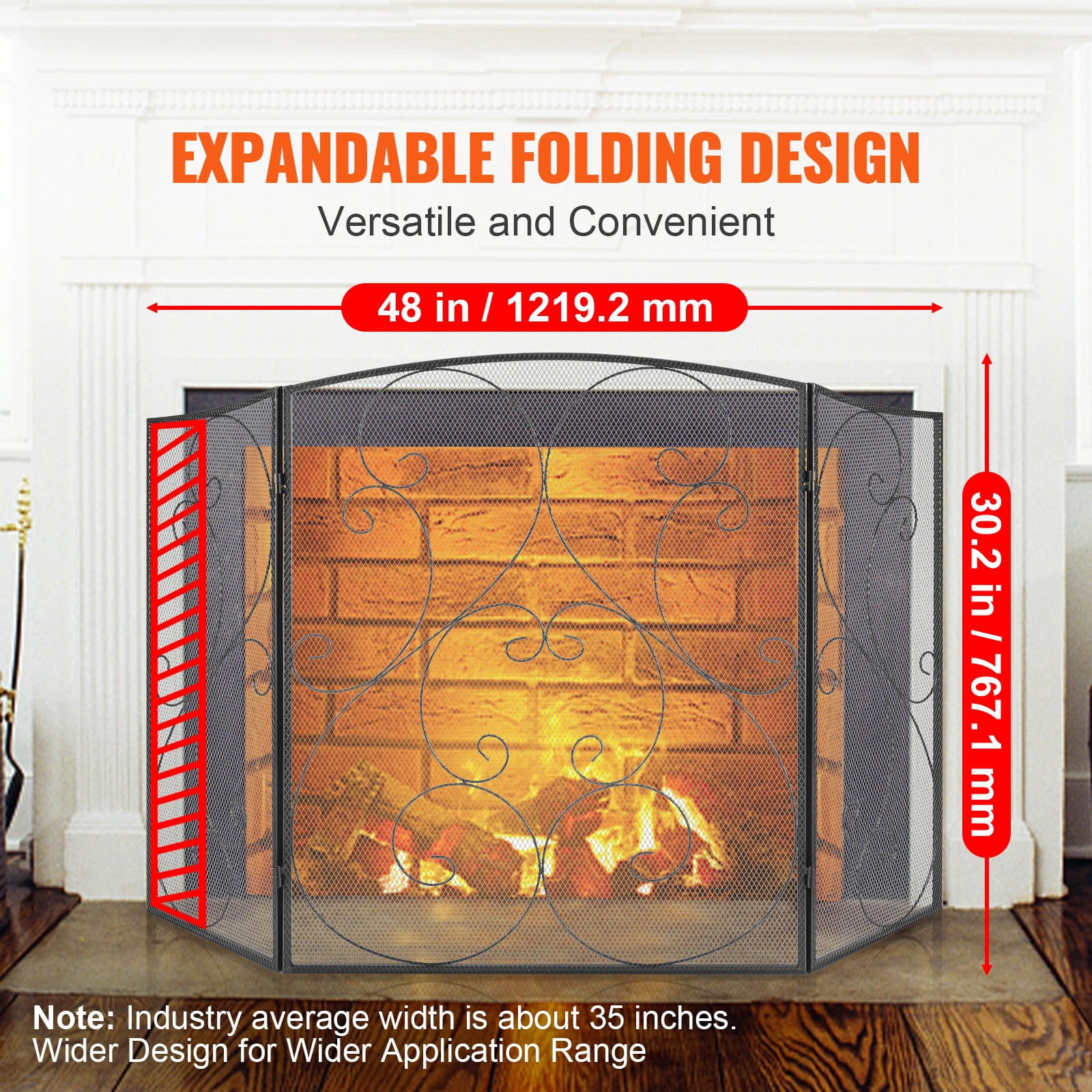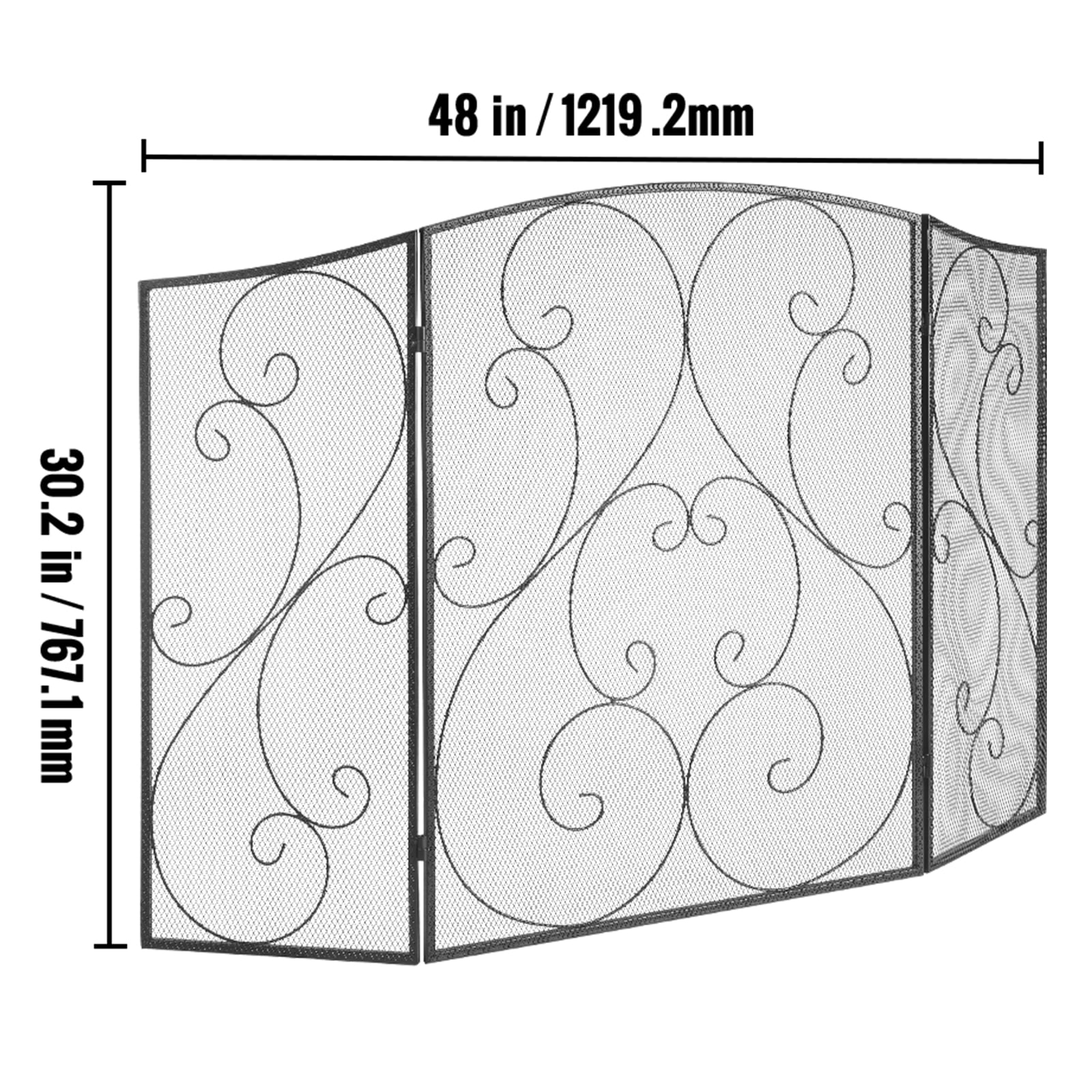 Product Description Fireplace Fire Screen – Comprehensive Family Safety Protection This fireplace door is a standalone non-embedded installation type. With a 48-inch slightly widened design, it fits a wider range of fireplace sizes while providing better coverage. It can be used not only as a fireplace screen but also as an outdoor fire pit barrier, decorative protection, stairway barrier, and more. Product Upgrades We’ve improved our fireplace doors, widening them to 48 inches for better coverage across various fireplace sizes. The foldable design offers superior blocking performance. The Role of Mesh Mesh designs enhance airflow, cool the fireplace faster, and reduce risks. Our high-density mesh boosts blocking efficiency and prevents tiny ember splinters for family safety. Efficient Load-Bearing The three-panel design evenly distributes weight for different fireplace sizes, enhancing load-bearing. Carefully selected materials boost strength, resist shocks, and improve product performance. The Mystery of Welding Our product employs argon arc welding, ensuring smooth and durable welding with no gaps. This enhances aesthetics and suitability for outdoor use. Usage Precautions Use heat-resistant gloves when moving the door to avoid burns. Avoid exposing the door to cold substances until it cools to prevent surface damage. Three-Panel Design, No Installation Required The three-panel fireplace door screen design is foldable and portable, requiring no installation. It can extend on both sides to fit different fireplace sizes, enhancing the user’s experience. Specifications Item Model Number: ZS230422 Operating Temperature: 0-40 °C Style: Vintage Foldable: Yes, 3-panel Foldable Width Size: 48 inches / 121.92 cm With Door: No Material: Iron Color: Black Net Weight (Including all accessories): 6.94 lbs / 3.15 kg ±3% Package Content 1 x Fireplace Screen 1 x User Manual
