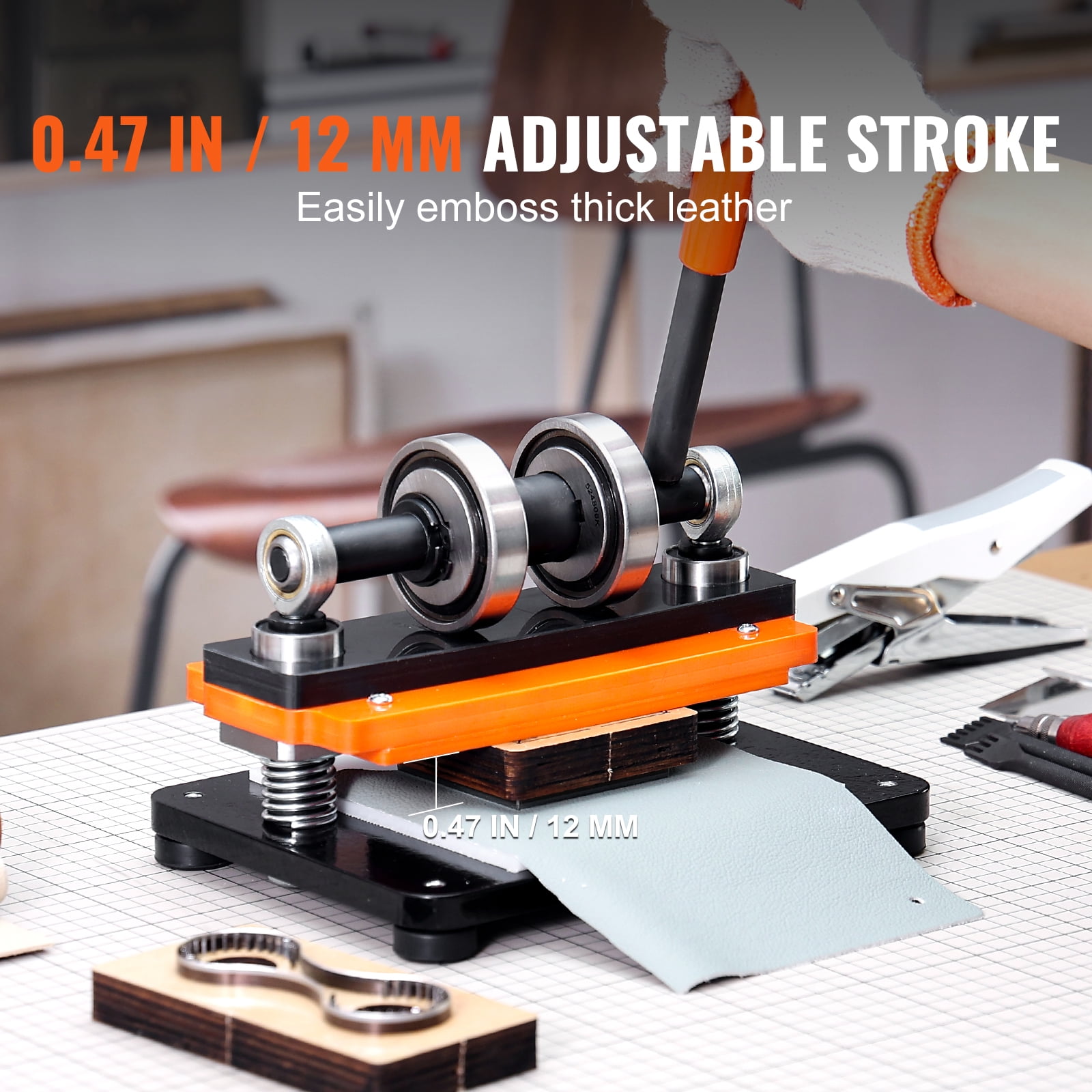 Compact Leather Embossing Machine: With a compact design measuring 7.1 x 3.9 inches, this small-sized leather cutting machine is perfect for limited workspace or tabletops. Its small footprint allows for efficient organization of your workspace. 3306 lbs Impressive Load Capacity: The leather embossing machine features high-strength roller bearings and a thickened galvanized base plate. It can withstand an impressive 3306 pounds / 1.5 tons of weight. Say goodbye to worries about deformation. Exceptional Stability: The design of the thickened galvanized base plate enhances the stability of the die cut machine, making it less prone to tipping over. The dual guiding shafts distribute and balance the force of the embossing machine, ensuring stability during operation. User-Friendly Design: With a 0.47″/12mm adjustable stroke, our leather press machine can handle various thicknesses of leather materials, giving you the freedom to create a wide range of leather products, providing greater design flexibility. Let your creativity run wild! Versatile Application: Our leather die cutter machine is suitable for various materials, including fabric leather, PVC/EVA foam, non-sticky materials, plastic, rubber sheets, and medium-soft materials. It is your all-in-one solution for diverse projects.