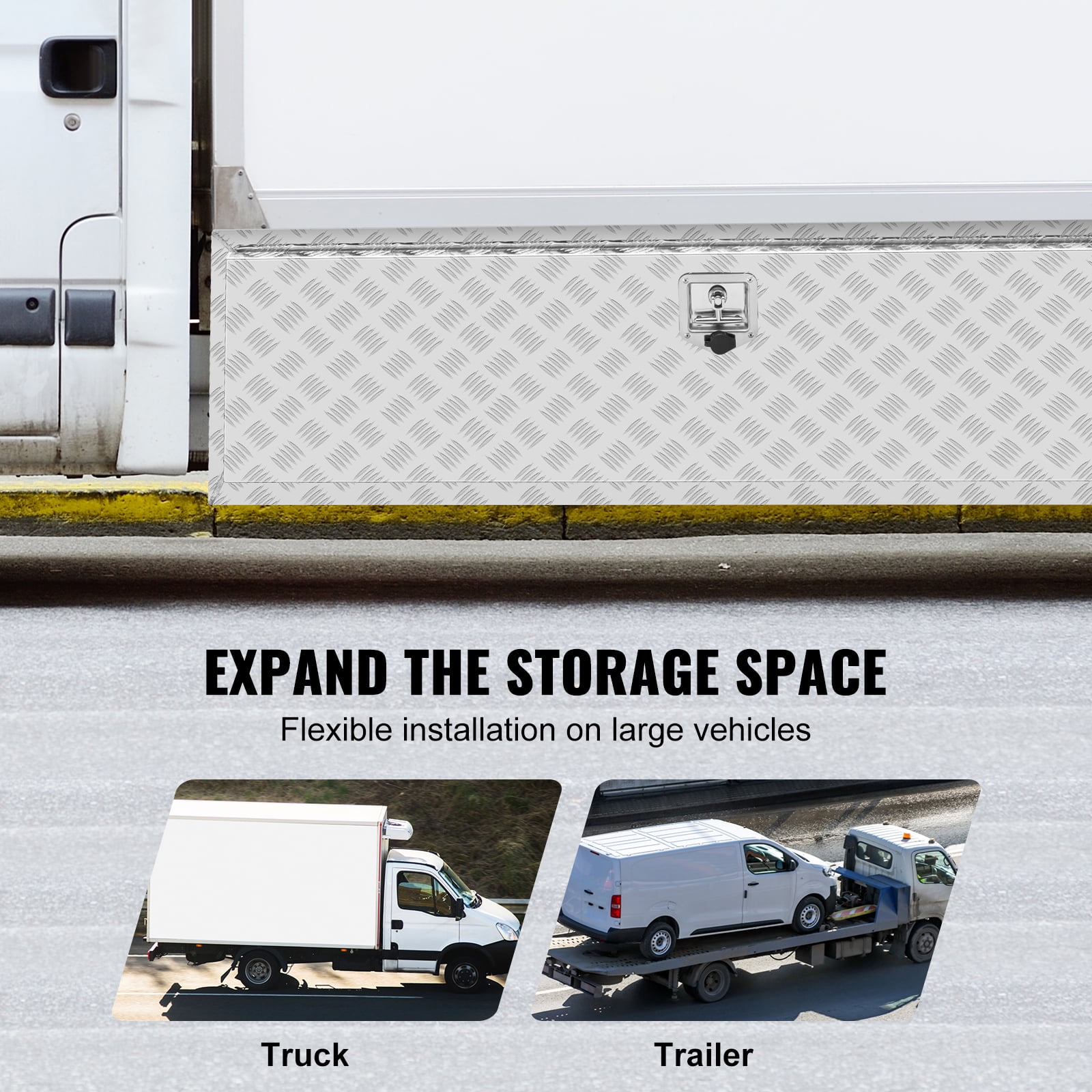 All-Purpose Toolbox for Anywhere: Are you tired of being unorganized? The SKYSHALO underbody tool box can be installed not only on trucks’ and trailers’ bottoms, but also in different places, such as the back of a camper or pickup rack. You can store all your needs, from maintenance tools to camping equipment, in this truck box and keep everything organized. Nothing Gets In: The rubber sealing strip on this toolbox creates a tight seal when closed, preventing water from seeping in. You can keep your items dry even on rainy days, without fear of rust or corrosion. Put your belongings in this toolbox with confidence! Built to Last: The robust aluminum alloy material of this truck box provides rust prevention and corrosion resistance that cannot be compared to iron. The thickened panel and tread pattern design ensure that the truck box is not easily damaged or scratched during long-term road driving. Safety Comes First: The embedded T-shaped handle of this underbody box is designed without bulge, making it resistant to scratches and hits during driving. The box is lockable and comes with two exclusive keys to ensure the security of your items. Increase your underbody storage space with this truck box and have peace of mind knowing your belongings are safe from theft. Install In No Time: This underbody truck box measures 60 x 17 x 18 inches/1524?430?460 mm, so make sure to measure your vehicle’s underbody space before purchasing. SKYSHALO provides a variety of dimensions to meet your needs. You can also purchase brackets to install or do a DIY assembly yourself. Note that if you assemble the truck box on the vehicle, make sure to turn off the power to prevent a short circuit.