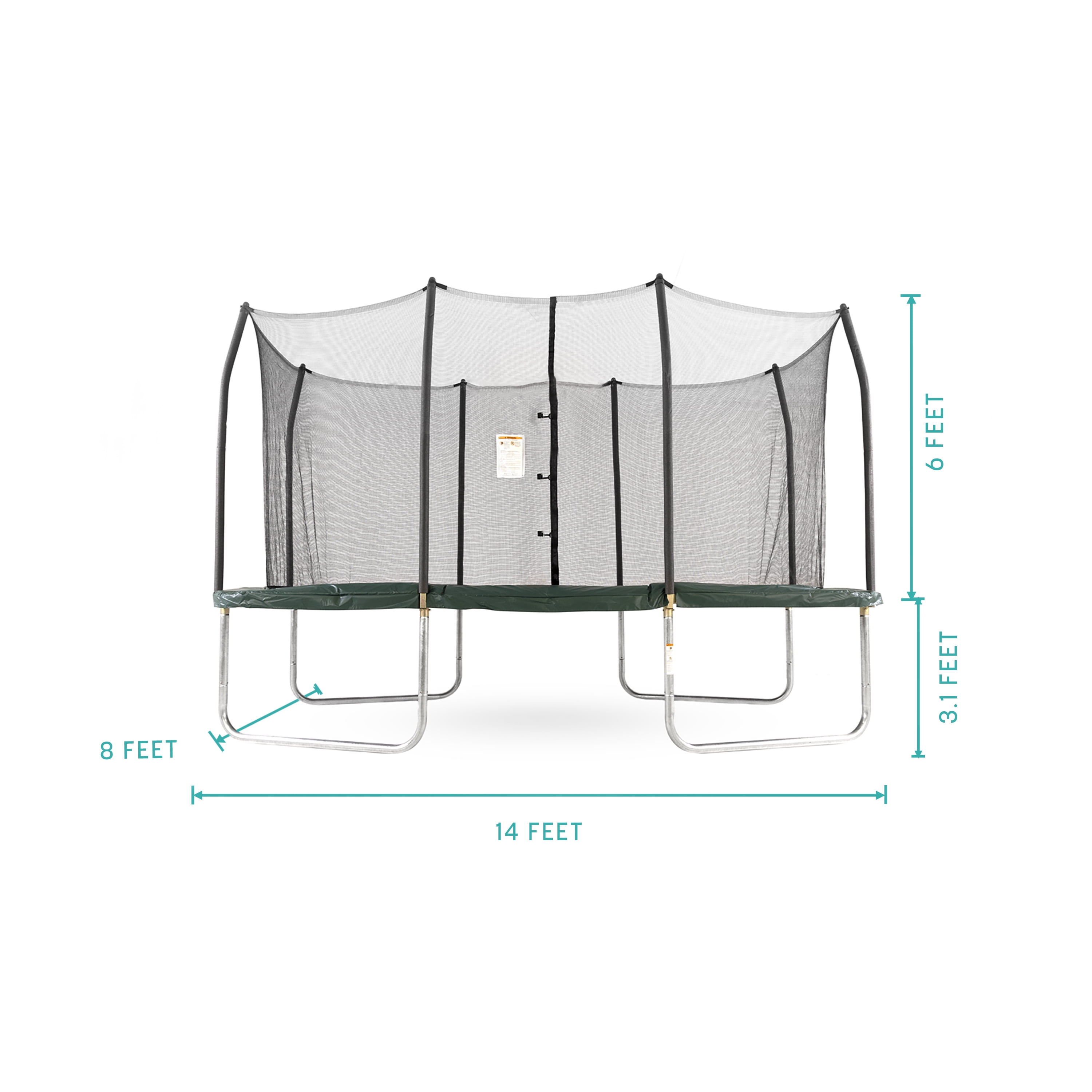 SAFETY IS OUR #1 PRIORITY: All of our products are tested for safety and durability to meet or exceed all American Society of Testing Materials (ASTM) standards. The enclosure system features upright foam padded poles for stability, and the tightly woven net has a dual zipper and clip closure system for additional safety. PATENTED DESIGN: Our patented no-gap enclosure eliminates dangerous gaps between the enclosure net and the jumping surface, protecting children from pinch points and openings (Patent #RE45, 182). DURABILITY: Enjoy an endless supply of family fun on your trampoline with the support of a galvanized steel frame that is weather and rust resistant. All our trampolines feature reinforced T-sockets at each leg and enclosure joint, increasing frame stability. UNIQUE RECTANGLE SHAPE: A rectangle trampoline, by design, will give the highest lift compared to other trampoline shapes. The springs work independently, giving the jumper a higher and more even bounce. Rectangle trampolines are the perfect option for aspiring gymnasts and athletes! MAXIMUM USER WEIGHT:Skywalker Trampolines thoroughly tests its products according to ASTM safety standards. The maximum recommended user weight for this trampoline is 200 lbs. However, per ASTM standards, our trampolines are tested to four times the maximum recommended user weight. WARRANTY: Skywalker Trampolines stands behind our quality guarantee with our 3-year limited warranty on the frame and 1-year limited warranty on all other materials.