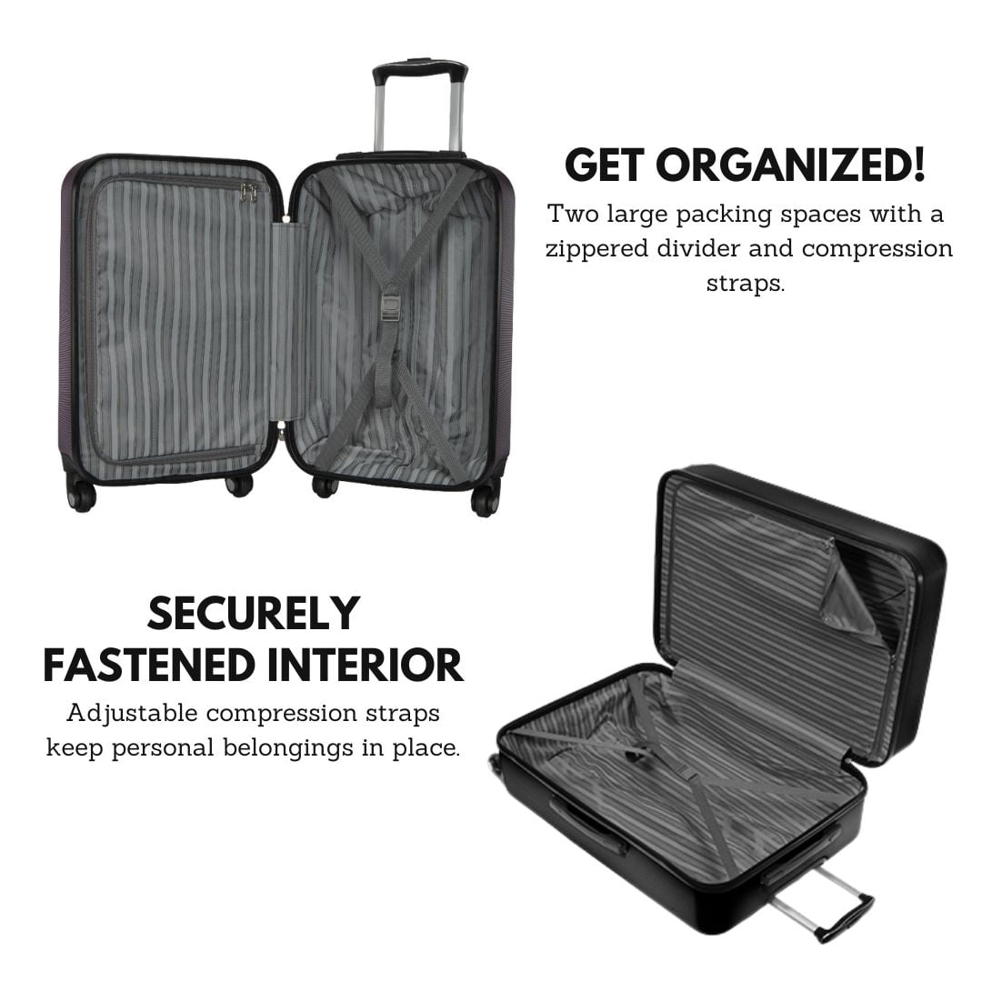 【???? Effortless Maneuverability】The 360° spinner wheel system makes this suitcase with wheels perfect for navigating airports, crowded terminals, and uneven terrain, ensuring maximum stability during your travels. 【???? Ergonomic Handle System】The telescoping handle, part of the Roche Harbor luggage set, provides a comfortable grip, so you can effortlessly pull your spinner luggage without strain, whether you’re embarking on a short trip or a long-haul adventure. 【???? Spacious Interior】This large suitcase offers ample storage capacity with mesh pockets and adjustable compression straps to keep your travel luggage organized and secure. Say goodbye to disorganized baggage and hello to stress-free packing and unpacking. 【✈️ Versatile Luggage Sets】Roche Harbor’s hardside luggage sets include options like the 3 piece luggage set and carry-on suitcase. These suitcase sets cater to every traveler’s needs, making them ideal for both short getaways and extended journeys. 【???? Durable Hardside Protection】Crafted from hardshell material, Roche Harbor spinner luggage not only ensures the safety of your baggage but also adds a touch of style to your travel gear. Upgrade to the Roche Harbor hardside luggage collection for unbeatable value on your luggage set purchase.
