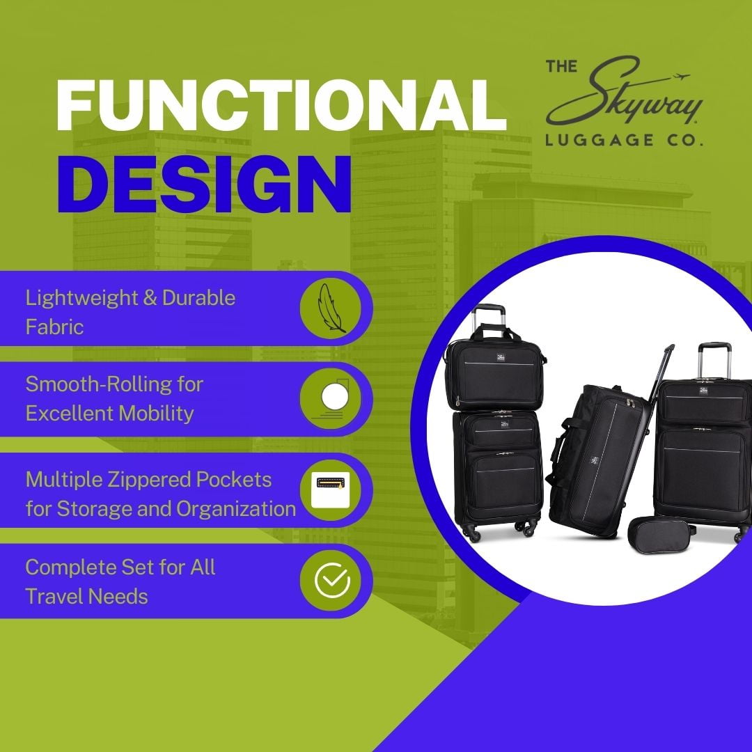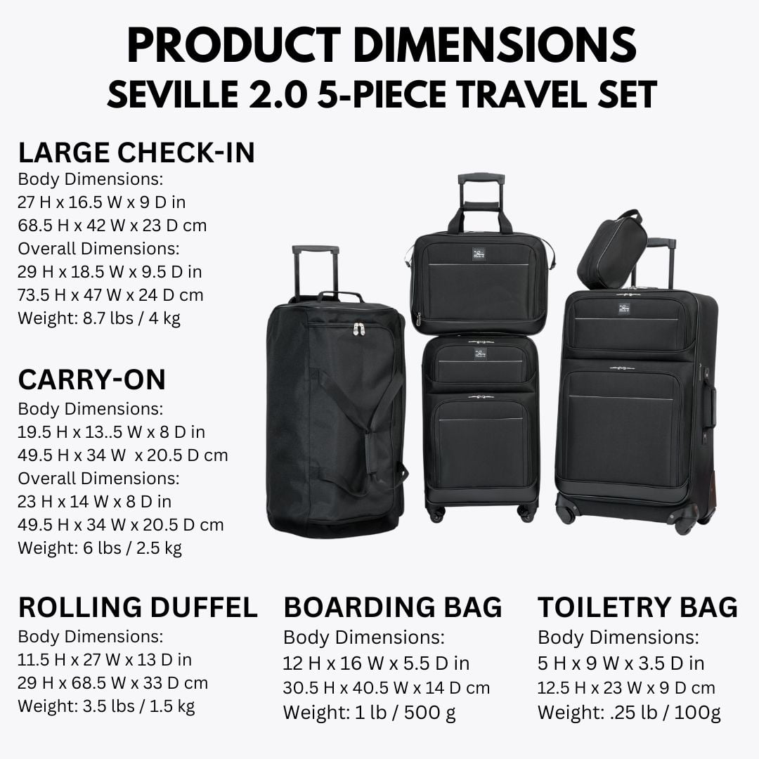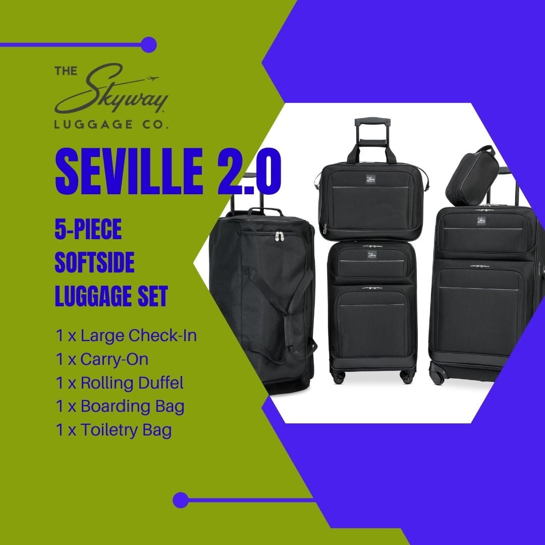 Skyway Luggage Seville Softside 5-Piece Travel Luggage Set, Black