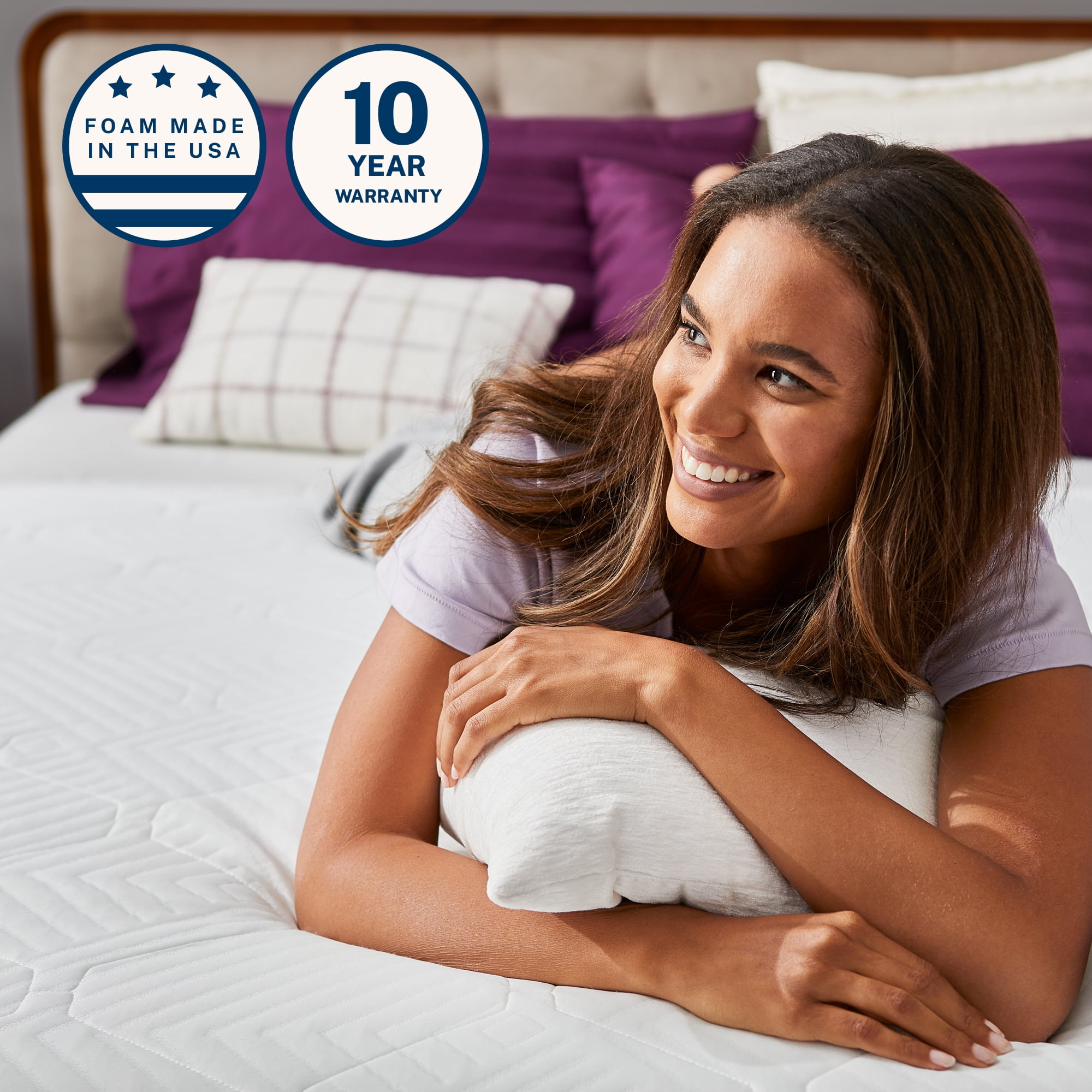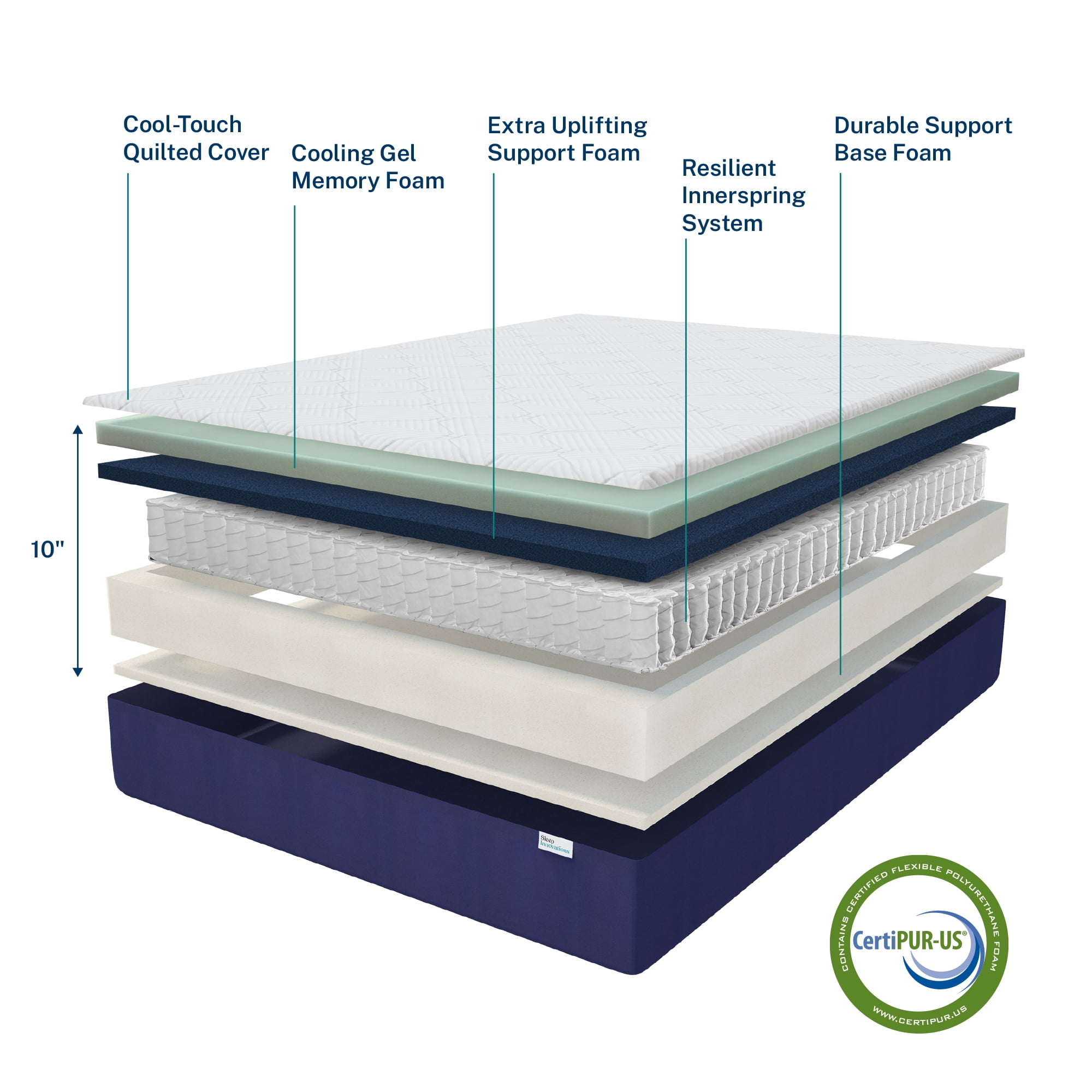 IDEAL COMFORT COMBINATION: Hybrid mattresses deliver the perfect balance of comfort and support with soothing memory foam and a responsive innerspring system. FOUR-LAYER SUPPORT SYSTEM: 10″ hybrid mattress with a medium firm feel. Cool quilted cover, 2″ airflow foam, 1″ resilient memory foam, 6″ coil support system, and 1″ base foam, plus edge support perimeter. FRESH, COOL COMFORT: Hypoallergenic design stays fresh. Responsive memory foam and advanced airflow foam provide cool, breathable comfort plus motion isolation for undisturbed sleep. RESILIENT SUPPORT: The perfect combination of pressure-relief and durable support in any sleep position. Our proprietary Reflex® foam holds its shape for years of lasting comfort. RESPONSIVE LIFT: Individually wrapped coils push up for better back alignment and support for today’s body. Coils are completely silent and give you that little extra lift you need to feel totally supported. DURABLE EDGE SUPPORT: Fully enclosed base means superior edge support and stronger sides. Reinforced 360 degrees, it ensures long-term stability and durability for endless nights of good sleep. Our foam is proudly and is CertiPUR-US® certified. PERFECTLY PACKAGED: Shipped directly to your door and easy to unpack so it’s set up in minutes. Shipping box design and color may vary. Double sealed contactless packaging for your protection. Rest easy.