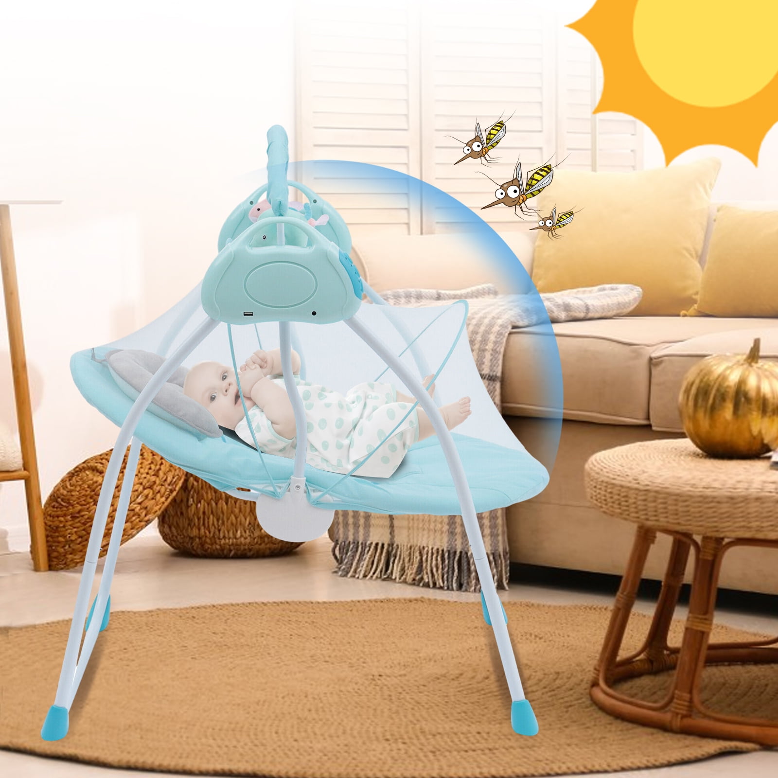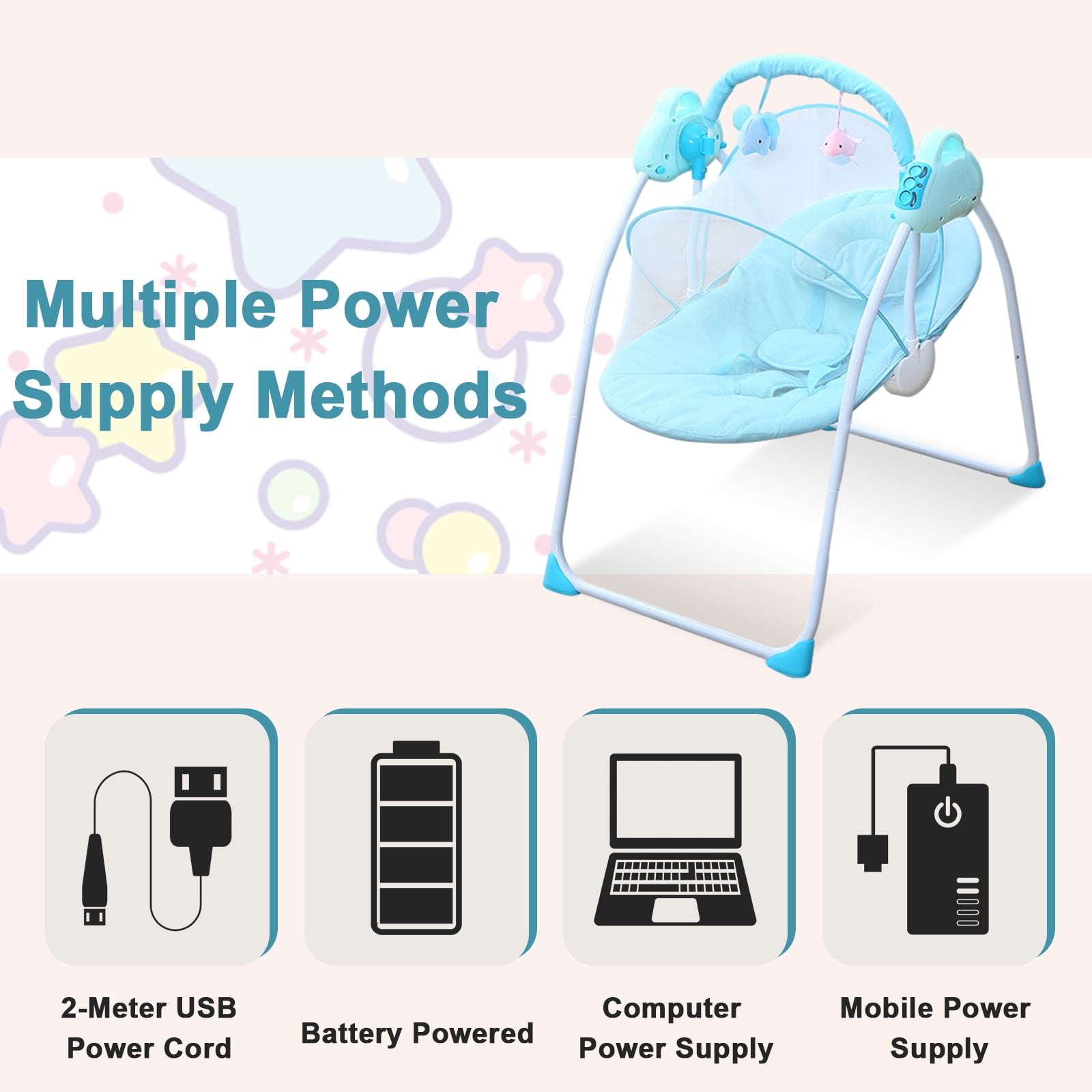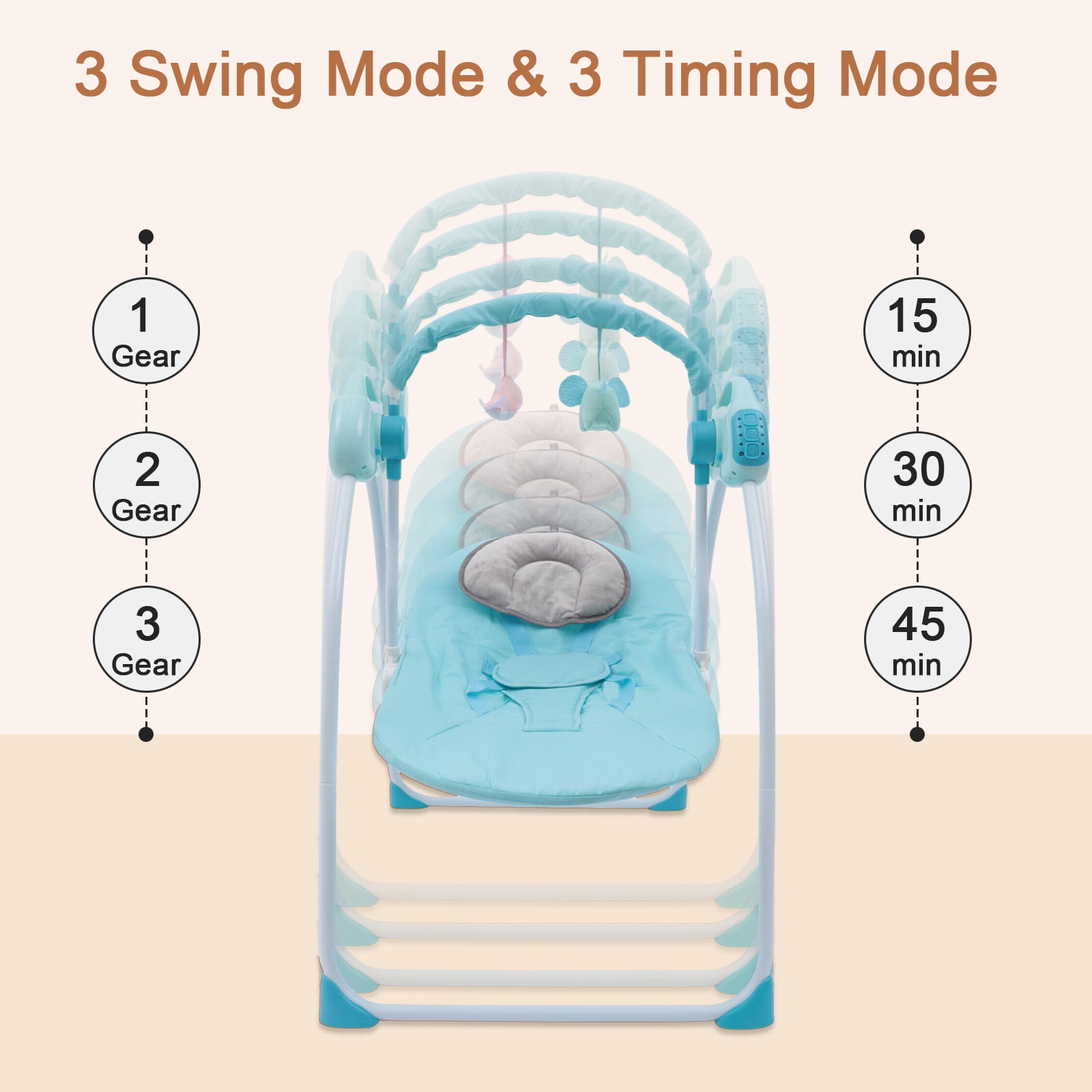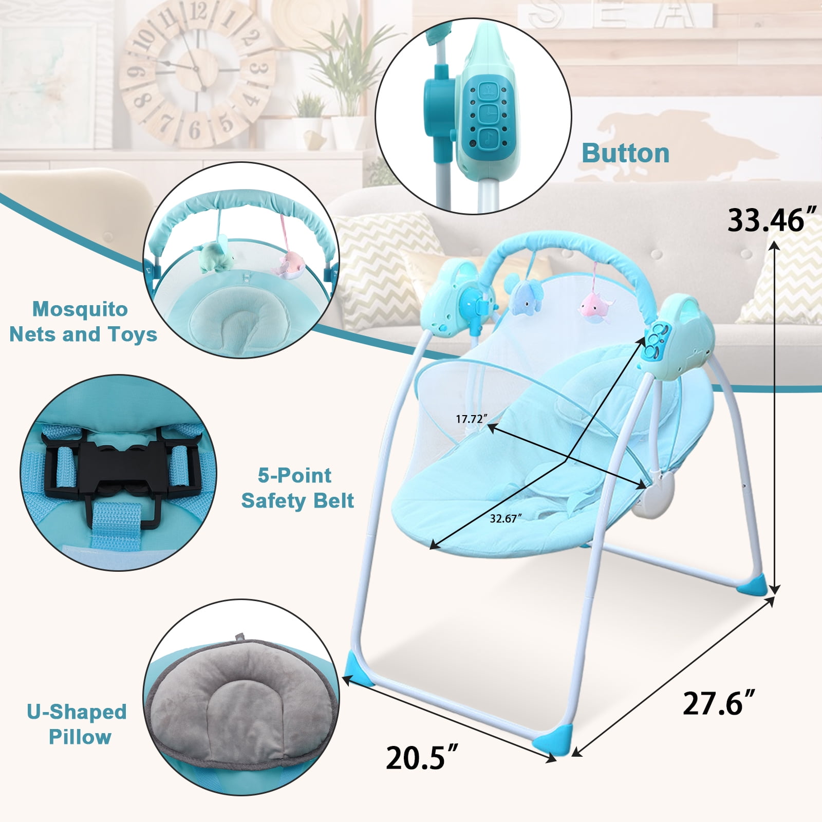 SLLINGLUO Folding Baby Swing, Infant Swing with Music and Toys, Baby Swing with 5-Point Harness, Blue