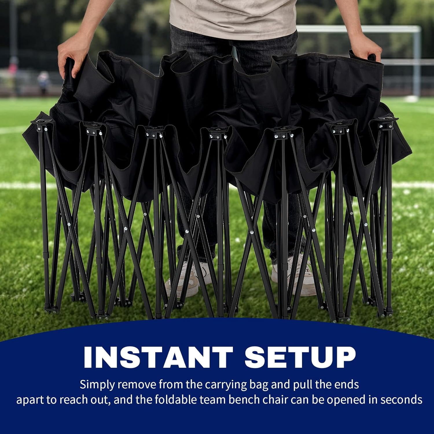 6 Seat Bench: You will get a 6 seats folding bench chair as well as a carry bag, suitable for adults, teenagers and children, providing enough room for 6 people to sit comfortably. The spacious seating area allows everyone to enjoy the game without feeling cramped, ensuring a good using experience. Portable & Lightweight: Slsy 6-person foldable and expandable bench is lightweight and easily portable. Suitable for long distance transportation, you can easily take it to the beach, park, sporting event or stadium. The sport bench chair comes with a convenient carry bag for easy transport and storage of the bench. Heavy Duty Bench: This sports bench has been specifically designed with vertical support steel poles to provide added stability, an important feature missing from many other cheaper portable benches. Each seat holds up to 200 lbs, making the bench suitable for both kids and adults to use. No Need for Installation: Slsy fold up bench chair can unfold up in seconds, no other installation tools needed; Simple and quick for your usage, ideal for many sorts of occasions and venues. Wide Applications: Slsy portable bench for sports games has a wide range of applications, quite desirable for outdoor activities, such as camping, hiking, fishing, hunting, weddings, celebrations, events, sports games, sports meetings, concerts and more.