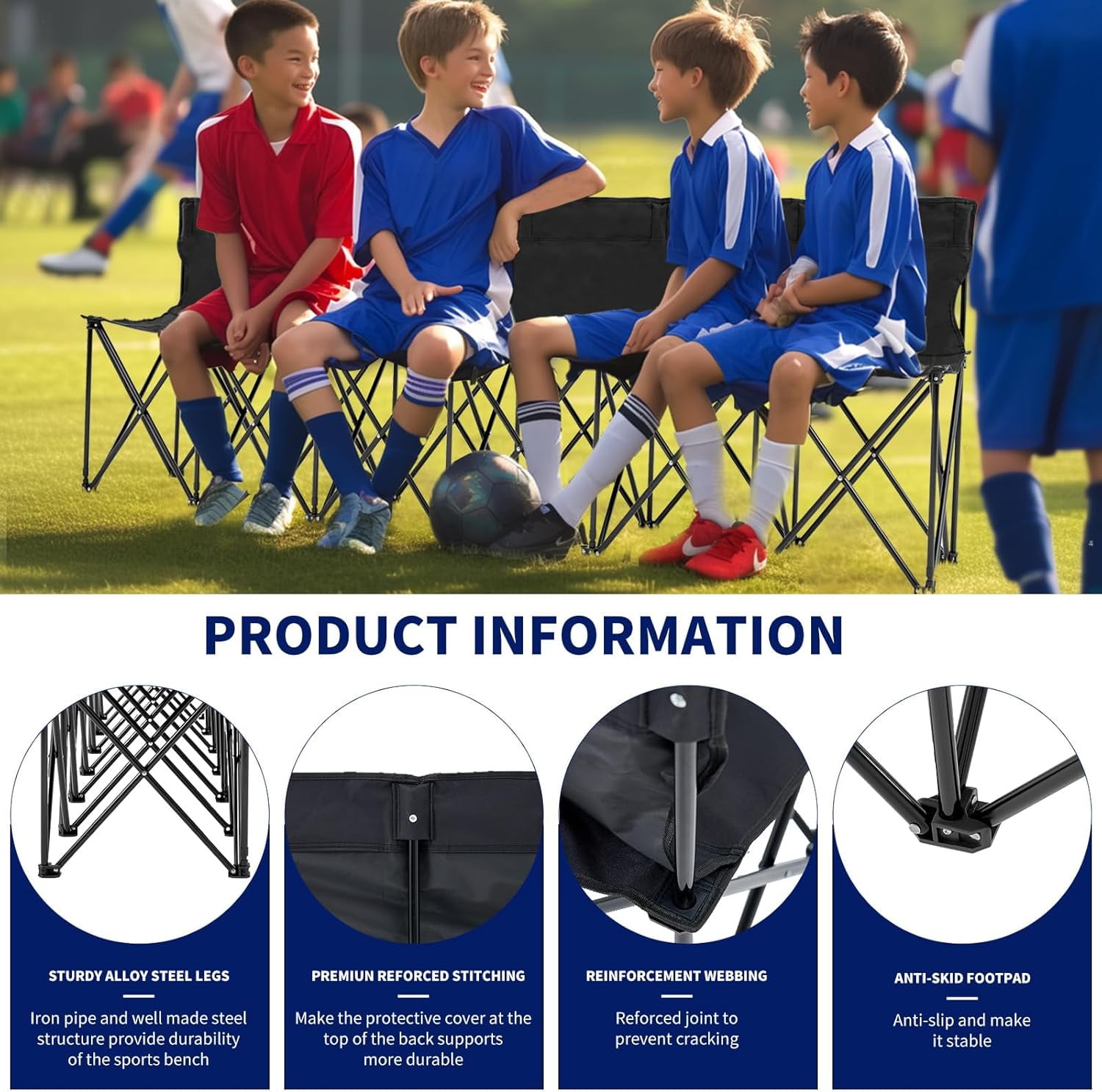 Slsy 6-Seater Sports Bench, Folding Bench Chair Sideline Bench with Back, Stadium Seats Camping Chairs Portable Team Bench for Soccer & Football Sidelines, Tailgating, Camping & Events