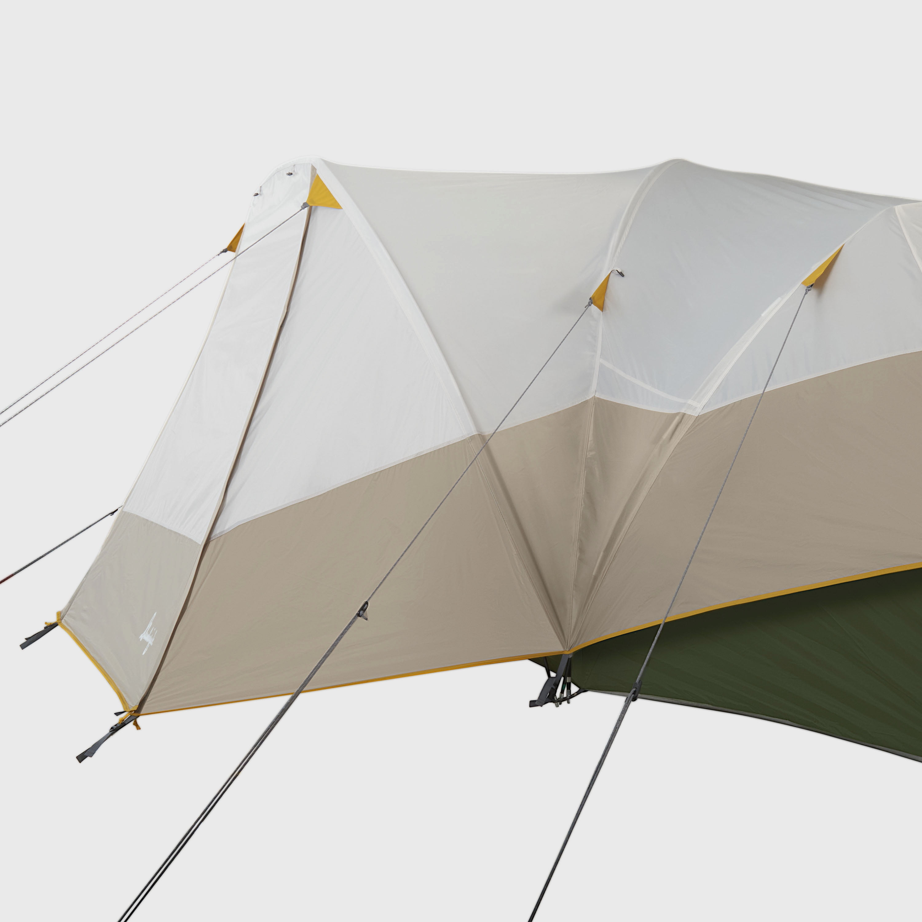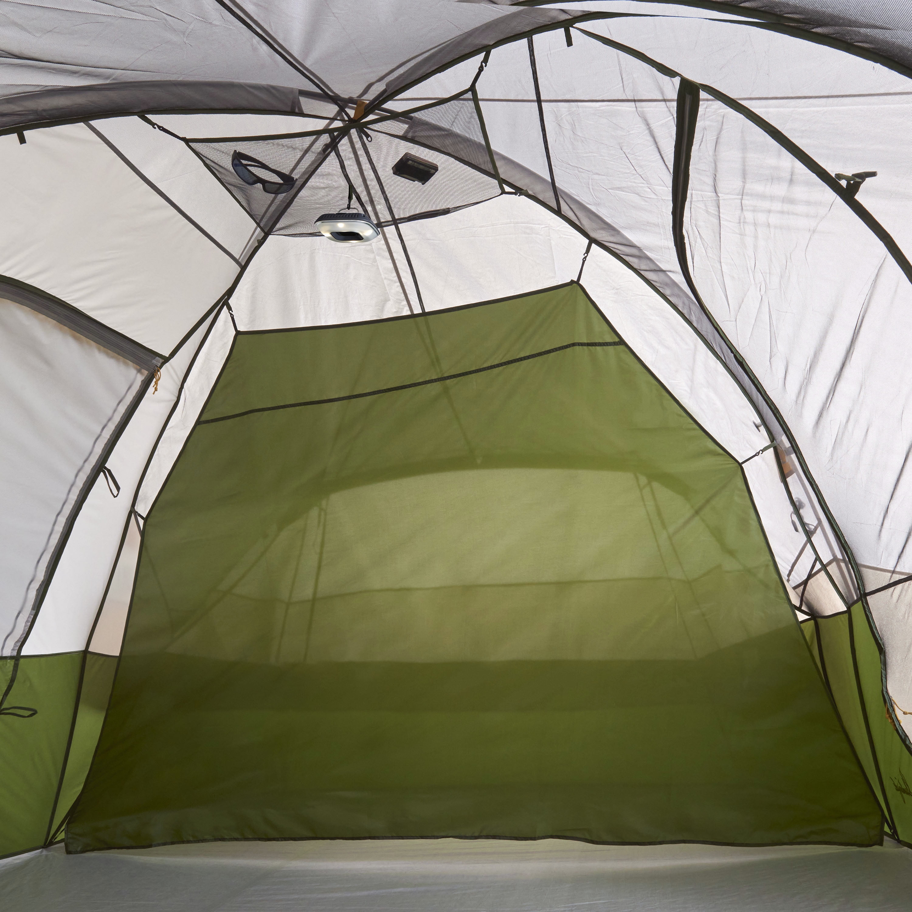 Sleeps up to 8 people or accommodates 2 queen size air beds Features a room divider for customizable space—create one large room or two separate rooms for privacy Full mesh roof allows for stargazing and enhanced ventilation when the rainfly is rolled back or removed Includes a mud mat to keep the interior clean and tidy Equipped with a gear loft and lantern loop for organized storage