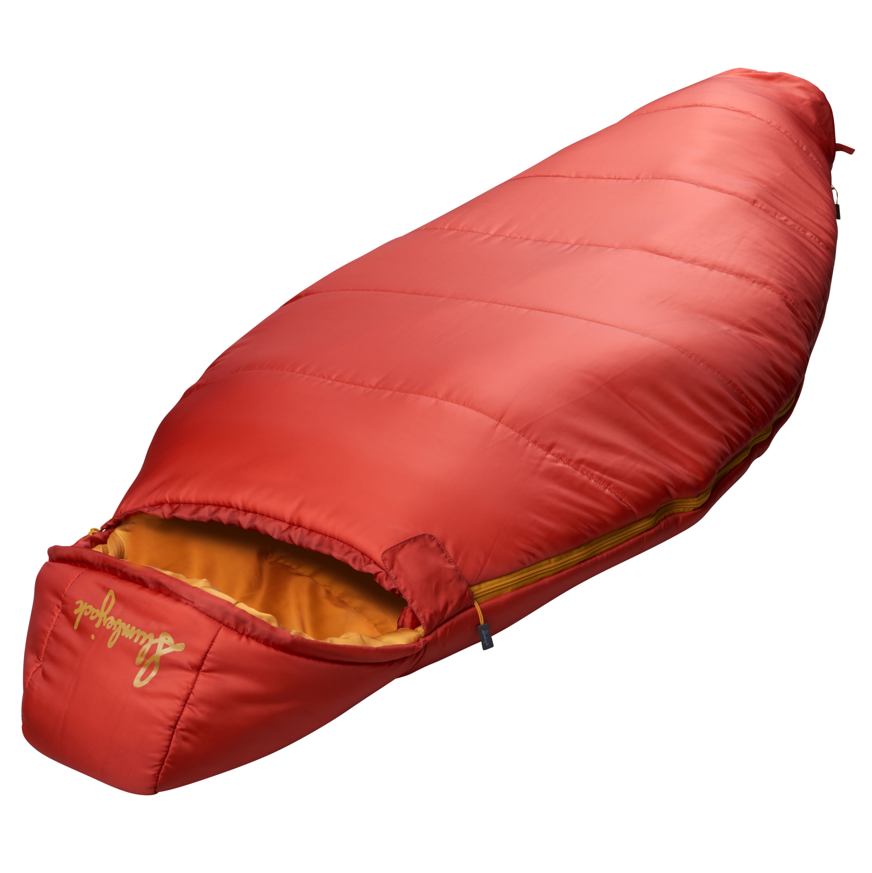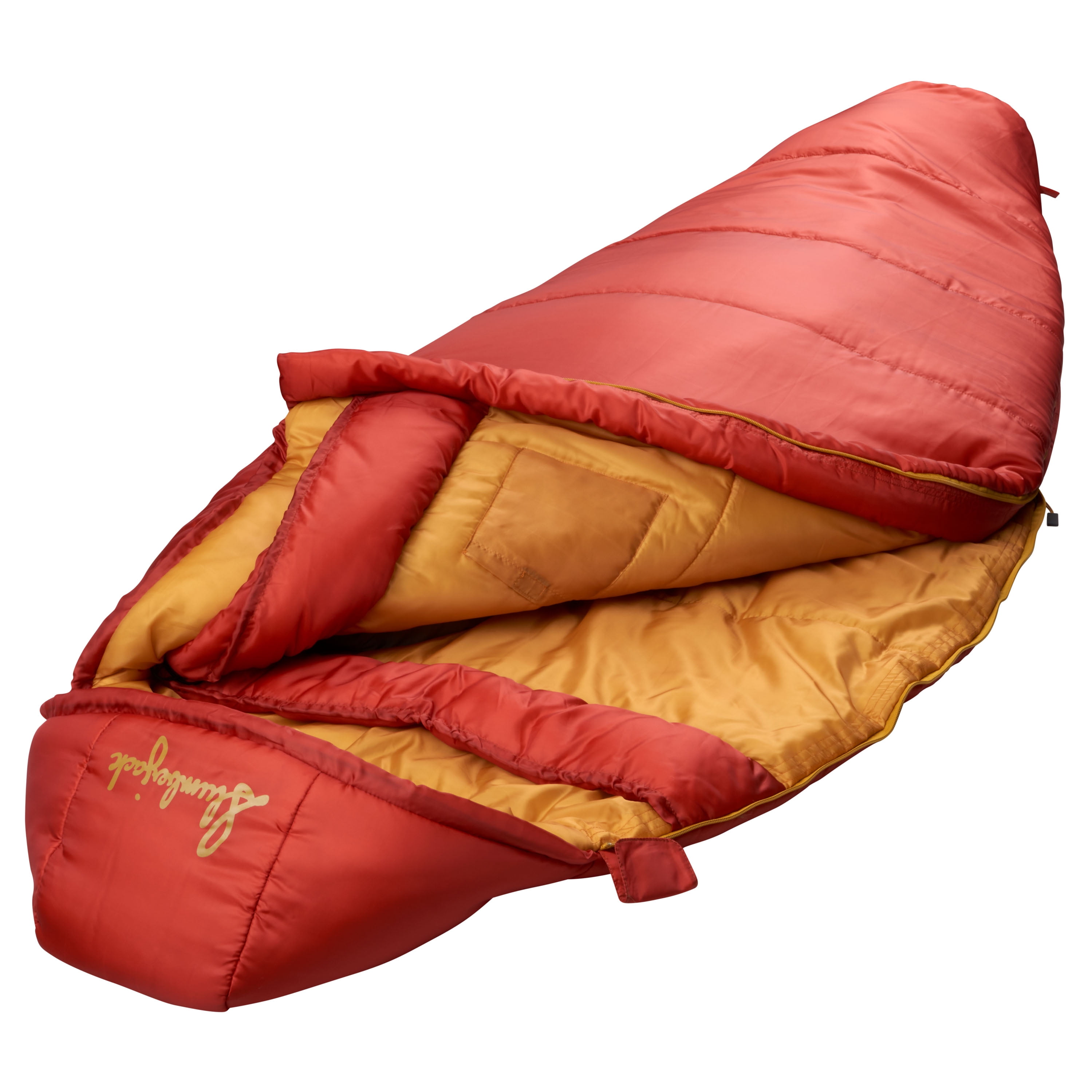 Slumberjack Eagle Falls 20F Side-Sleeper Mummy Sleeping Bag, Orange: Double layer offset quilting with premium down-alternative insulation 35″x88″ Oversized two-way zipper with anti-snag treatment Insulated draft collar and draft tube prevents cold spots Interior accessory pocket Unique shape comfortably accommodates multiple sleep positions Extra-wide at the hips and designed to sleep comfortably for bent knees