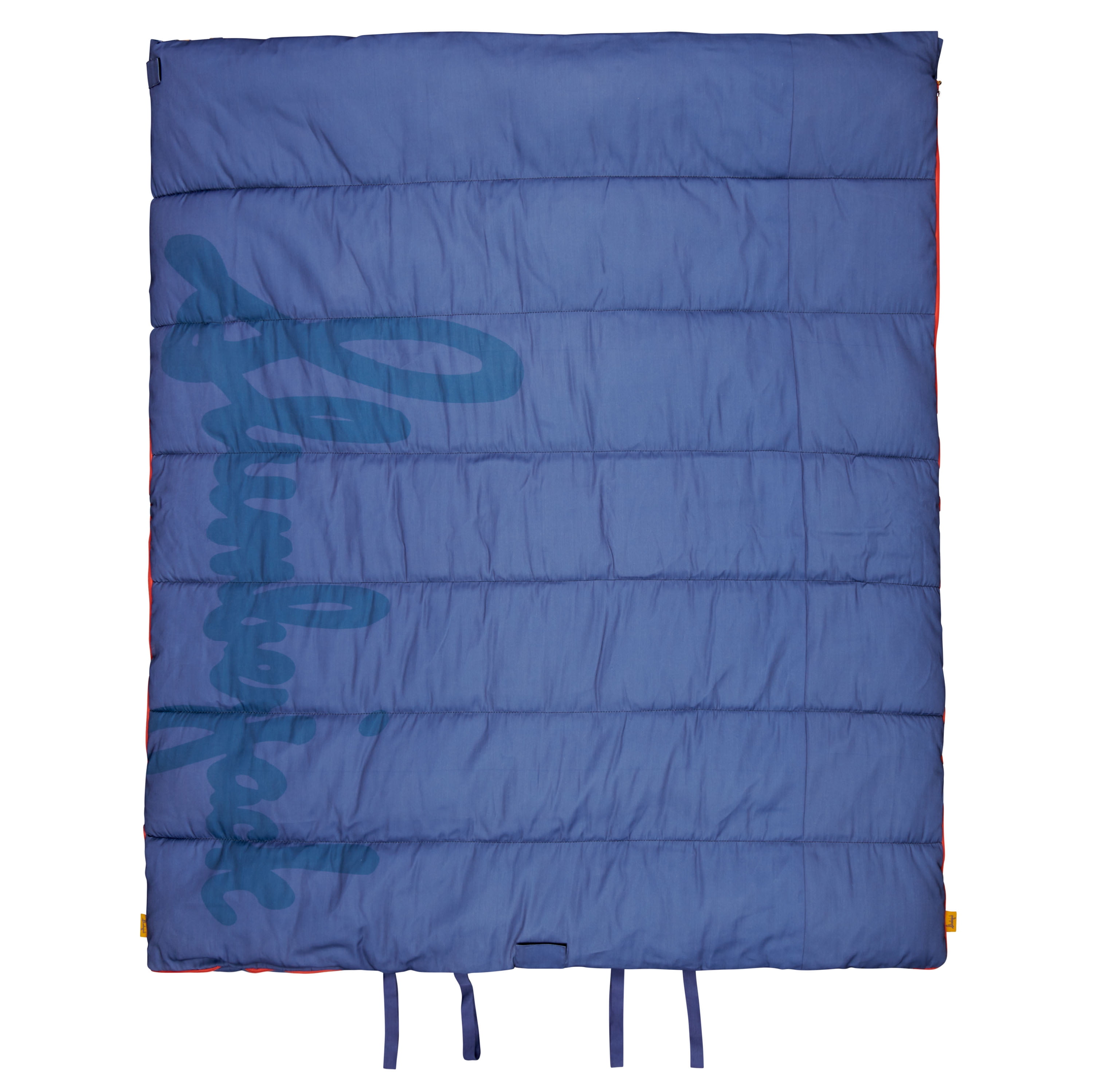 Durable twill shell with soft flannel liner Easily converts to two individual sleeping bags 70″x80″ Oversized two-way zippers on each side of bag Quick-roll elastic straps Oversized dimensions for a comfortable fit Quilted construction keeps fill in place and eliminates cold spots