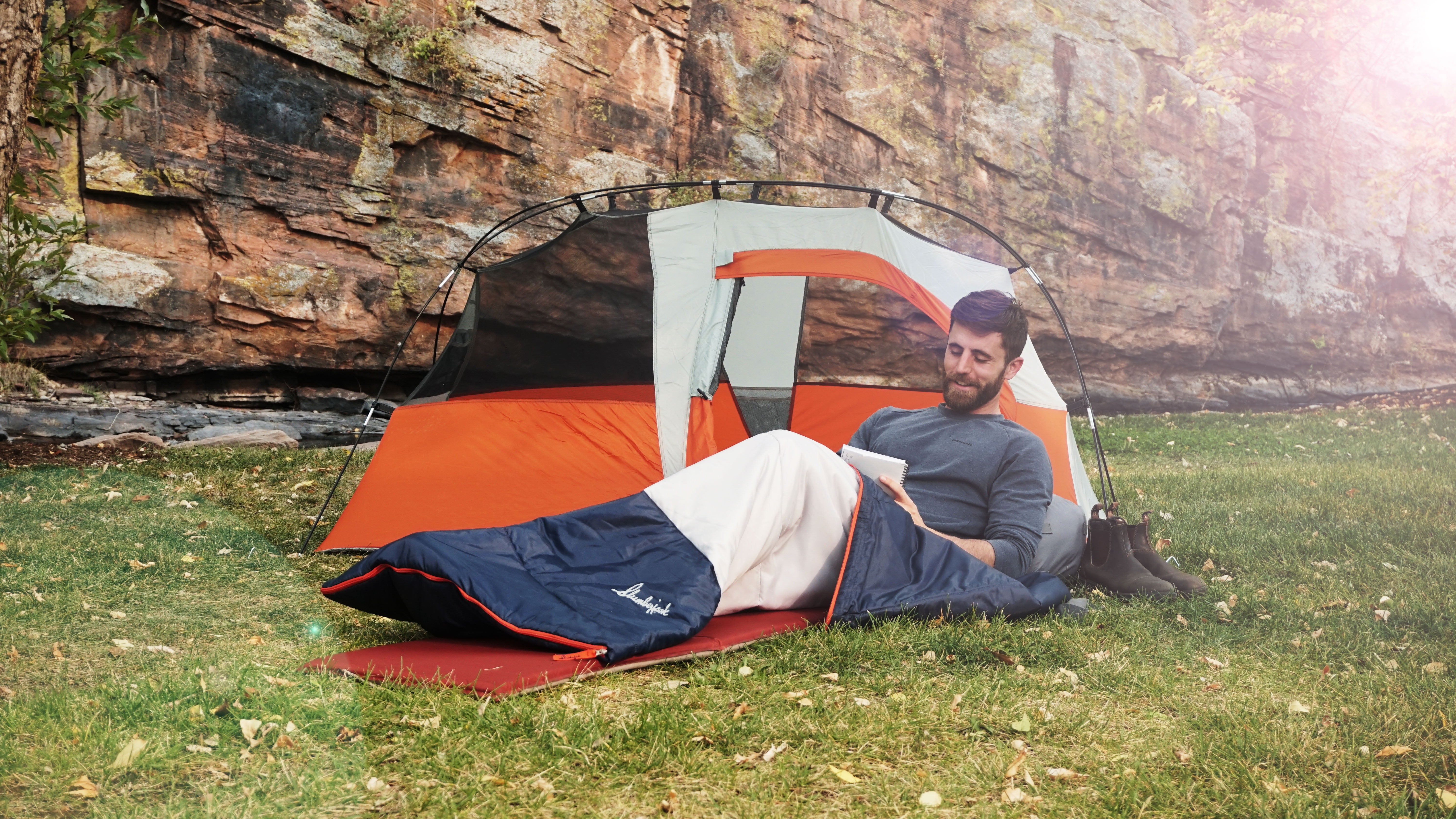 Slumberjack Sky Lake 40 Degree Backpacking Sleeping Bag is the ideal sleeping bag to take on your next overnight adventure. The sleeping bag measures 33 in. x 75 in. and is lightweight and compact and easy to strap onto your pack, back of your bicycle or motorcycle. The unique diagonally sewn color-blocking design ensures the fill stays in place for warmth and comfort. Are you a leg-out sleeper. This sleeping bag has a full-length double-sliding zipper to make it easy to get into and out of the sleeping bag and also allows you to slip your foot out while you sleep! When it’s time to break down camp, simply stuff your Slumberjack Sky Lake 40-Degree Backpacking Sleeping Bag into its compression sack and continue on your adventure.