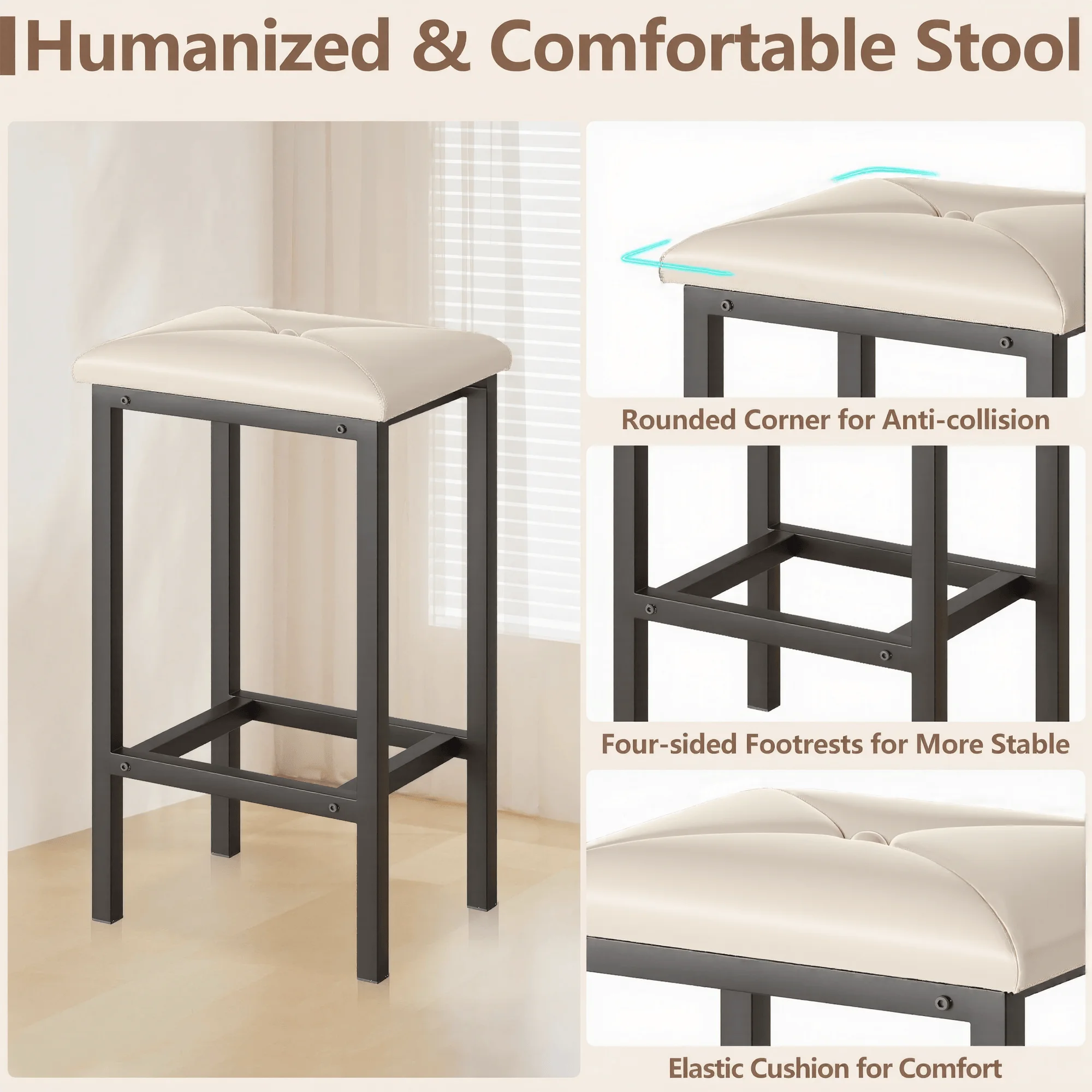 Fashionable Table: Durable E1 grade particleboard and rust-proof steel frame are perfectly combined dining room table set, concise style adds a sense of design and brings a high-end feeling, the dinner table set will providing an excellent environment for dinner, work or entertainment. Stable Metal Structure: Metal frame of the bar table set is sturdy and durable, the screws are tightly connected, that make the kitchen table set is very suitable for bearing heavy loads. The table can withstand 160 lb, chair and bench can withstand 220 lb, which is almost suitable for everyone. Small Space Solution: Kitchen dining table set is equipped with a rectangular table, 3 stools, which can fully meet the dining needs of 3 people. When not in use, the stools can be neatly stored under the pub table, which provides the best space-saving solution for small spaces or apartments. Easy Installation: Clear instructions and complete parts for the kitchen table set are provided. You only need to follow the steps below to complete the bistro set installation quickly. Easy to Clean and Maintain: The dark table top of the pub table set is stain-resistant and not easily contaminated by dust. When the tabletop becomes dirty, just wipe it with neutral detergent. It only takes a few seconds to wipe it clean, which is very easy to maintain.