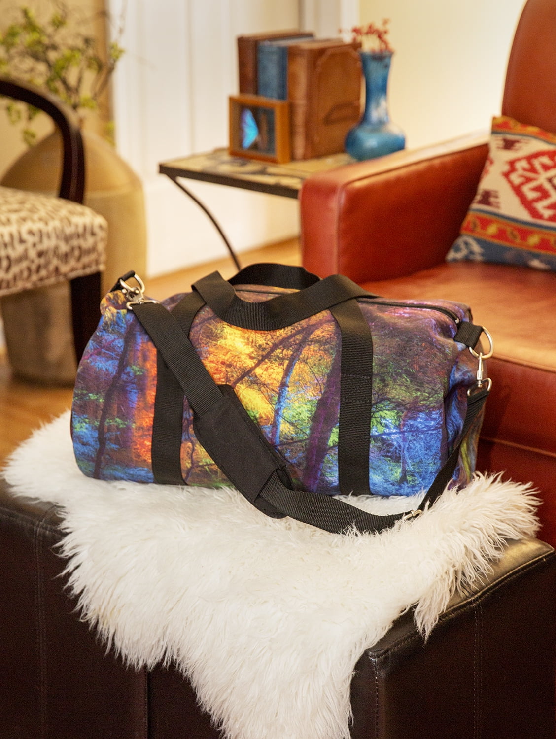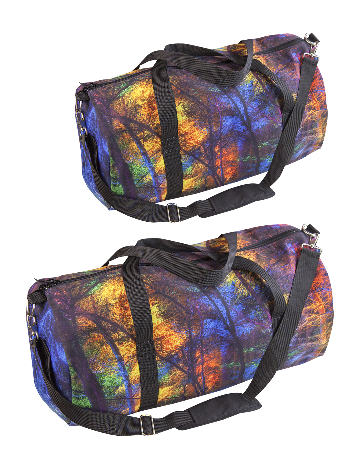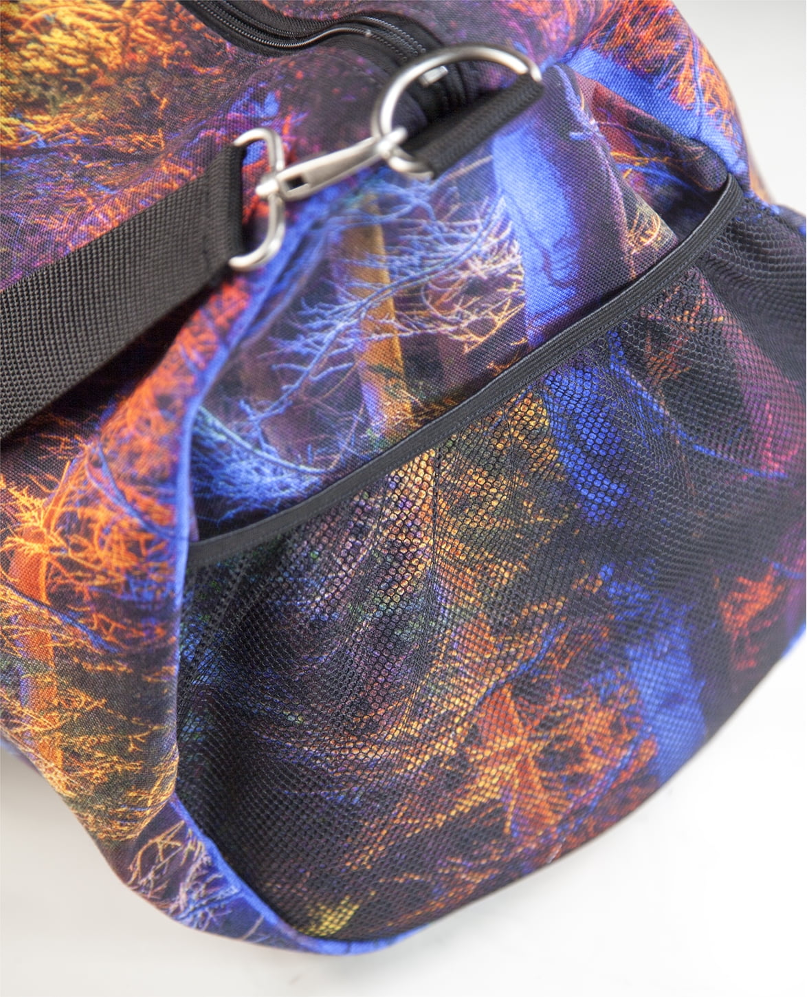 This lightweight duffel bag is excellent for on the go travel. It is made from 100% polyester. It is perfect for the gyn, carry-on or a day bag. It features a removable and adjustable shoulder strap with a comfortable shoulder pad. There are double handles for when you want to carry. The inside is lined with polyester and has a zipper pocket for security. The outside has a mesh end pocket for your water bottle or other items. The size is 19×9.5×9.5 and weighs only 1.1 lbs. (0.499 kg.). Unisex. Adult, Teen and Tween.