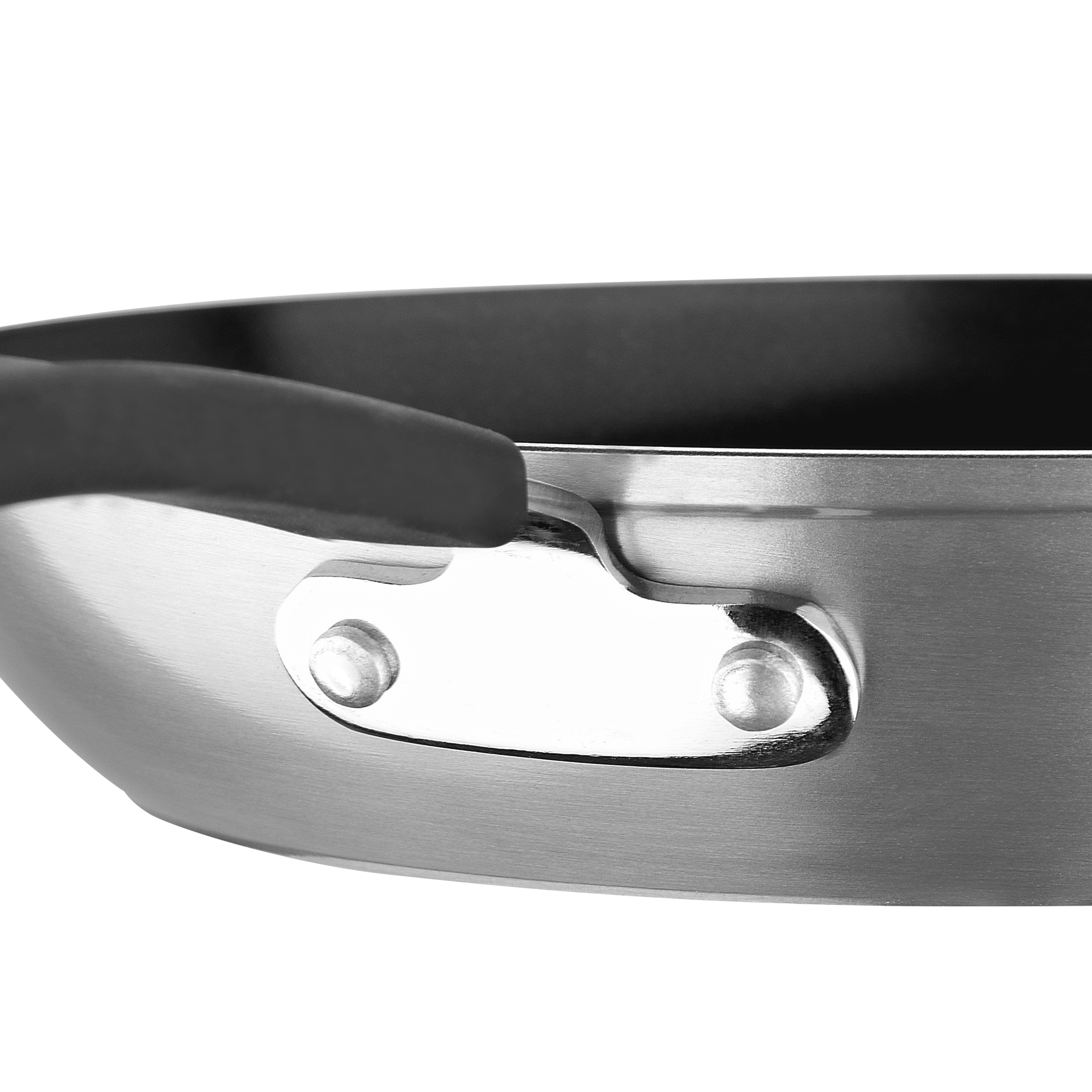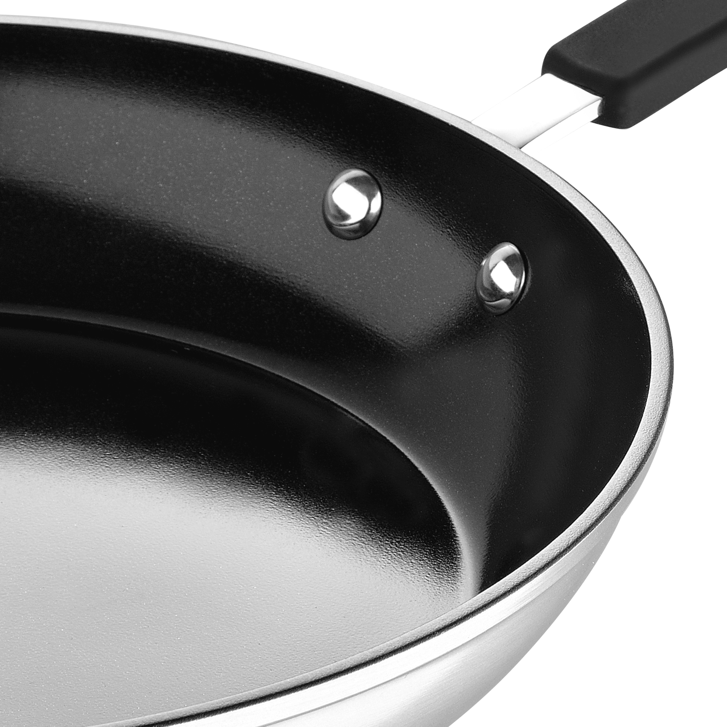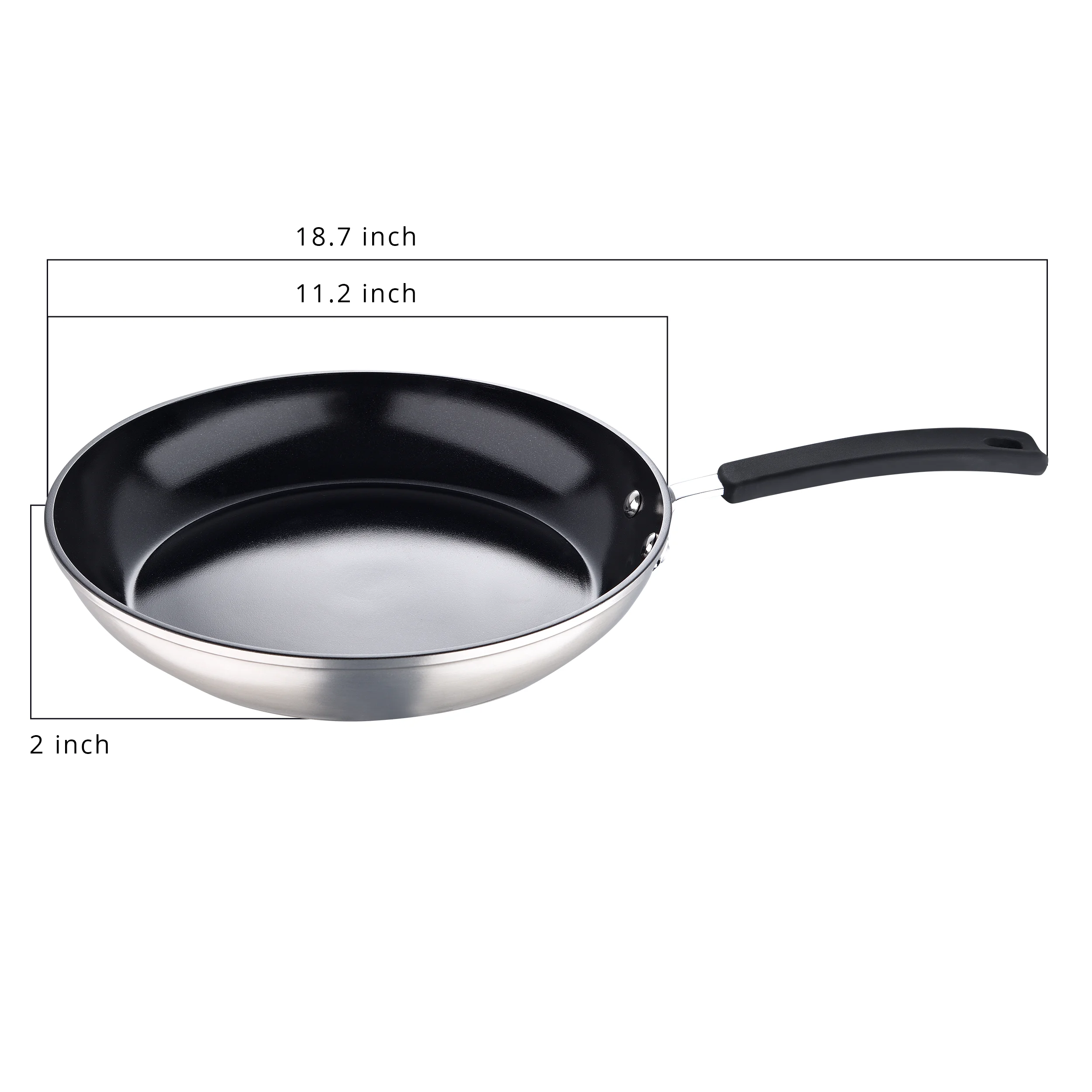Durable Forged Aluminum The Smart forged aluminum collection from MasterPRO is constructed of high-quality materials to provide quick and uniform heating throughout the pan and eliminate hot spots.,Healthy Ceramic Interior Ceramic non-stick coating delivers a remarkable release that is free from PFOA, PTFE, lead, and cadmium. The effortless food release promotes less use of oil or fat during the cooking process for healthier meals.,From Stove to Oven The Smart forged aluminum collection from MasterPRO is safe for all stove types, including induction. This collection is also oven safe up to 350 F.,Soft-Grip Ergonomic Handles Riveted, stainless steel silicone-wrapped handles are ergonomically designed to provide a comfortable and stable grip.,Fry Pan Cooking The Smart forged aluminum 11 fry pan from MasterPRO featured a sloped wall design to easily toss food in the pan for the perfect saut .