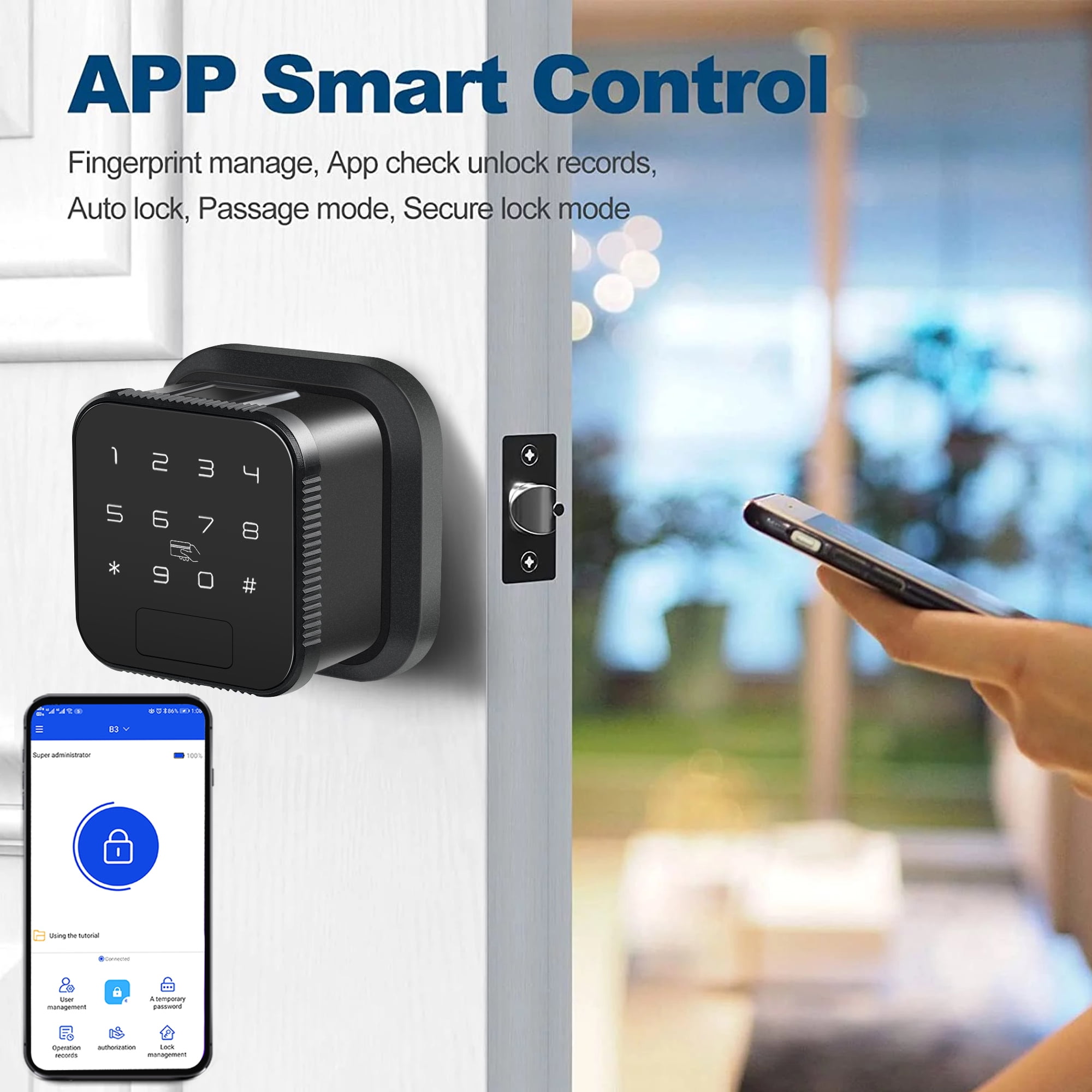 Smart Lock, Keyless Entry Door Lock with APP Control, Fingerprint Door Lock, Electronic Digital Lock with Keypad, Matte Black