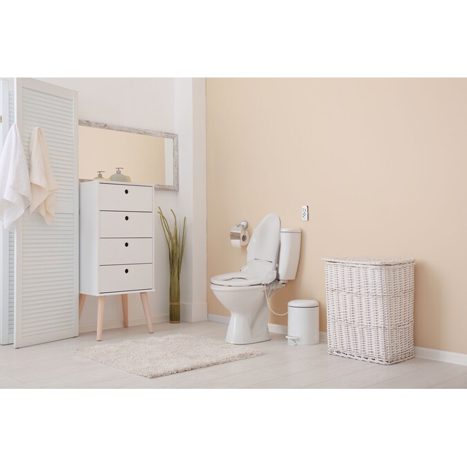 - Fits on standard elongated toilets, slight overhang on round toilets