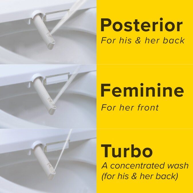 - Multi-wash functions with self-cleaning nozzle: feminine (“for her front”) and posterior (“for her back”, “for his back”) with oscillation modes